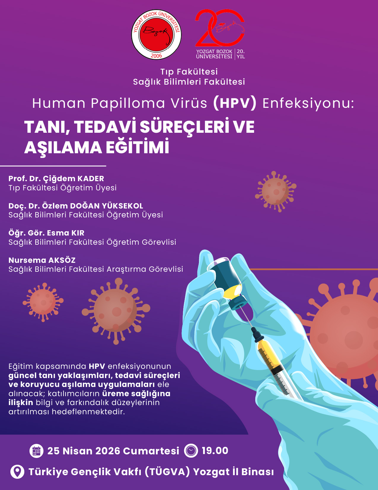 Etkinlik Detayı 25 Nisan Human Papilloma Virüs (HPV) Enfeksiyonu: Tanı, Tedavi Süreçleri ve Aşılama Eğitimi