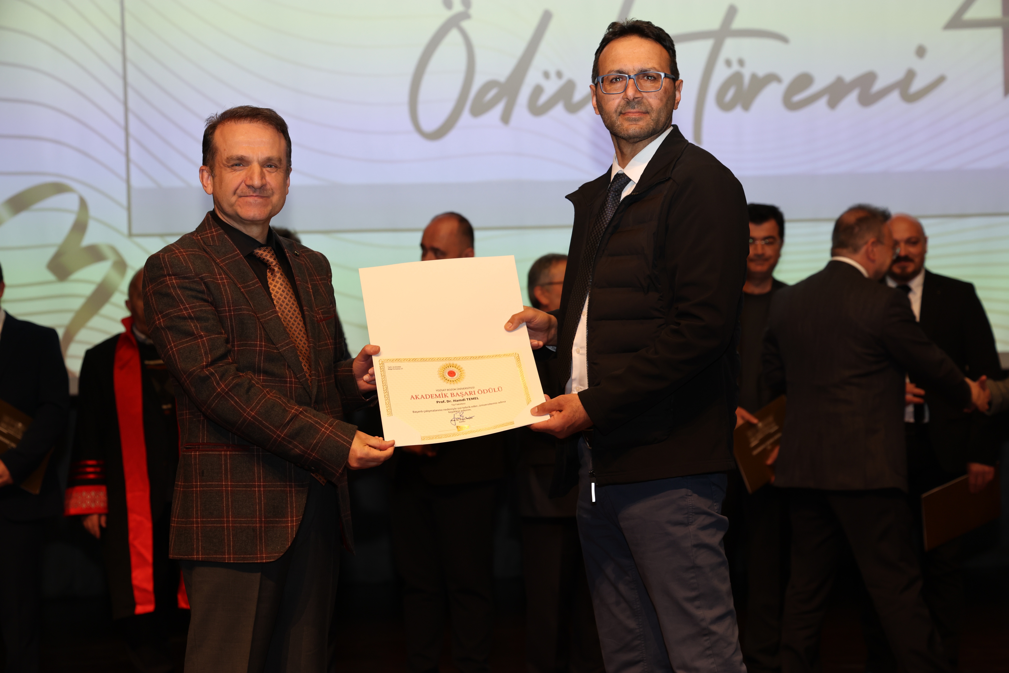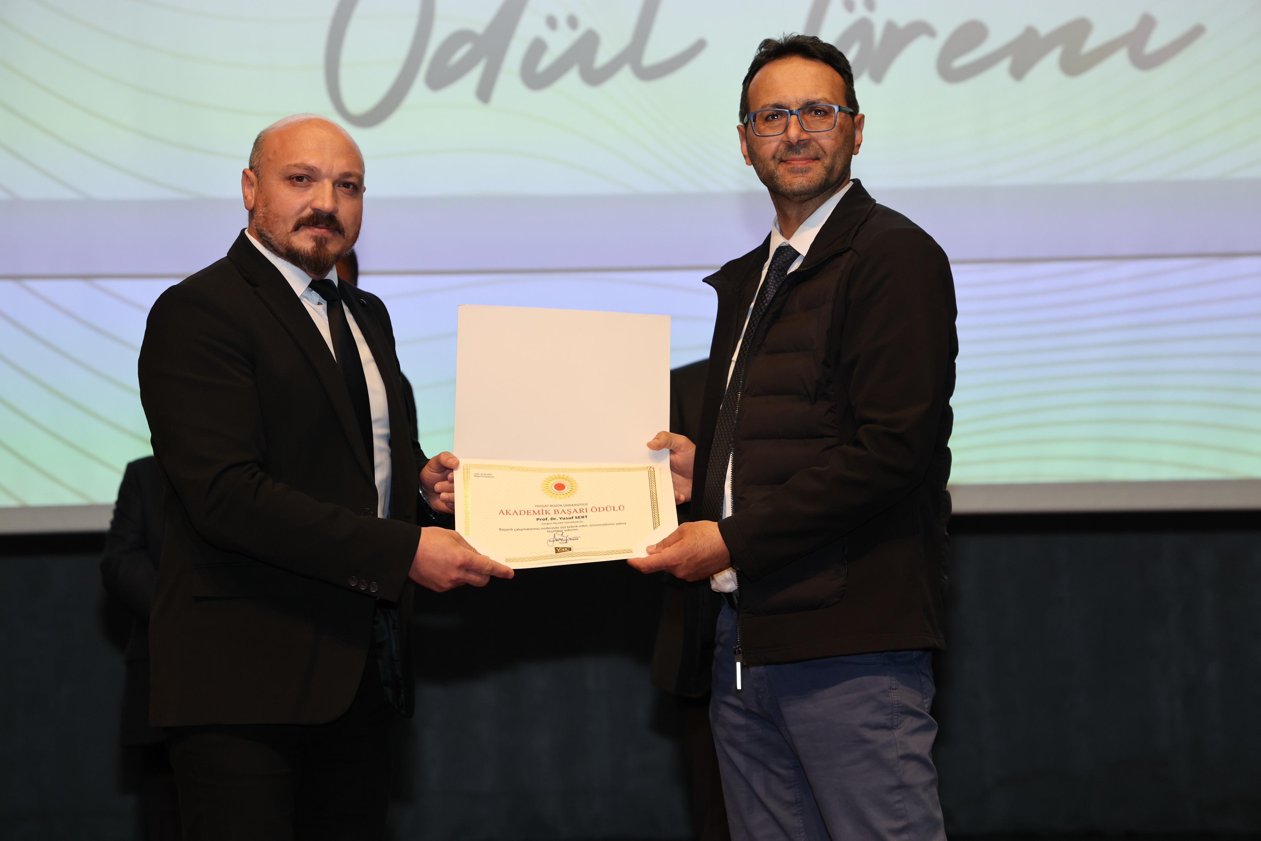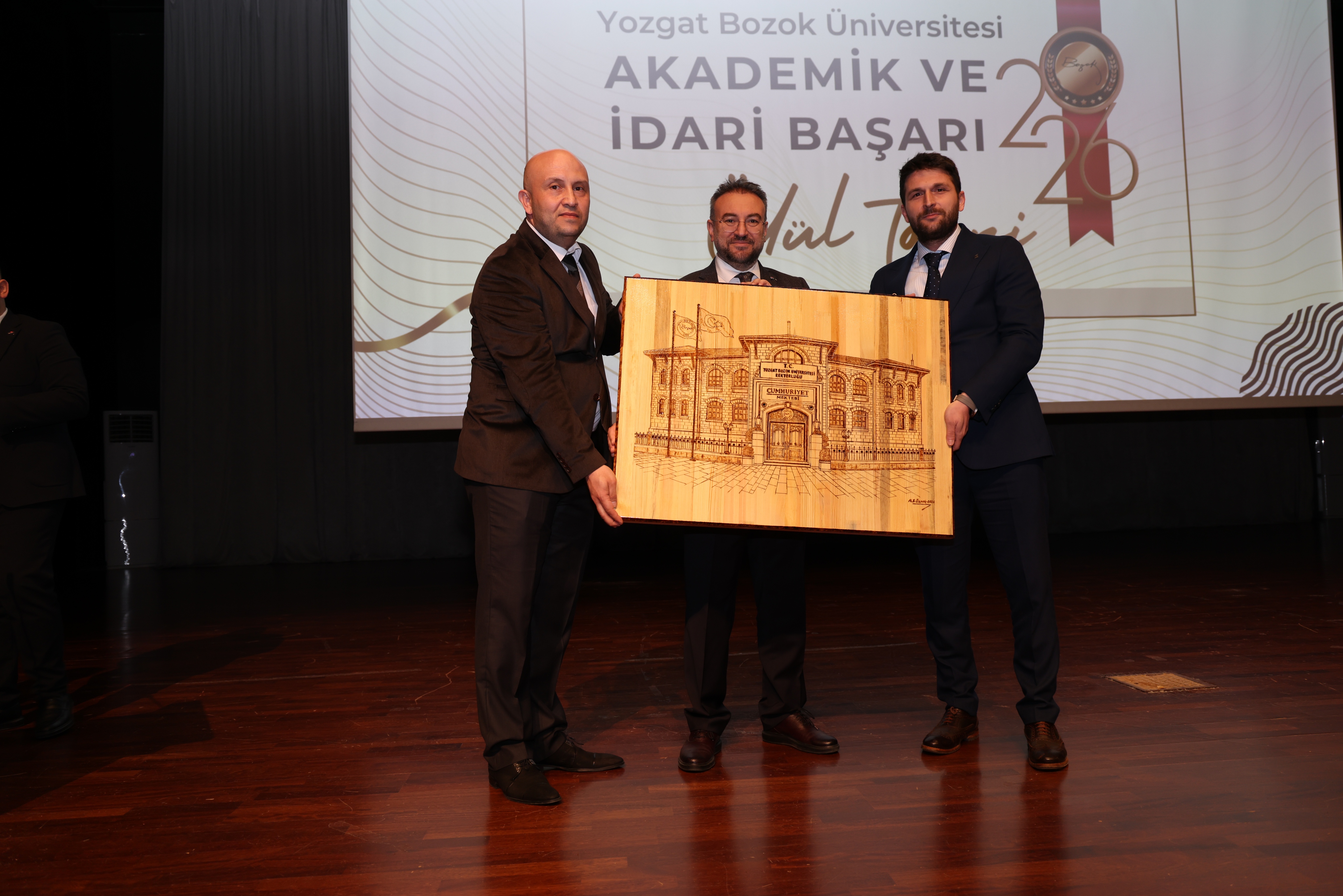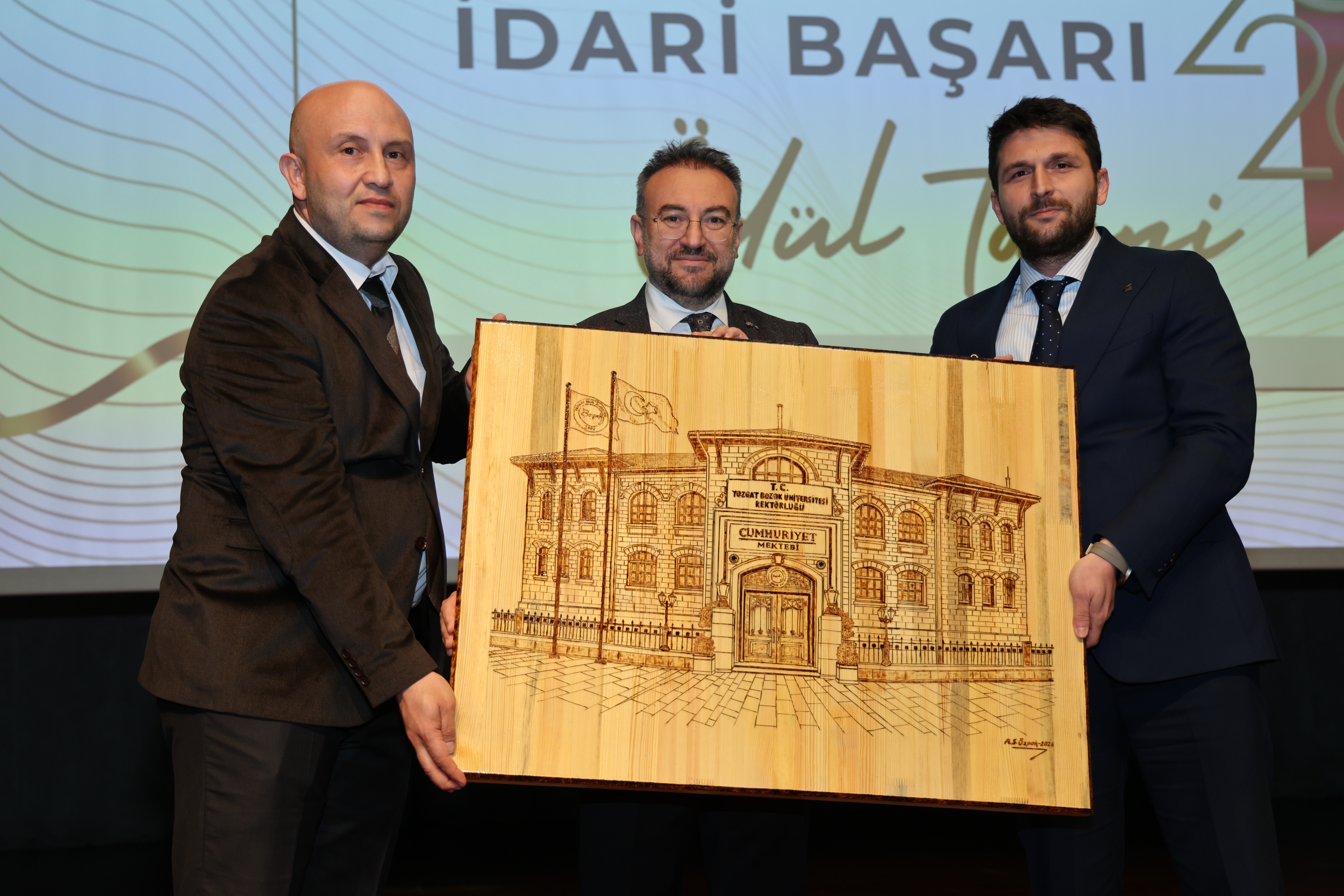 Tören sonunda, Üniversitemiz Akdağmadeni Meslek Yüksekokulu Müdürü Dr. Öğr. Gör. Abdulsamet Duran ve Müdür Yardımcısı Öğr. Gör. Ahmet Sertan Özpak tarafından Rektörümüz Prof. Dr. Evren Yaşar’a hediye takdim edildi.