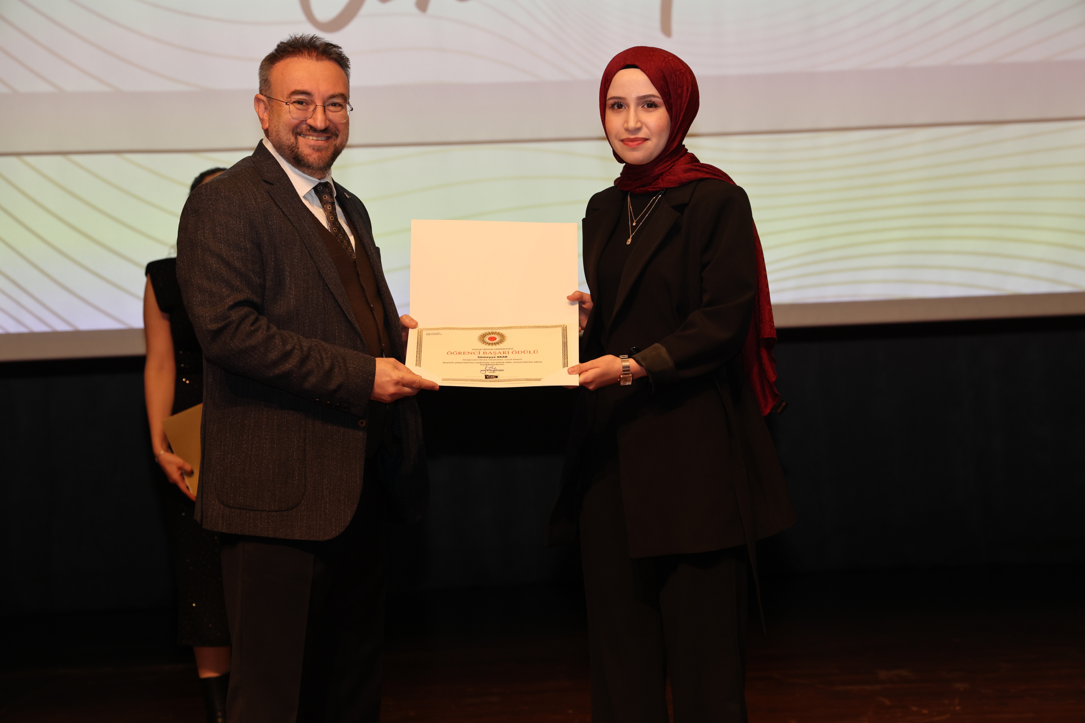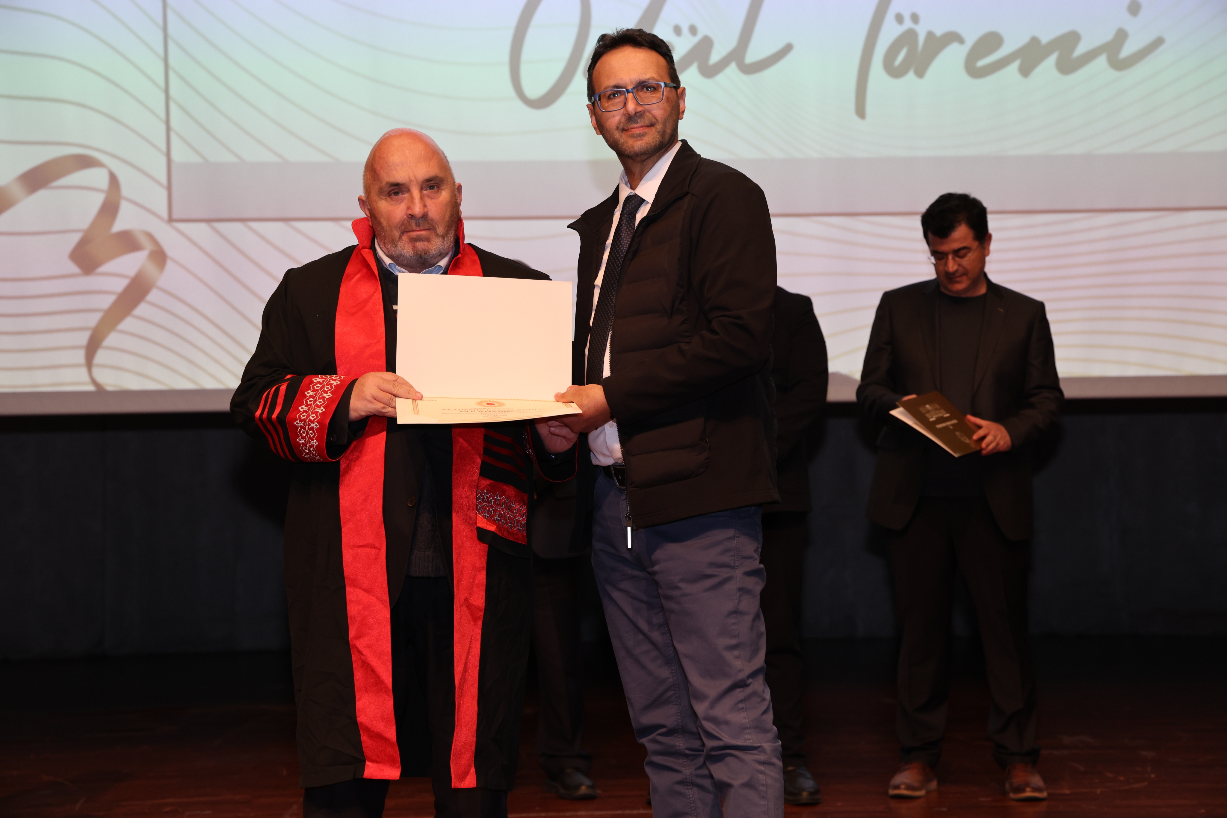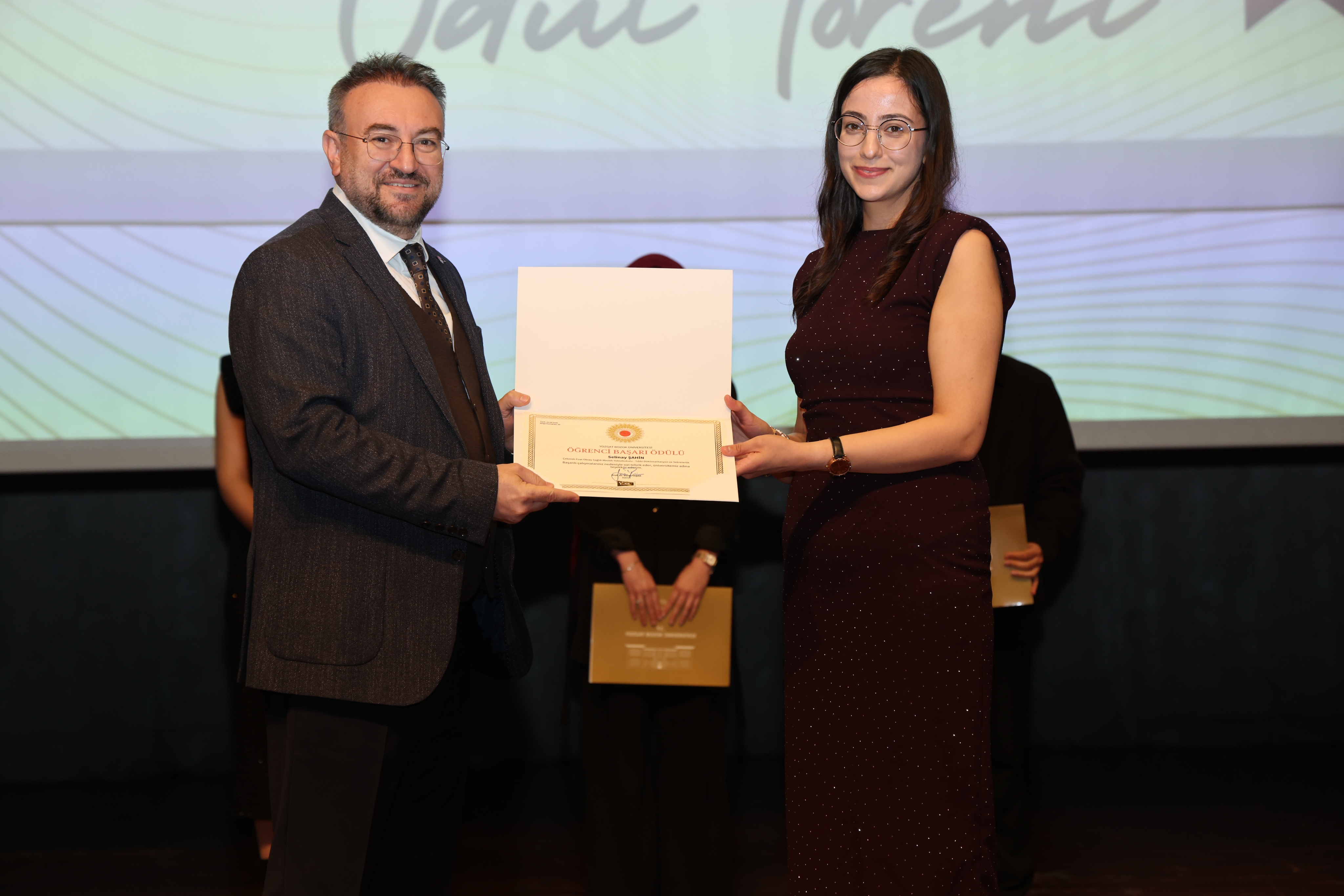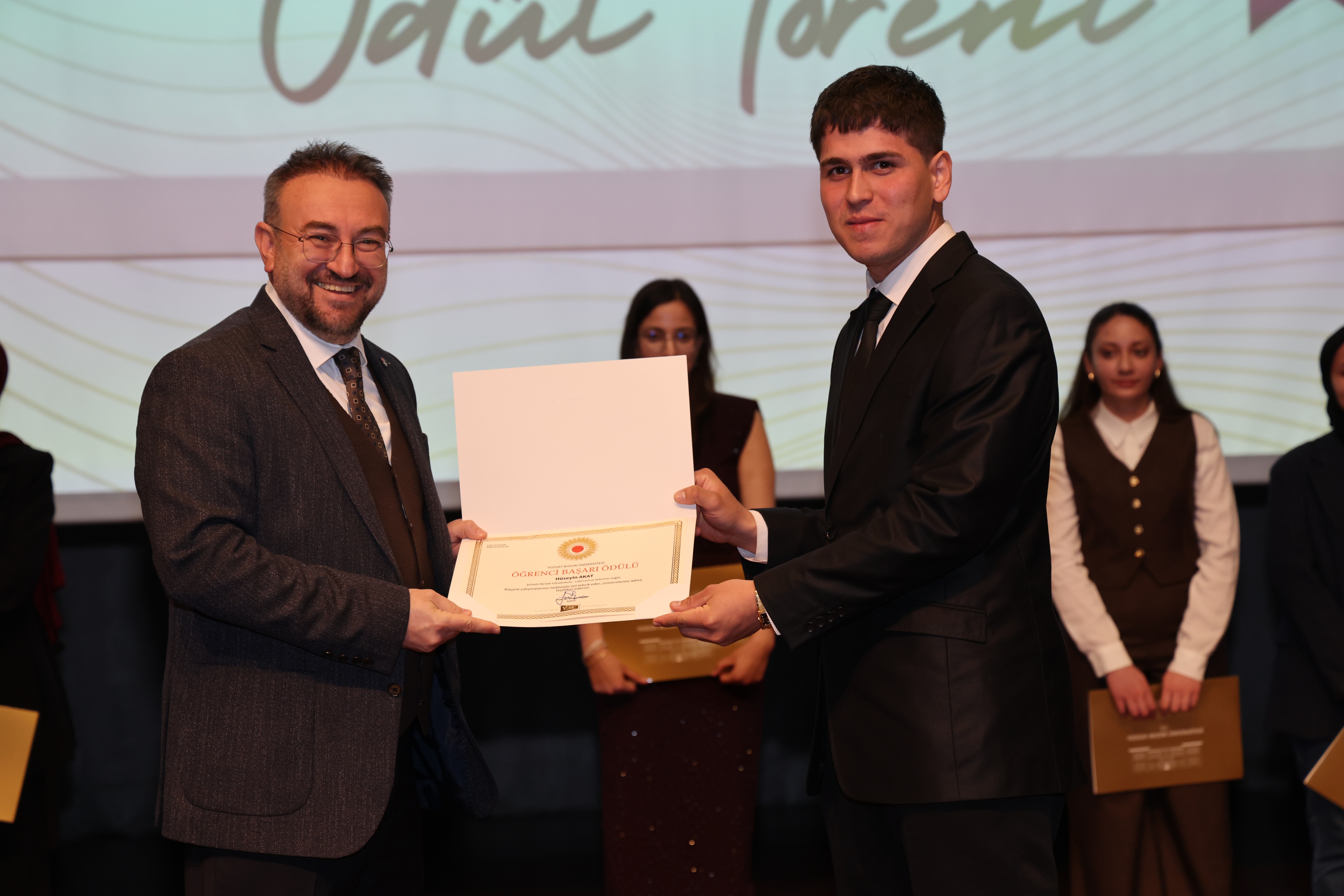 Tören sonunda, Üniversitemiz Akdağmadeni Meslek Yüksekokulu Müdürü Dr. Öğr. Gör. Abdulsamet Duran ve Müdür Yardımcısı Öğr. Gör. Ahmet Sertan Özpak tarafından Rektörümüz Prof. Dr. Evren Yaşar’a hediye takdim edildi.
