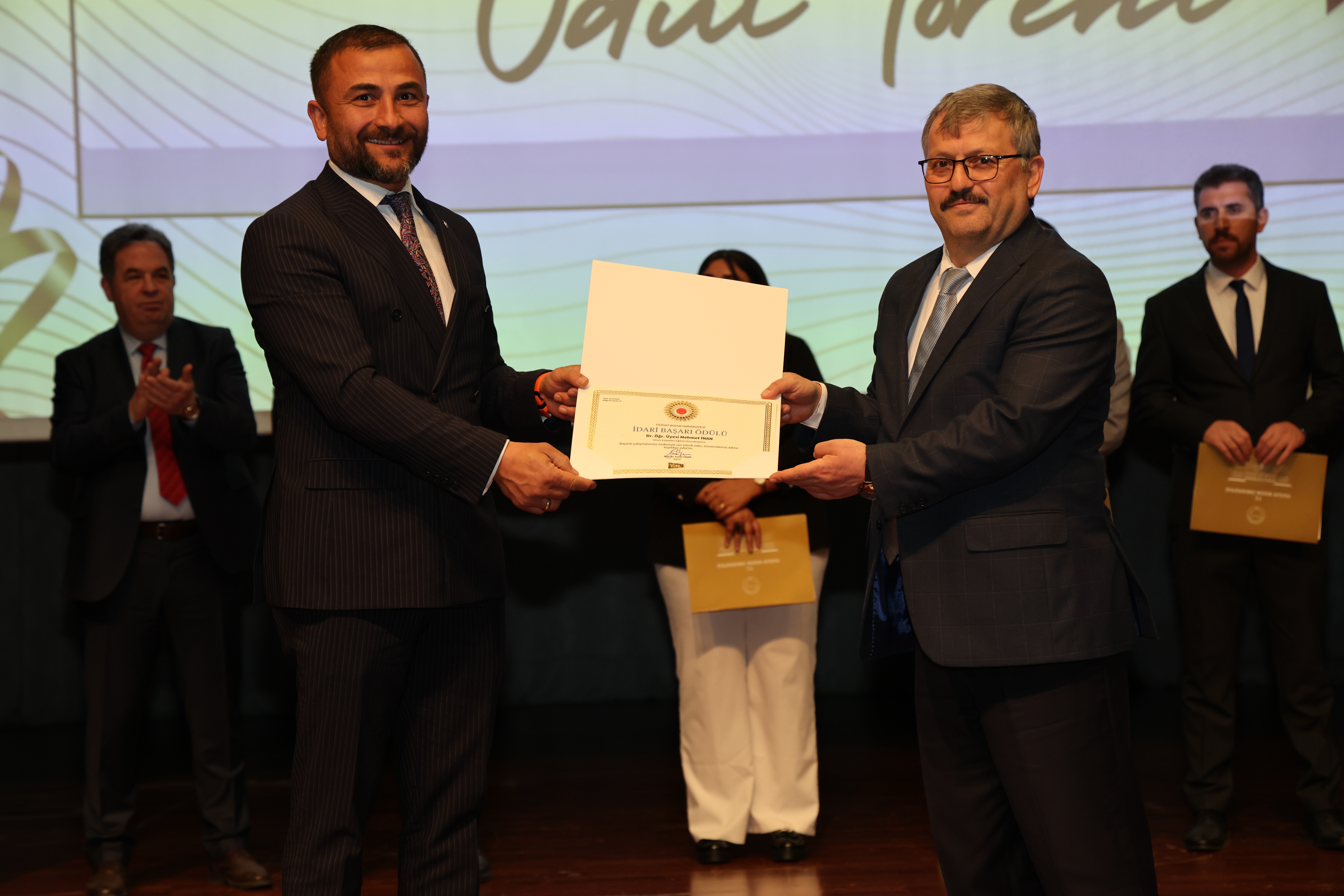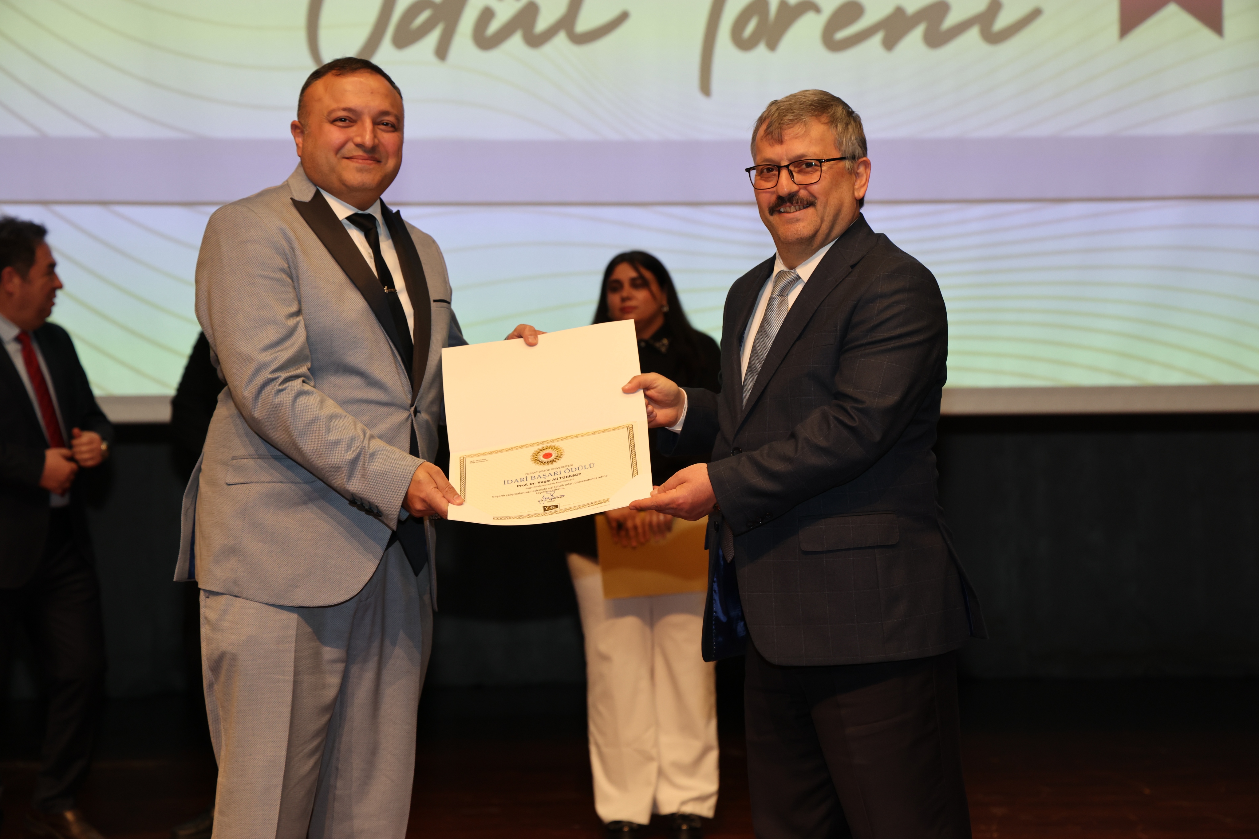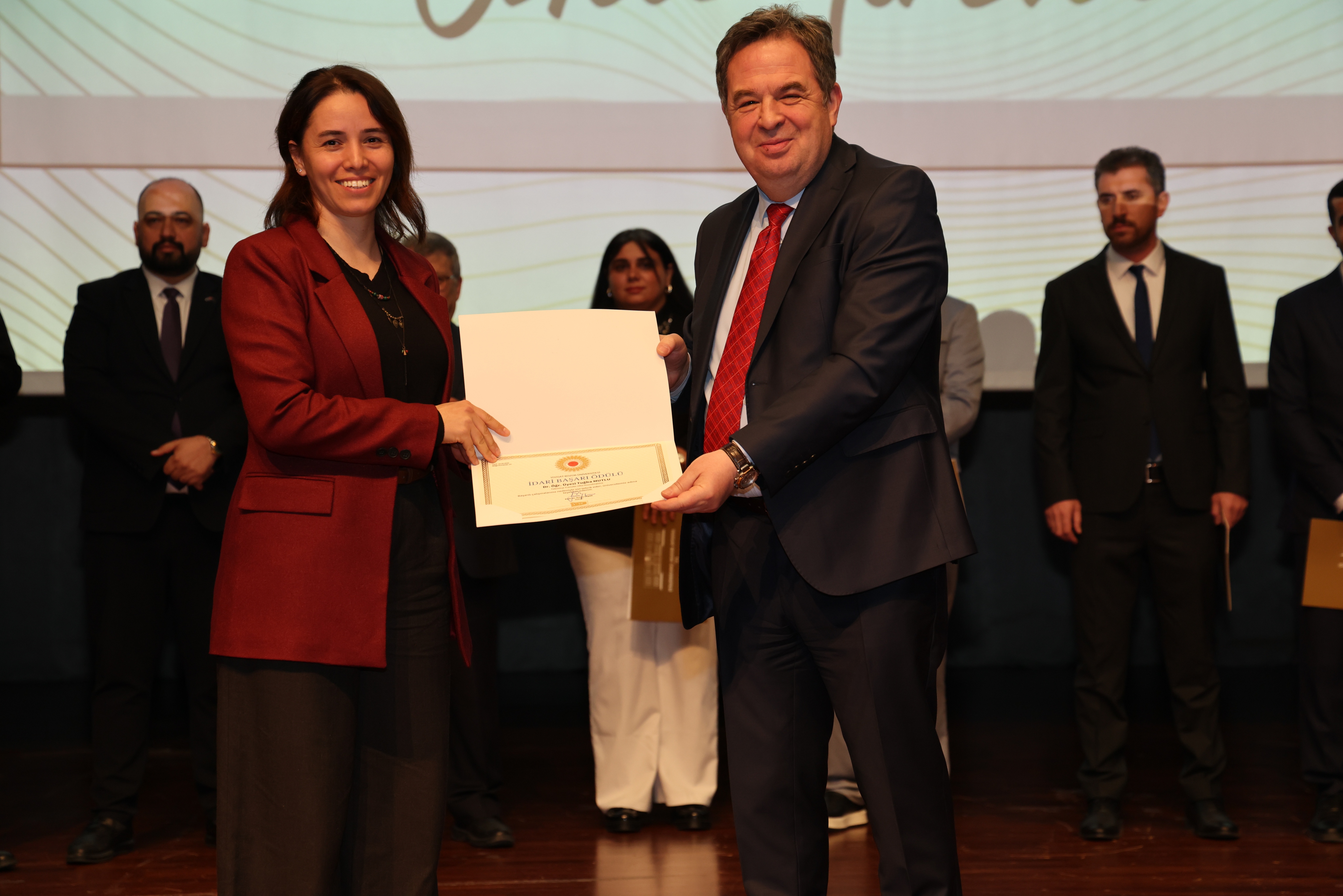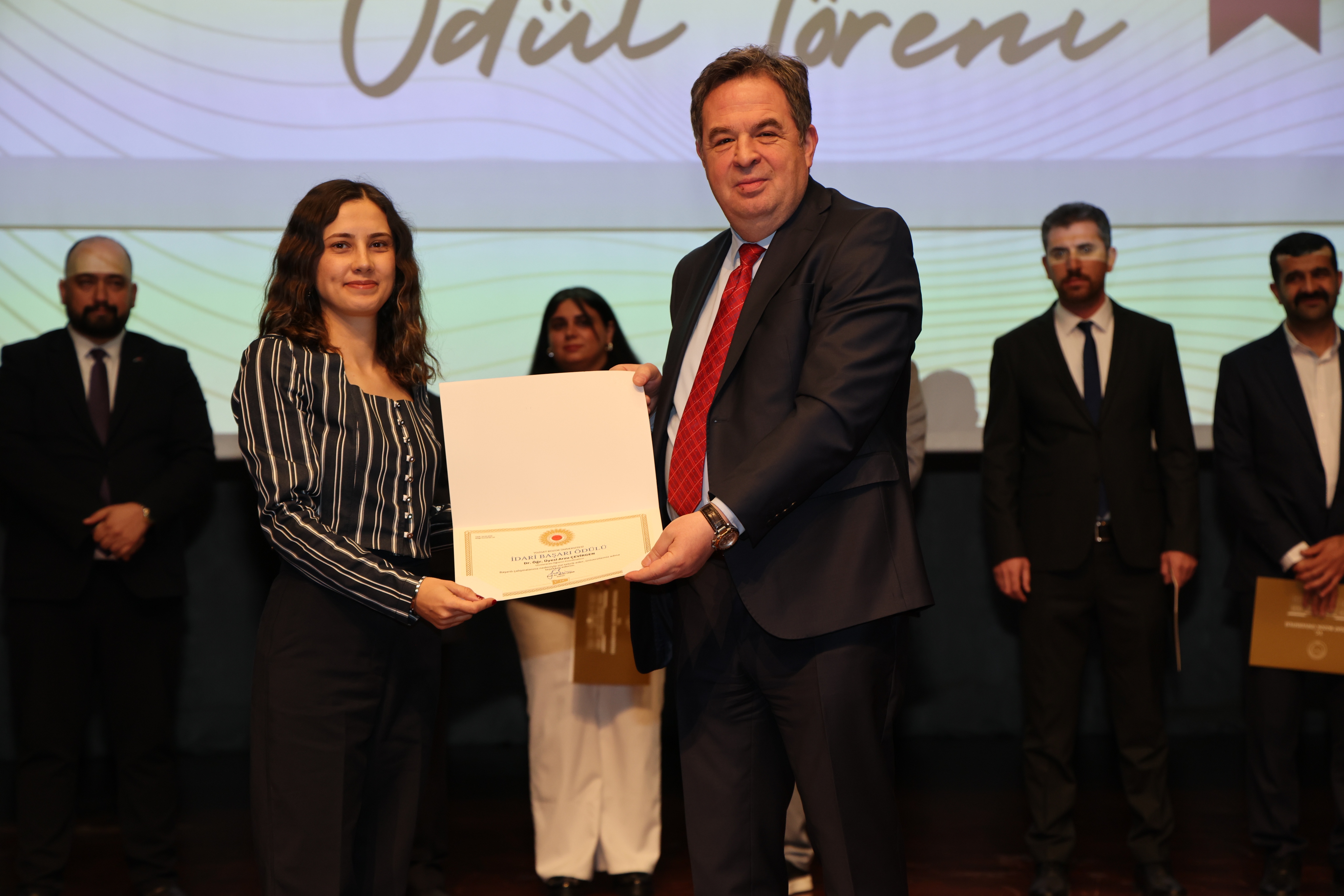 Erdoğan Akdağ Kongre ve Kültür Merkezi’nde gerçekleştirilen törende; İdari Başarı Ödülü, Akademik Başarı Ödülü, Öğrenci Başarı Ödülü ve Kalite Ödülleri, Üniversitemiz Rektörü Prof. Dr. Evren Yaşar, Rektör Yardımcıları Prof. Dr. Güngör Yılmaz, Prof. Dr. Fuat Köksal, Prof. Dr. Tansel Hacıhasanoğlu ve Genel Sekreterimiz Doç. Dr. Mustafa Kocakaya tarafından sahiplerine takdim edildi.