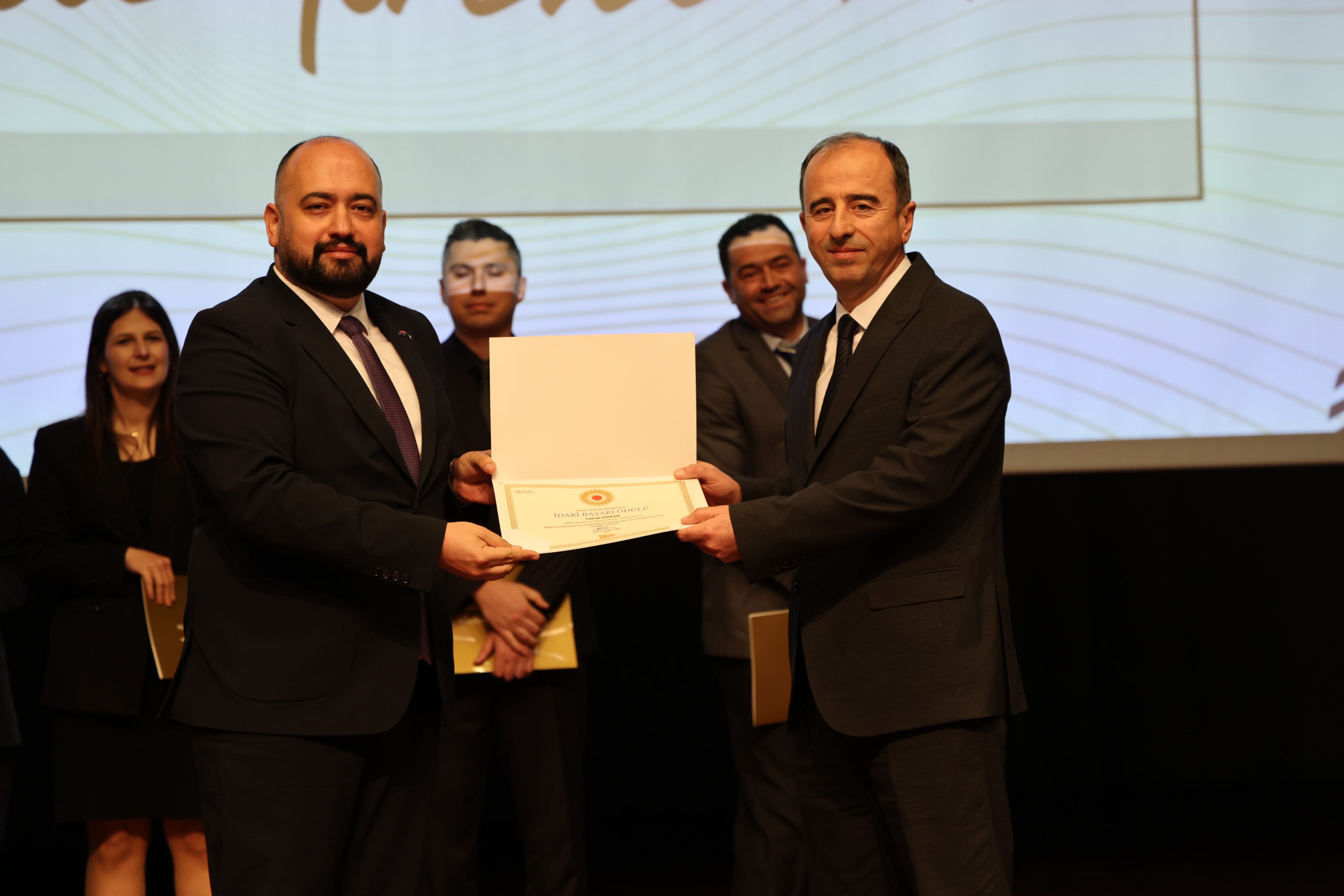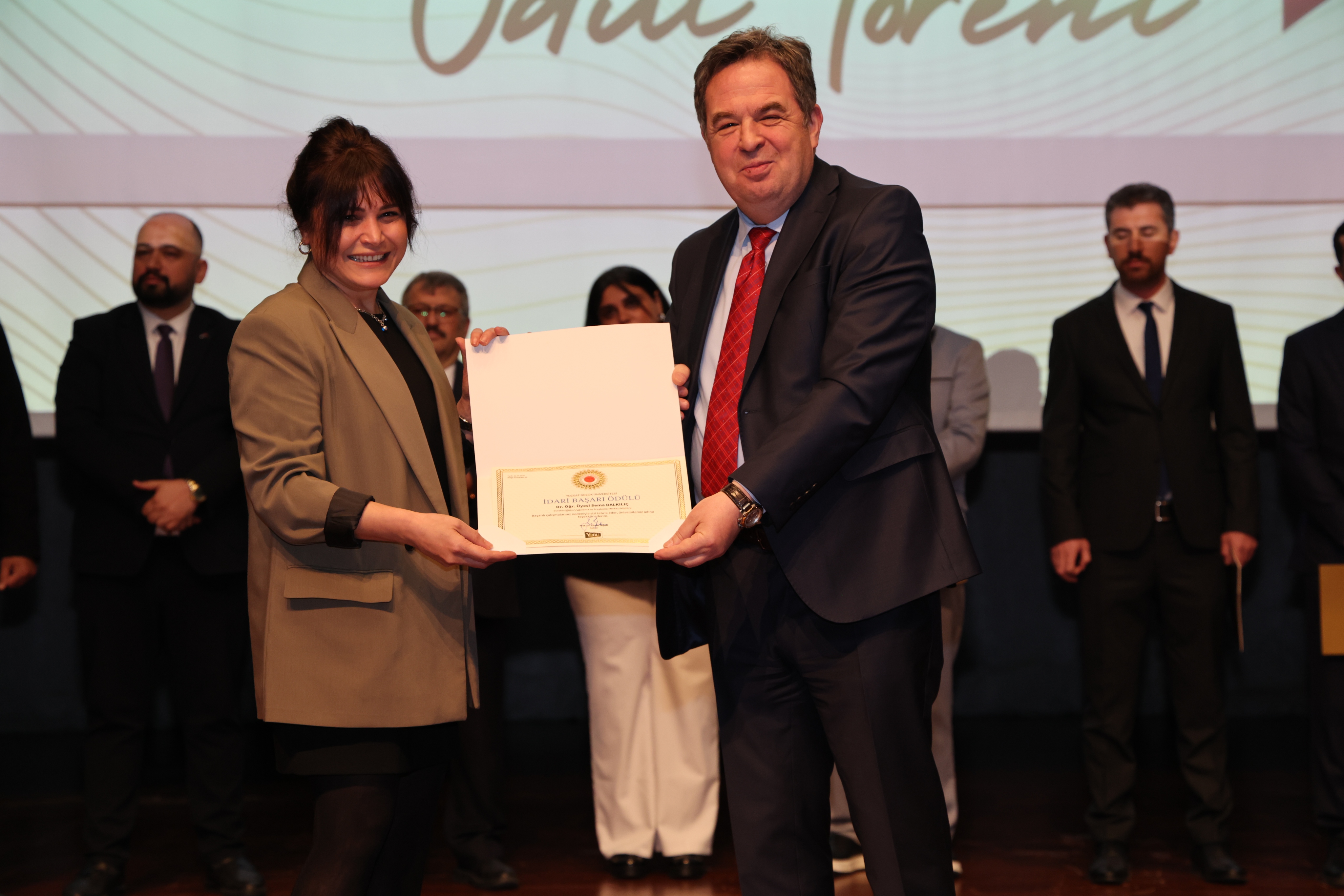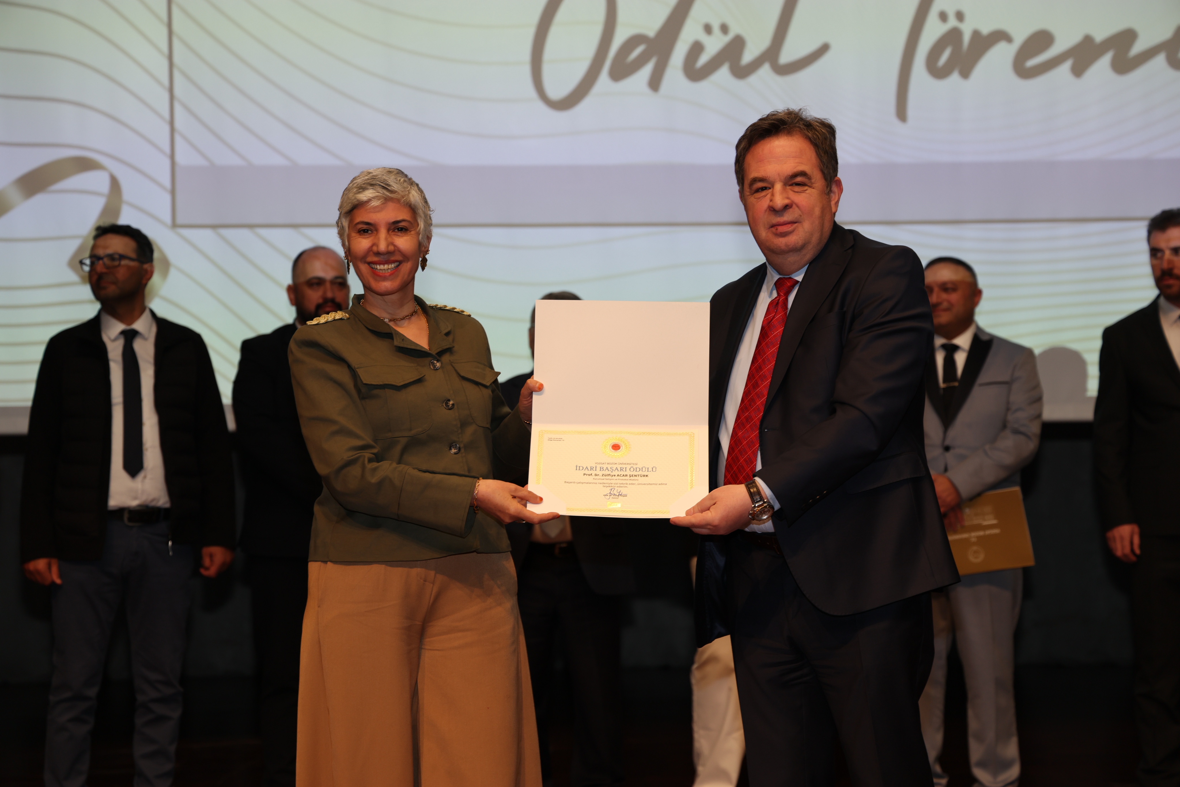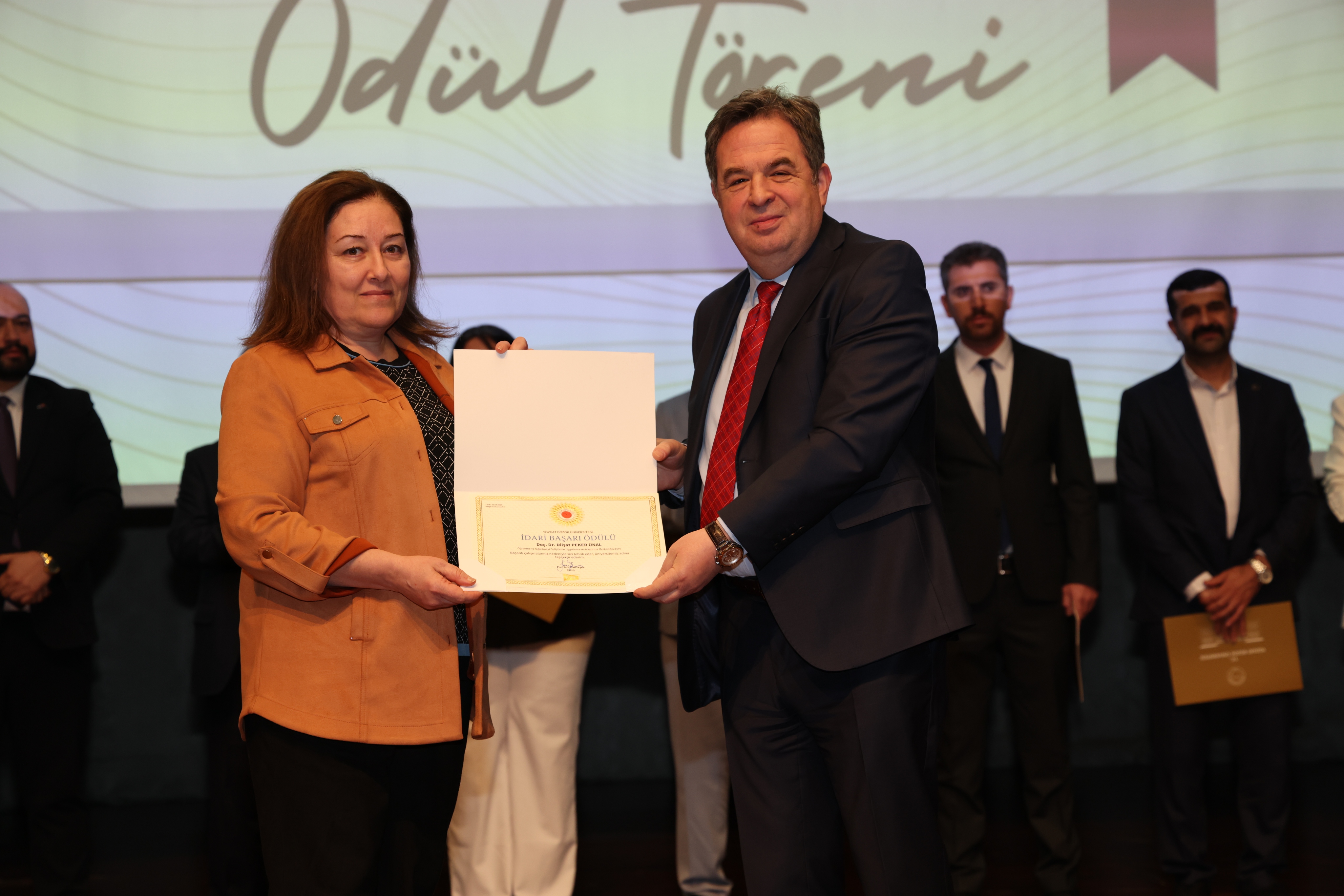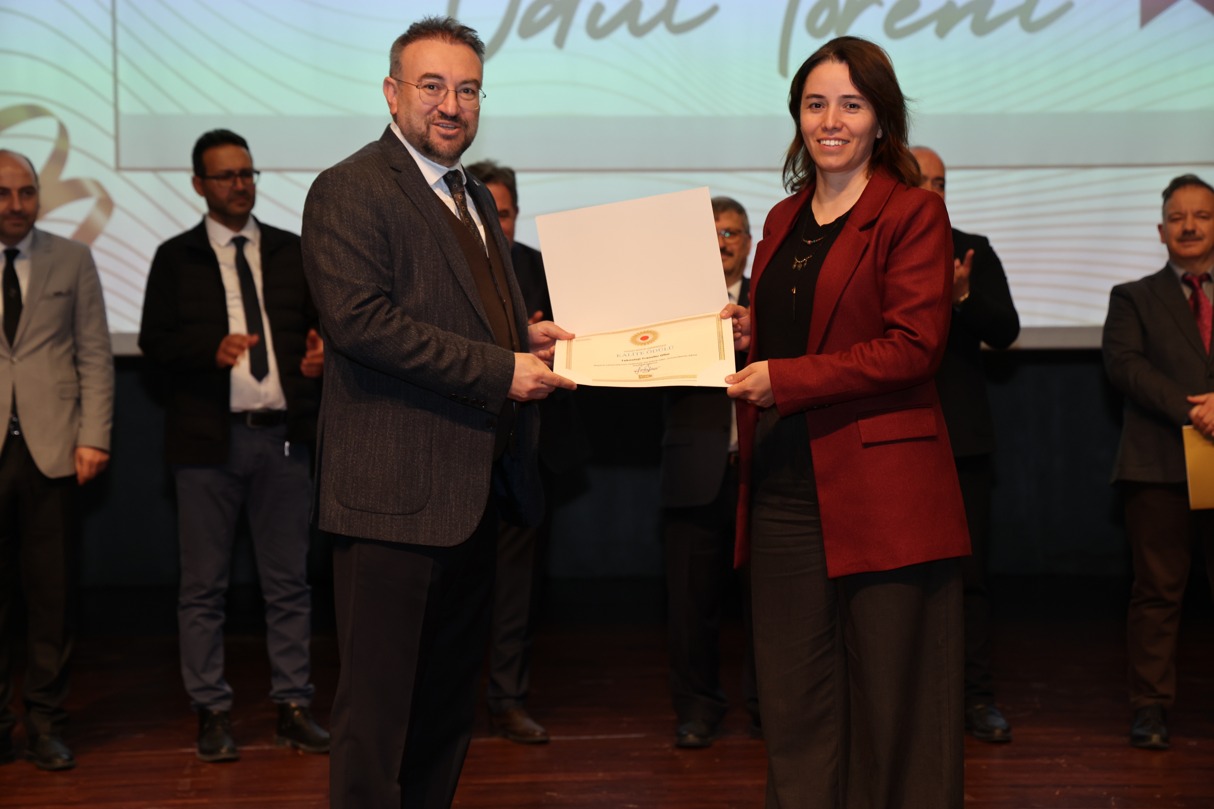 Erdoğan Akdağ Kongre ve Kültür Merkezi’nde gerçekleştirilen törende; İdari Başarı Ödülü, Akademik Başarı Ödülü, Öğrenci Başarı Ödülü ve Kalite Ödülleri, Üniversitemiz Rektörü Prof. Dr. Evren Yaşar, Rektör Yardımcıları Prof. Dr. Güngör Yılmaz, Prof. Dr. Fuat Köksal, Prof. Dr. Tansel Hacıhasanoğlu ve Genel Sekreterimiz Doç. Dr. Mustafa Kocakaya tarafından sahiplerine takdim edildi.