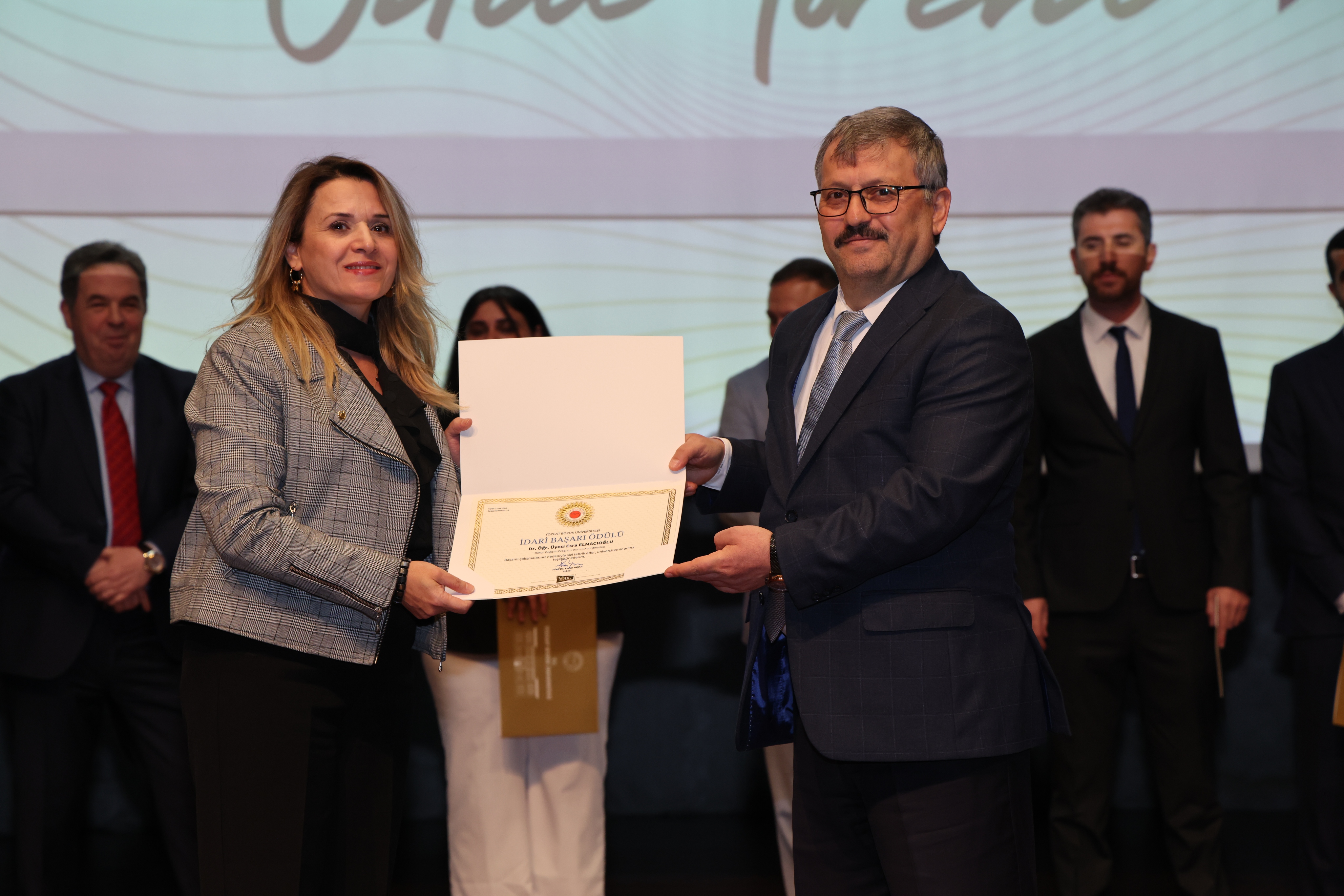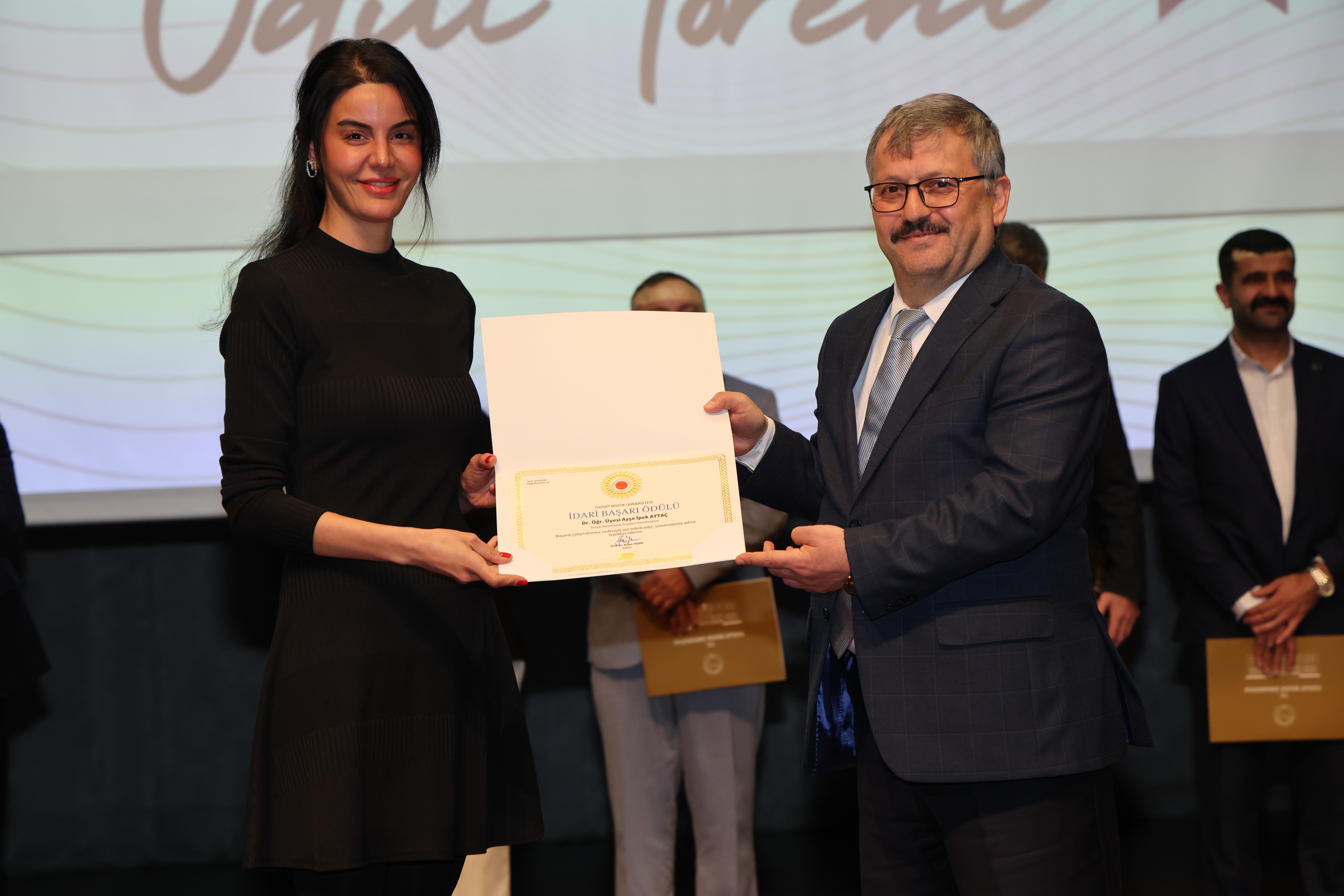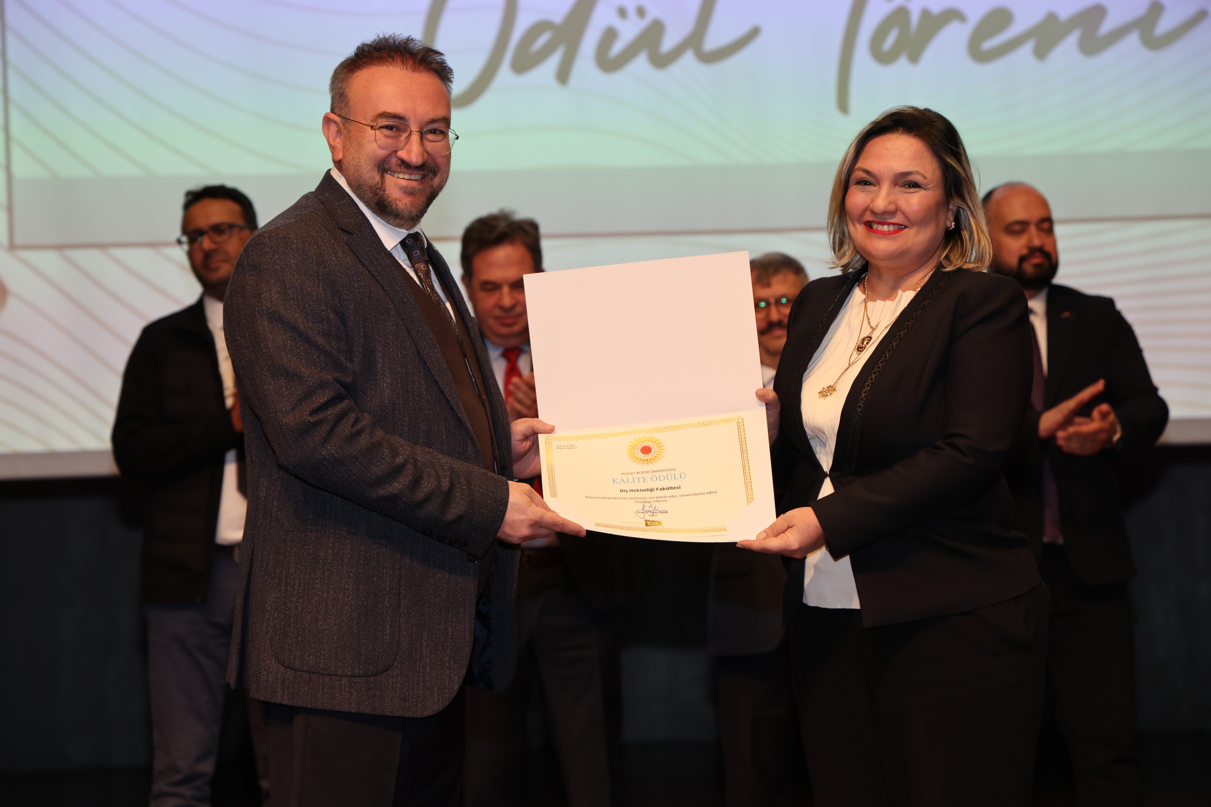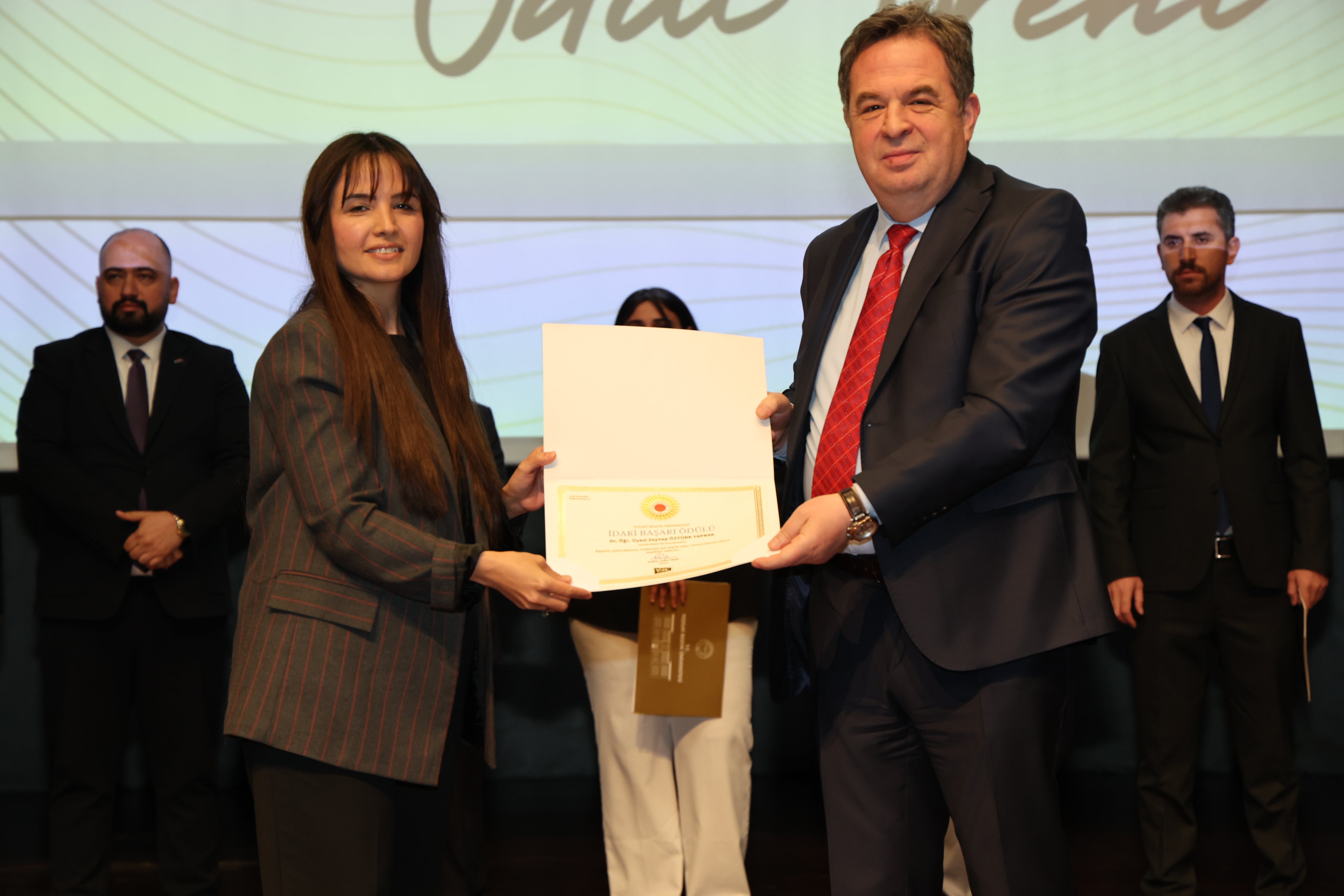 Erdoğan Akdağ Kongre ve Kültür Merkezi’nde gerçekleştirilen törende; İdari Başarı Ödülü, Akademik Başarı Ödülü, Öğrenci Başarı Ödülü ve Kalite Ödülleri, Üniversitemiz Rektörü Prof. Dr. Evren Yaşar, Rektör Yardımcıları Prof. Dr. Güngör Yılmaz, Prof. Dr. Fuat Köksal, Prof. Dr. Tansel Hacıhasanoğlu ve Genel Sekreterimiz Doç. Dr. Mustafa Kocakaya tarafından sahiplerine takdim edildi.