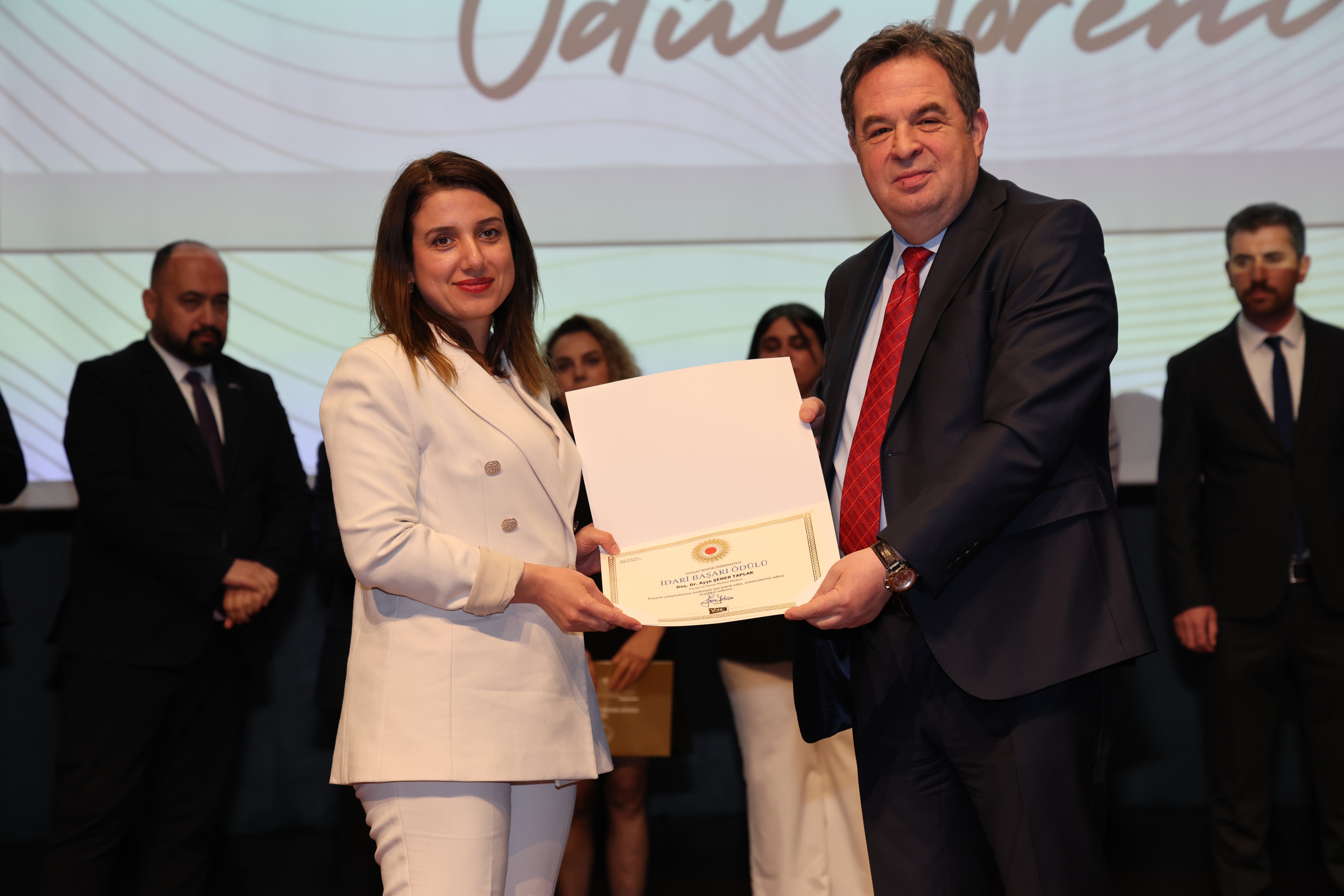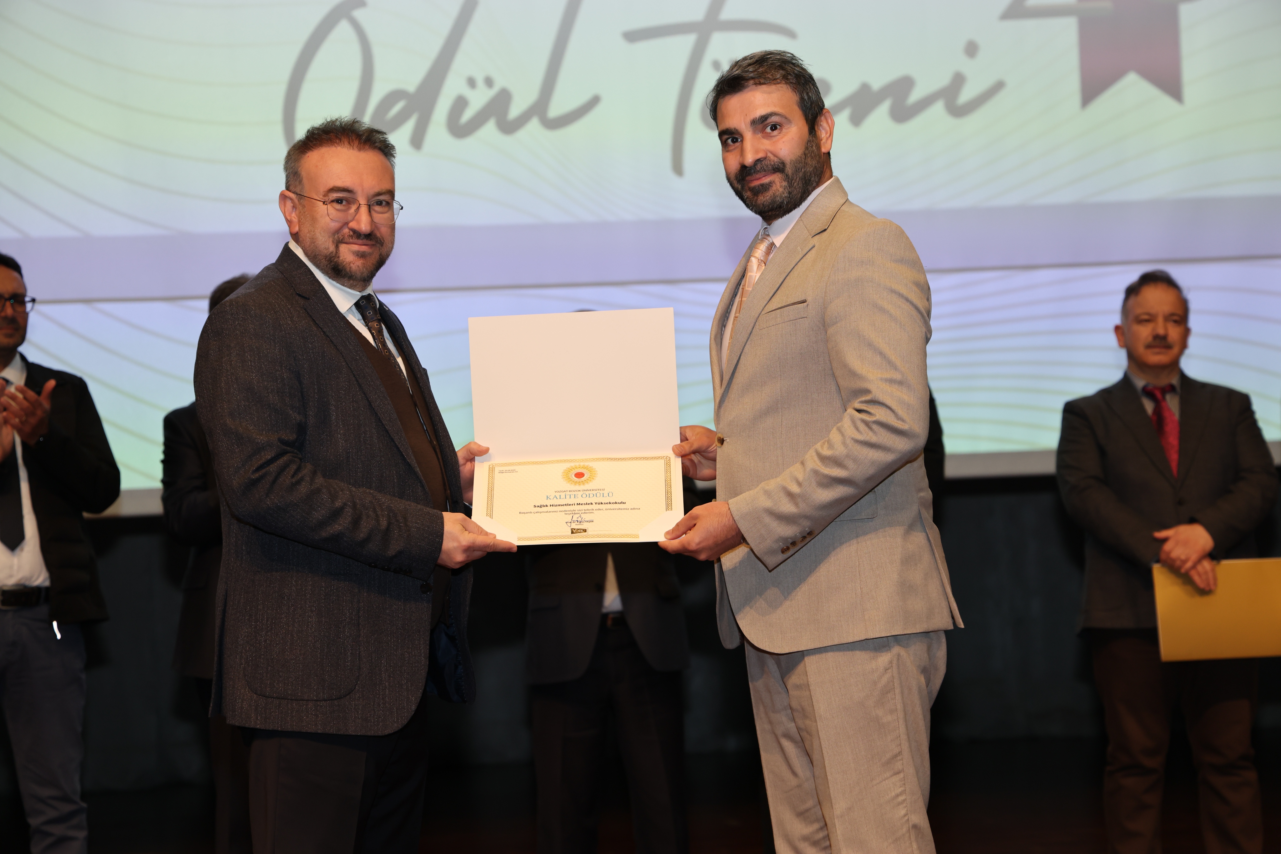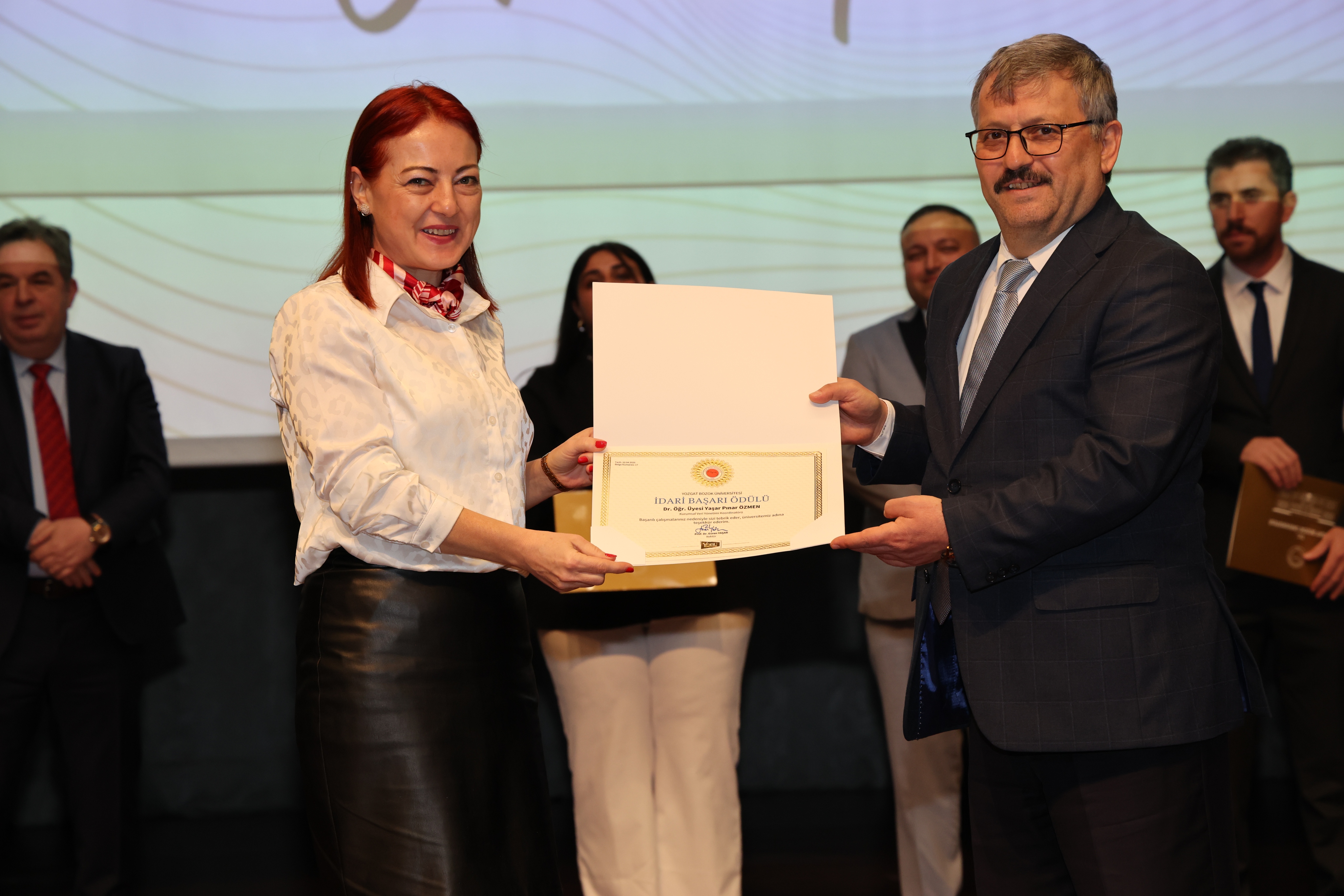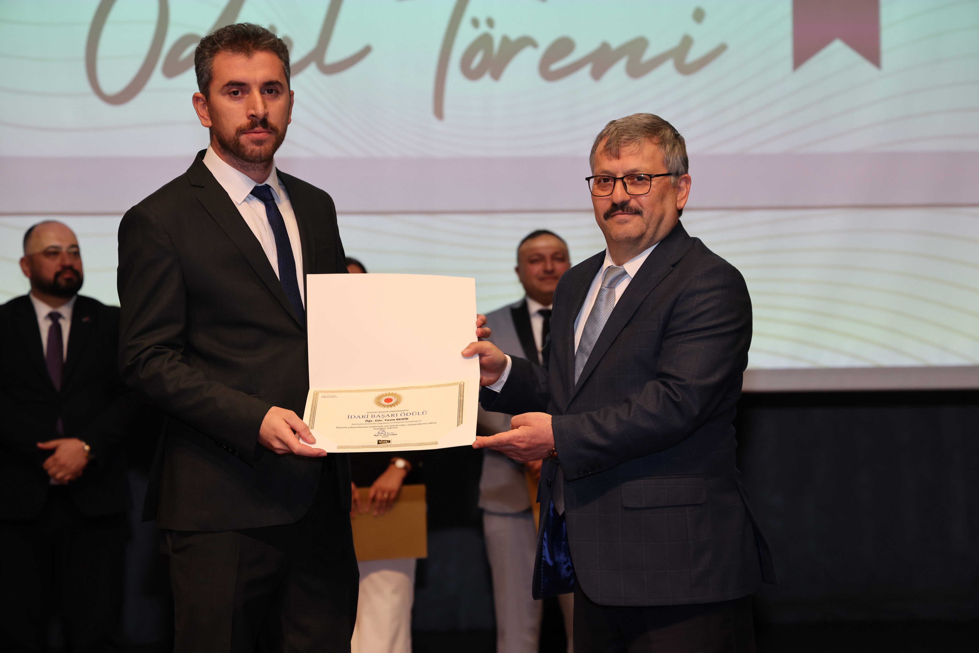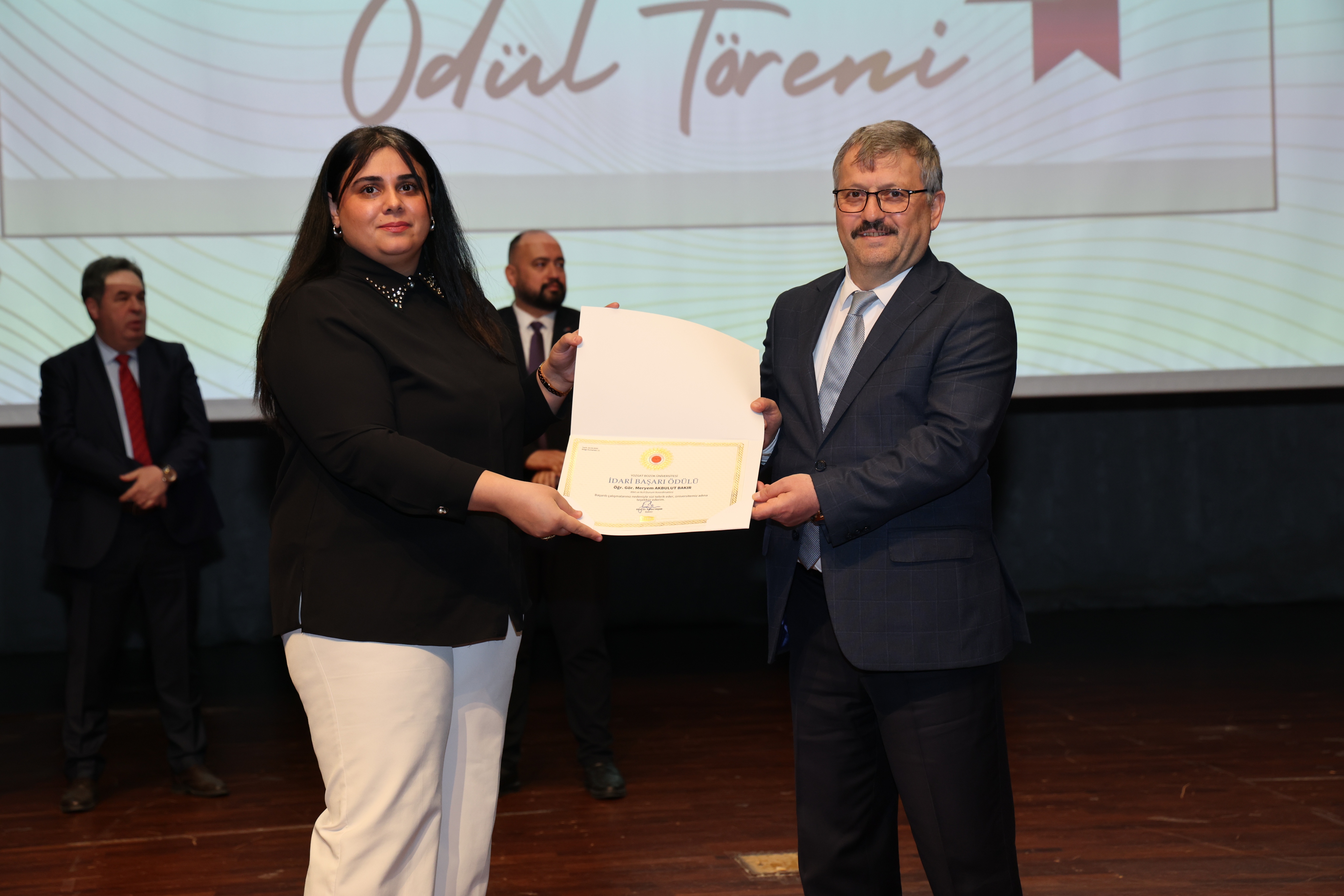 Erdoğan Akdağ Kongre ve Kültür Merkezi’nde gerçekleştirilen törende; İdari Başarı Ödülü, Akademik Başarı Ödülü, Öğrenci Başarı Ödülü ve Kalite Ödülleri, Üniversitemiz Rektörü Prof. Dr. Evren Yaşar, Rektör Yardımcıları Prof. Dr. Güngör Yılmaz, Prof. Dr. Fuat Köksal, Prof. Dr. Tansel Hacıhasanoğlu ve Genel Sekreterimiz Doç. Dr. Mustafa Kocakaya tarafından sahiplerine takdim edildi.