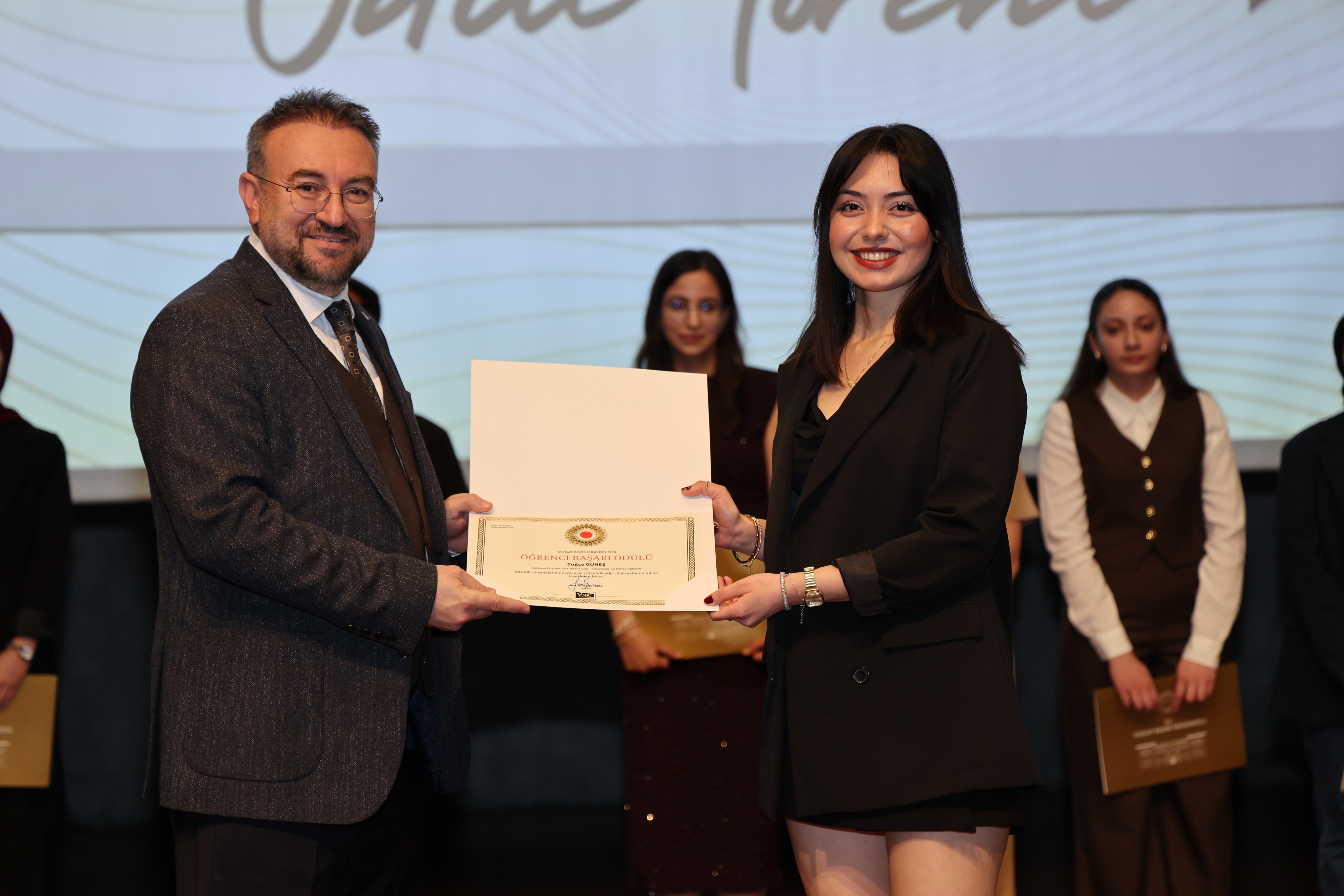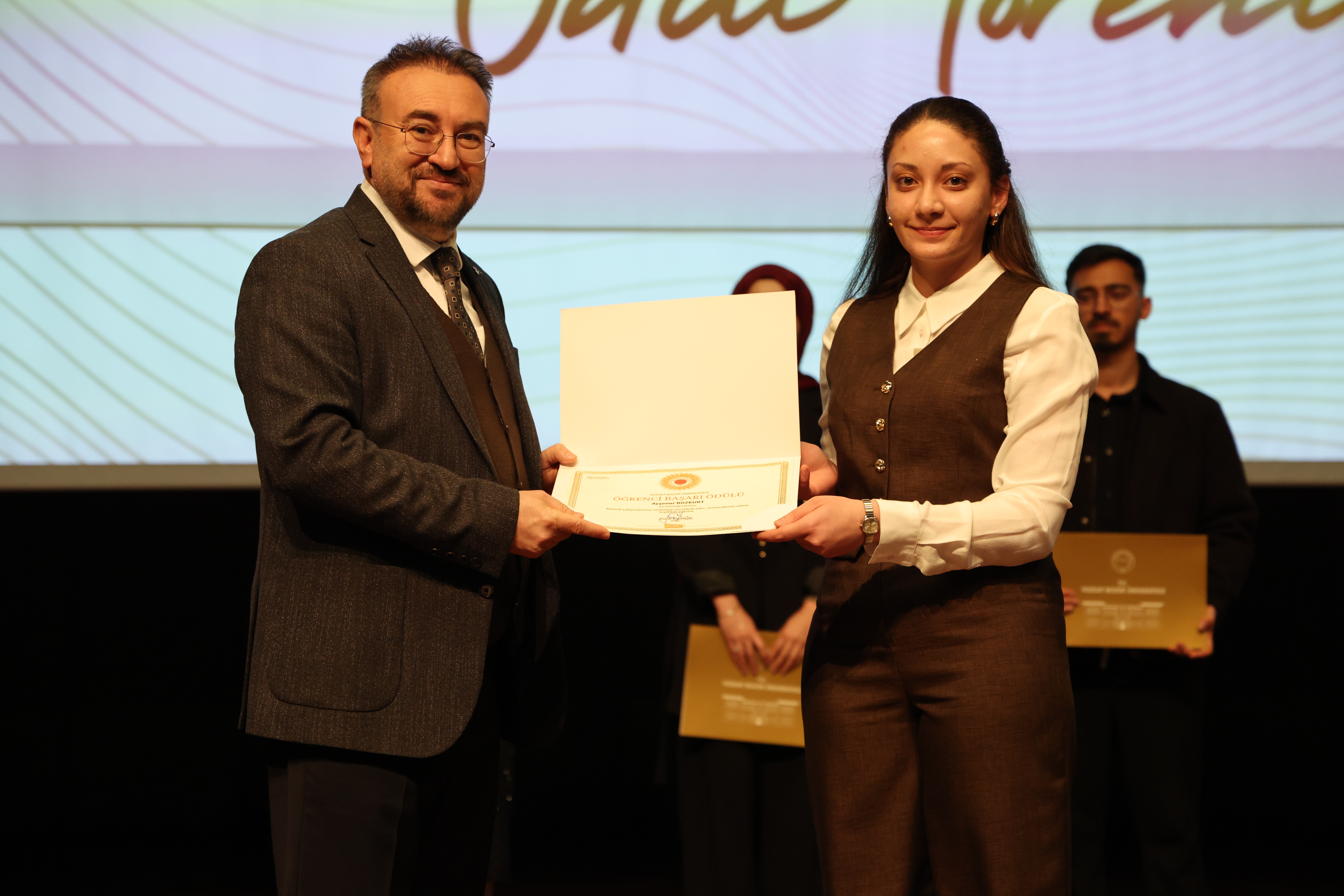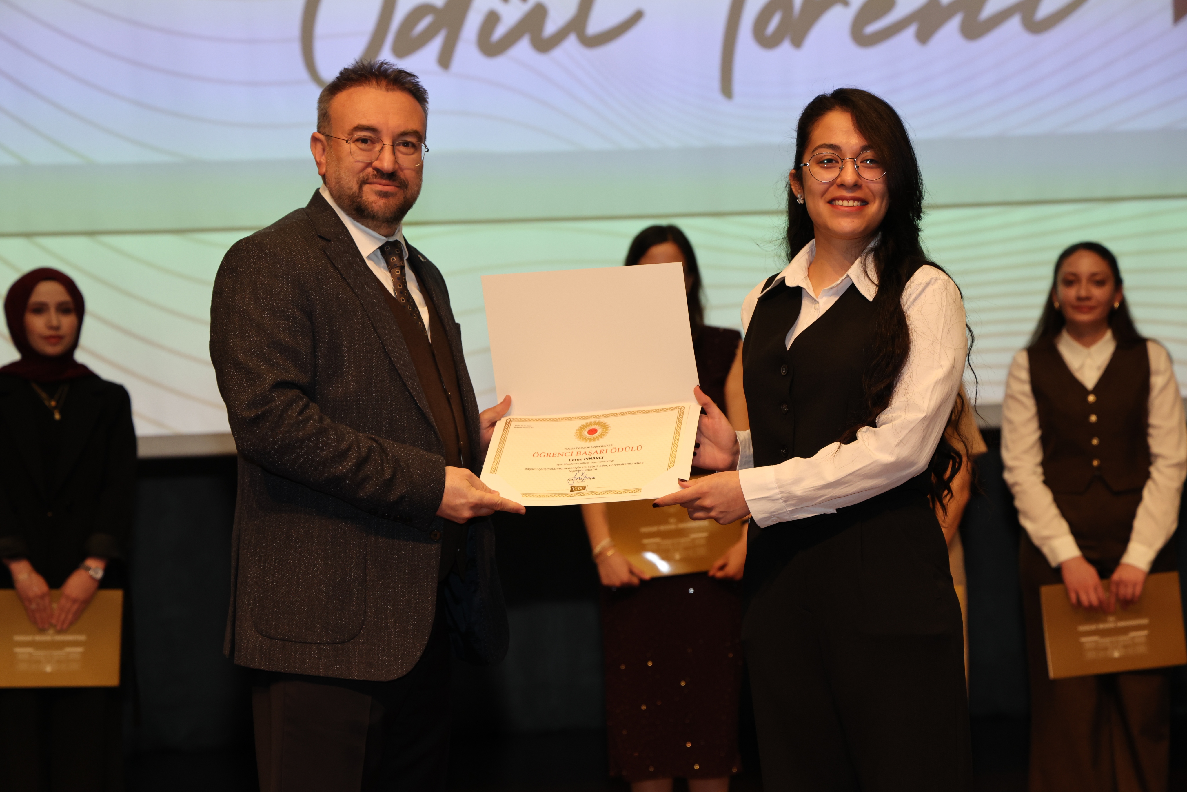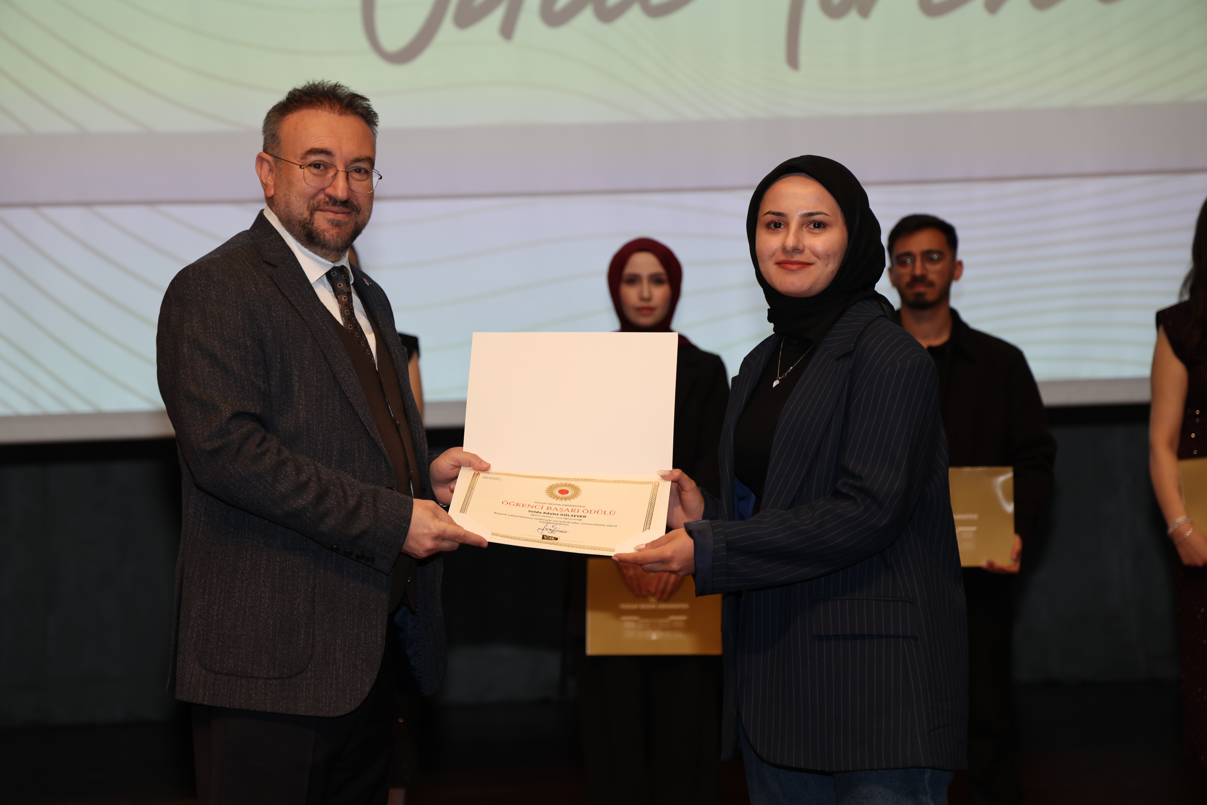 Erdoğan Akdağ Kongre ve Kültür Merkezi’nde gerçekleştirilen törende; İdari Başarı Ödülü, Akademik Başarı Ödülü, Öğrenci Başarı Ödülü ve Kalite Ödülleri, Üniversitemiz Rektörü Prof. Dr. Evren Yaşar, Rektör Yardımcıları Prof. Dr. Güngör Yılmaz, Prof. Dr. Fuat Köksal, Prof. Dr. Tansel Hacıhasanoğlu ve Genel Sekreterimiz Doç. Dr. Mustafa Kocakaya tarafından sahiplerine takdim edildi.