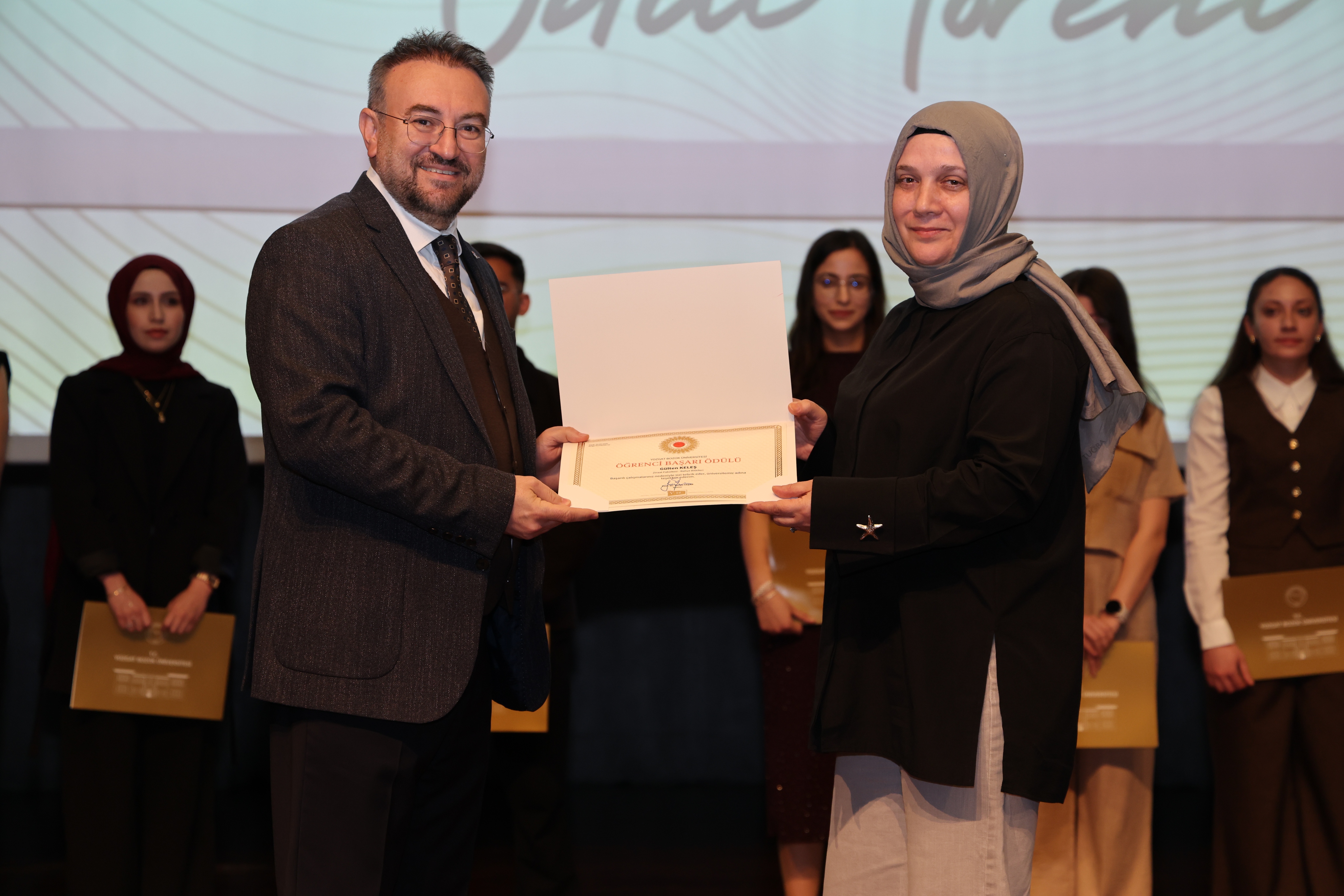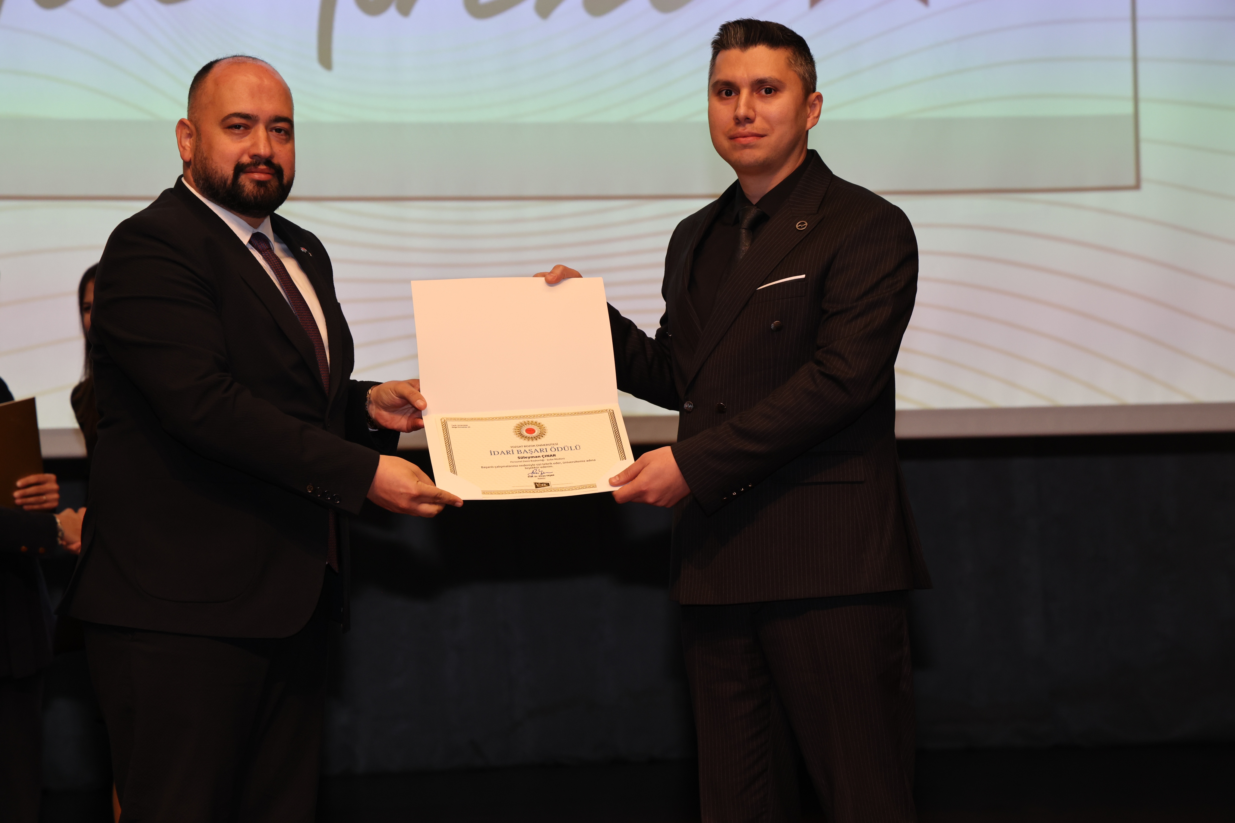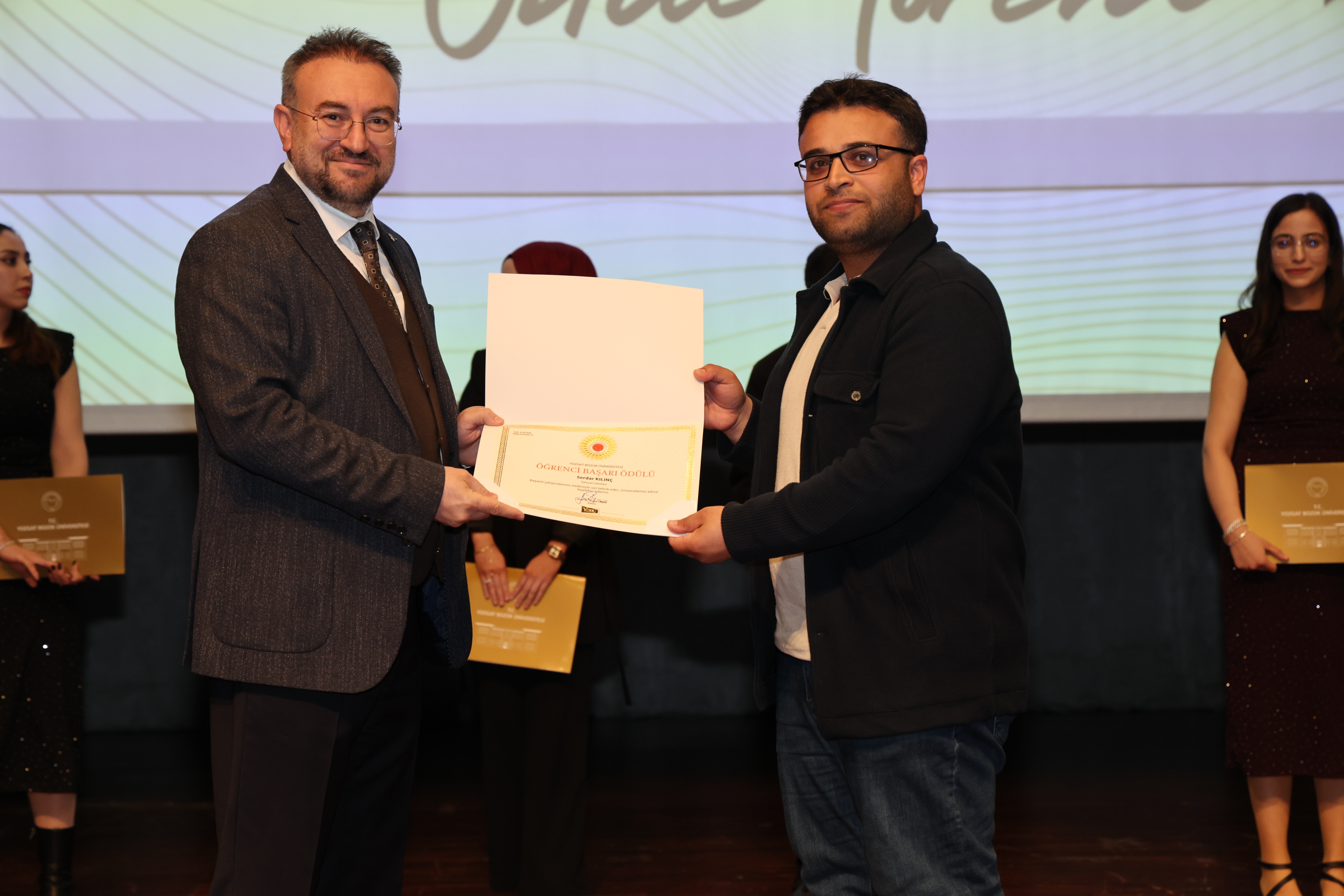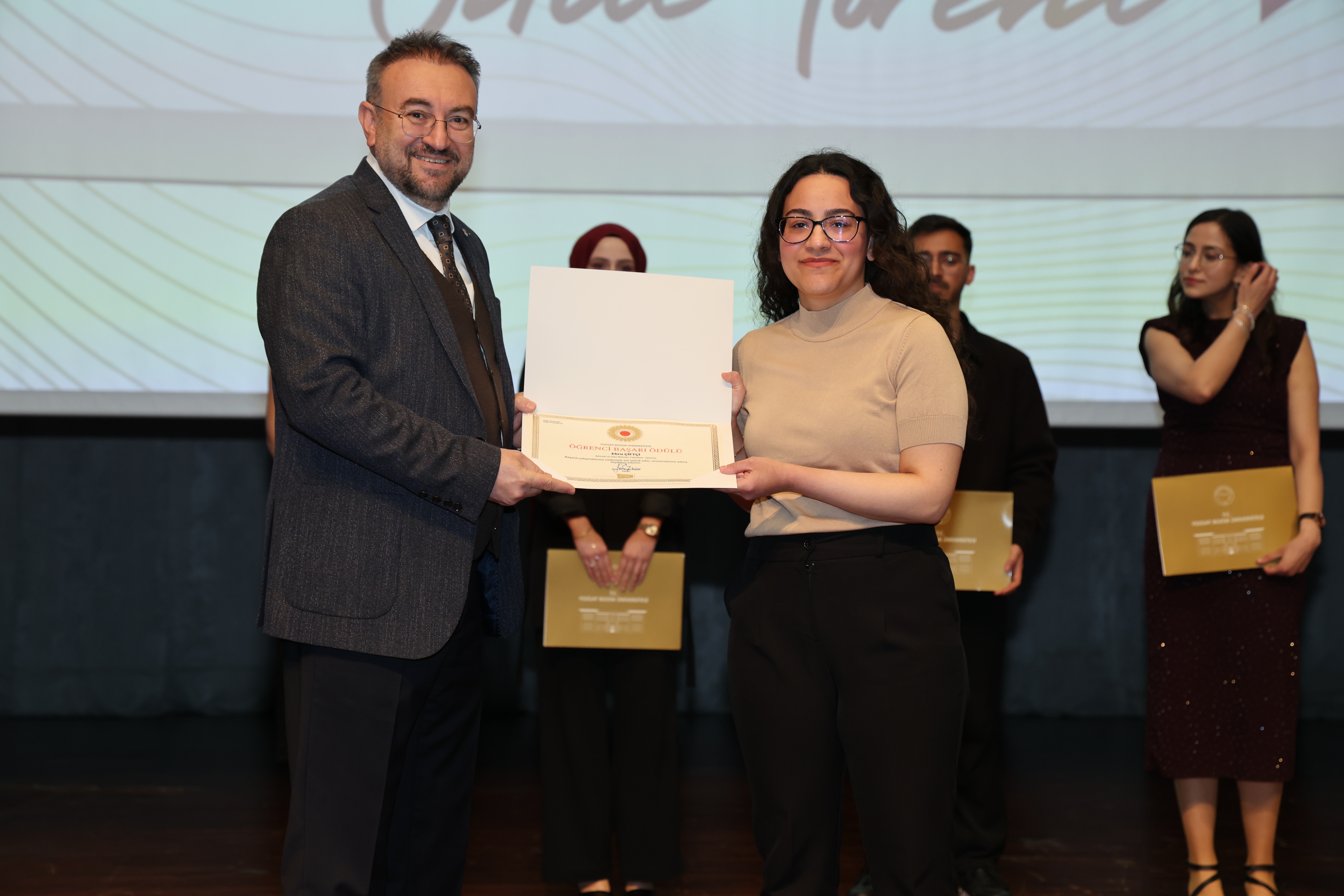 Elde edilen başarıların, ortak emek ve özverinin bir sonucu olduğunu ifade eden Rektörümüz konuşmasının devamında: “İki buçuk yılı aşkın süredir birlikte çalışıyoruz. Bu süreçte üniversitemizi ulusal ve uluslararası alanda daha ileriye taşımak için elinizden gelen çabayı gösterdiniz. Yozgat Bozok Üniversitesi markasının görünürlüğünü artırma noktasında hep birlikte önemli katkılar sundunuz. Yönetim anlayışı olarak profesyonel çalışmayı önemsiyoruz ve başarıyı ödüllendirmeyi de bu sürecin önemli bir parçası olarak görüyoruz. Bu tür törenleri önümüzdeki süreçte de sürdürmeyi planlıyoruz. Sorumluluğumuz büyük ve önümüzde zorlu bir yol var. Ancak birlik ve beraberlik içerisinde hareket ederek bu süreci daha güçlü bir şekilde yürütebiliriz. Bugün gerçekleştirdiğimiz ödül töreninin güzel bir başlangıç olduğuna inanıyorum. Hep birlikte üniversitemizin görünürlüğünü daha ileriye taşıyacak, Yozgat Bozok Üniversitesi markasını daha güçlü bir konuma ulaştıracağız.” ifadelerini kullandı.