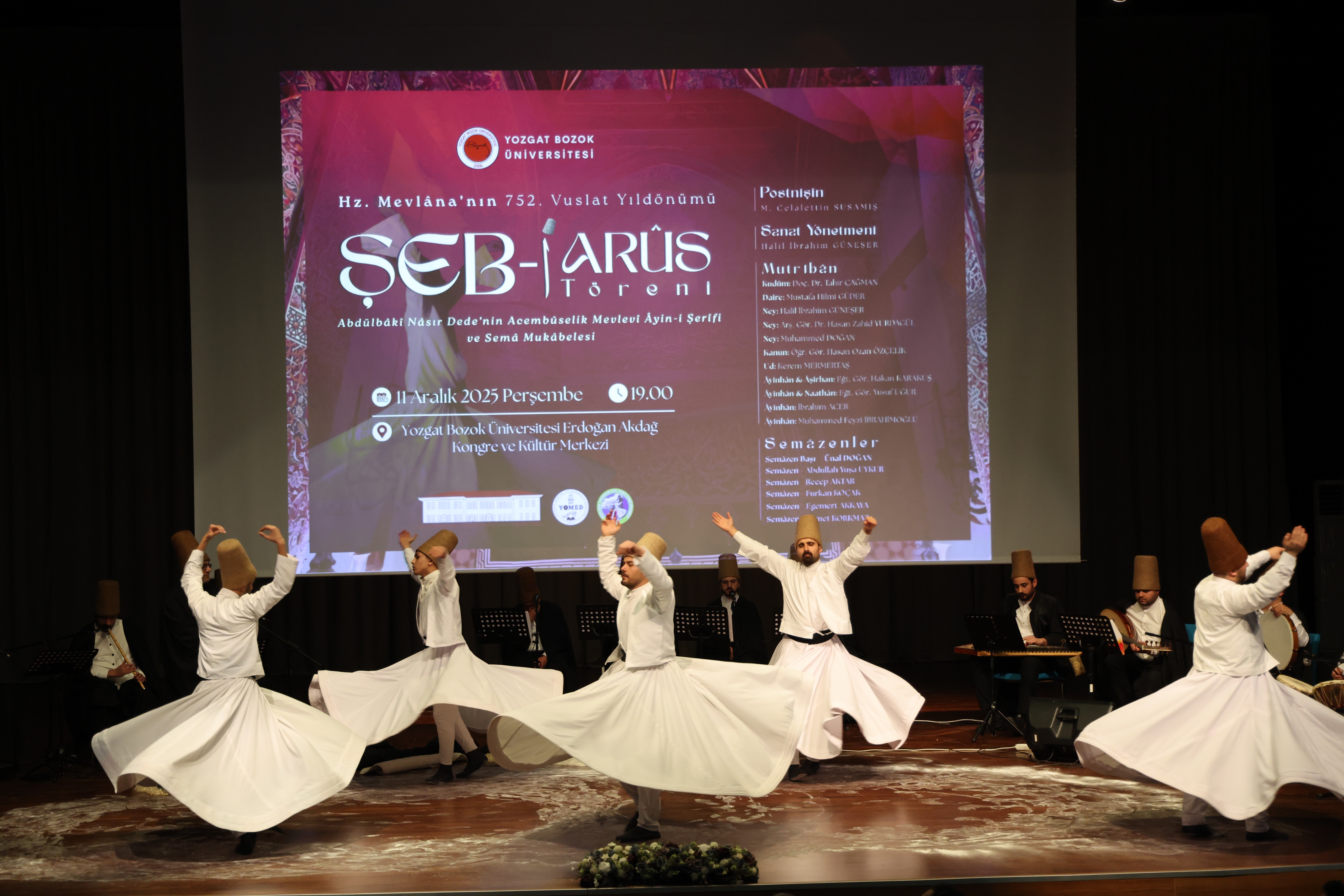 Üniversitemiz Ekmeleddin İhsanoğlu Tarih ve Kültür Uygulama ve Araştırma Merkezi (EKİTKAM), Yozgat Musiki ve Edebiyat Derneği (YOMED) ile Sivas Mevlana Tasavvuf Kültürü ve Sema Derneği iş birliğinde Hz. Mevlana’nın 752. Vuslat Yıldönümü dolayısıyla Şeb-i Arûs Töreni düzenlendi.