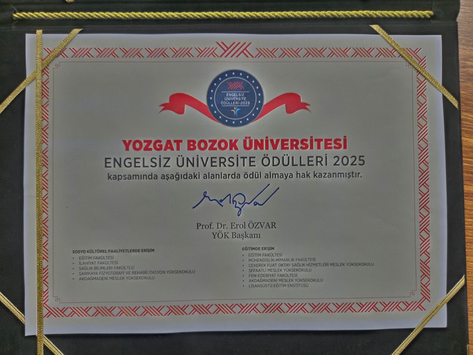 ÜNİVERSİTEMİZ, YÖK ENGELSİZ ÜNİVERSİTE ÖDÜLLERİ 2025’TE TÜRKİYE BİRİNCİSİ