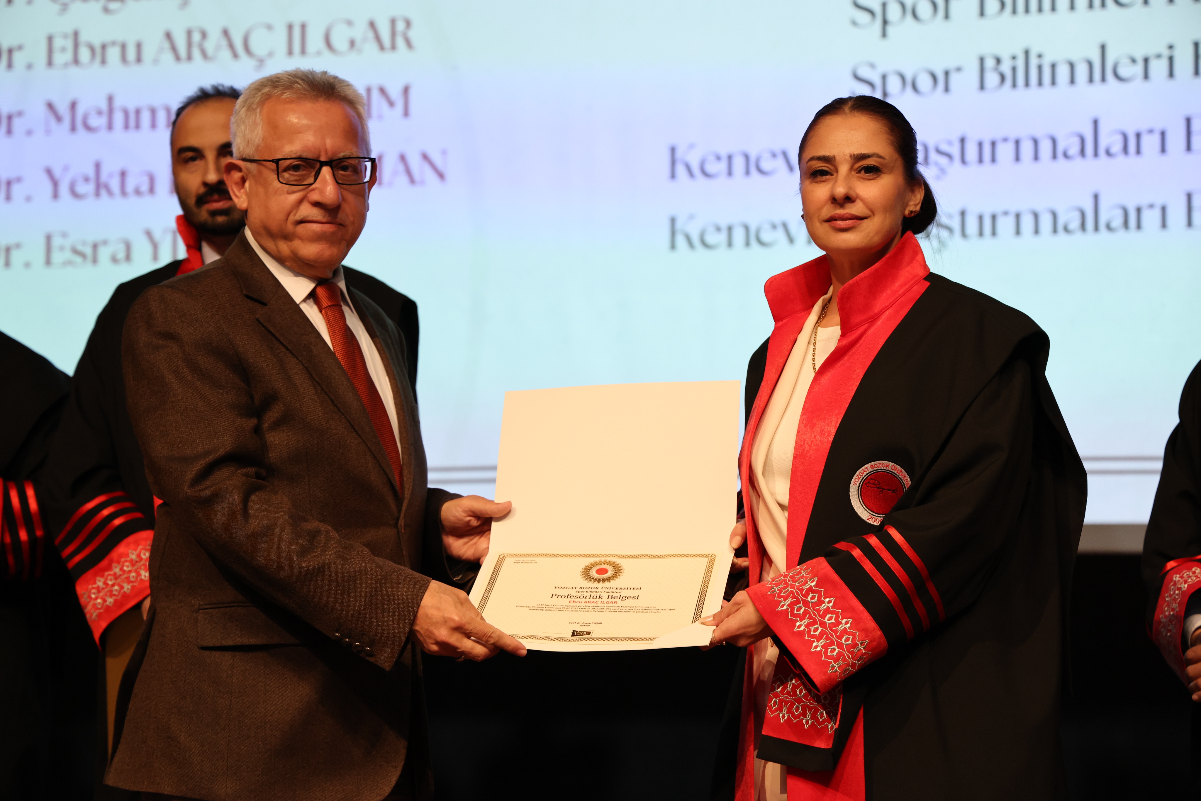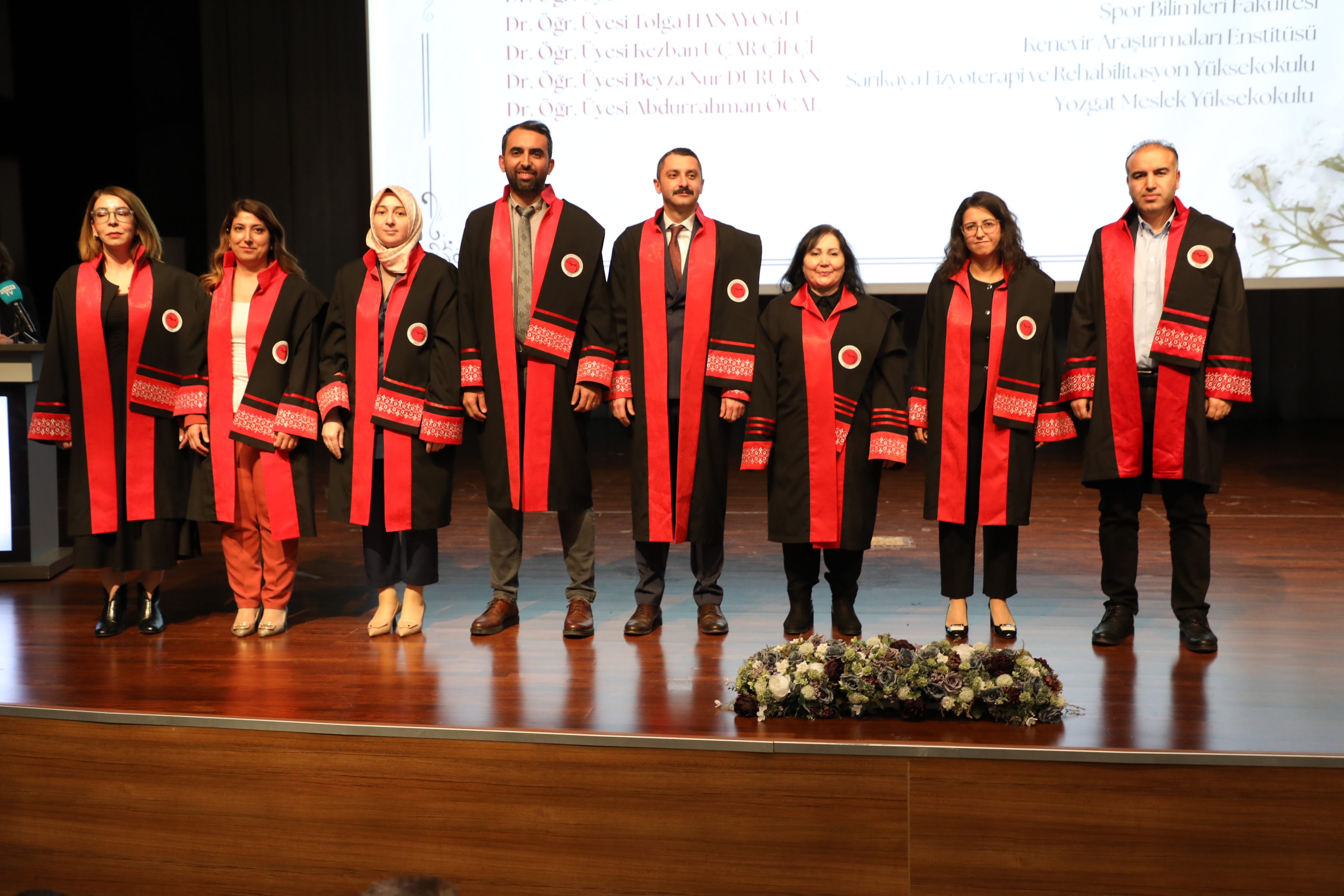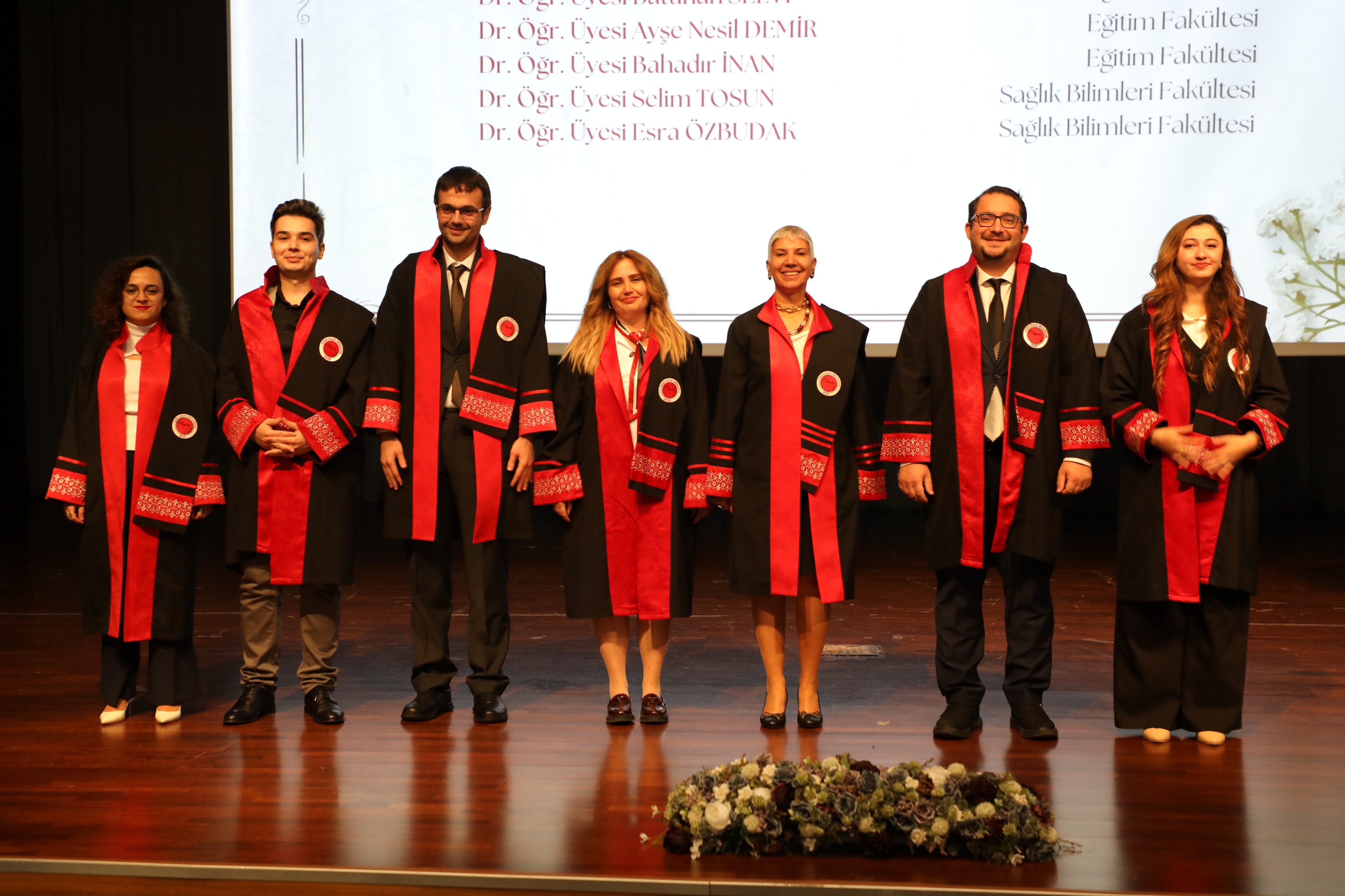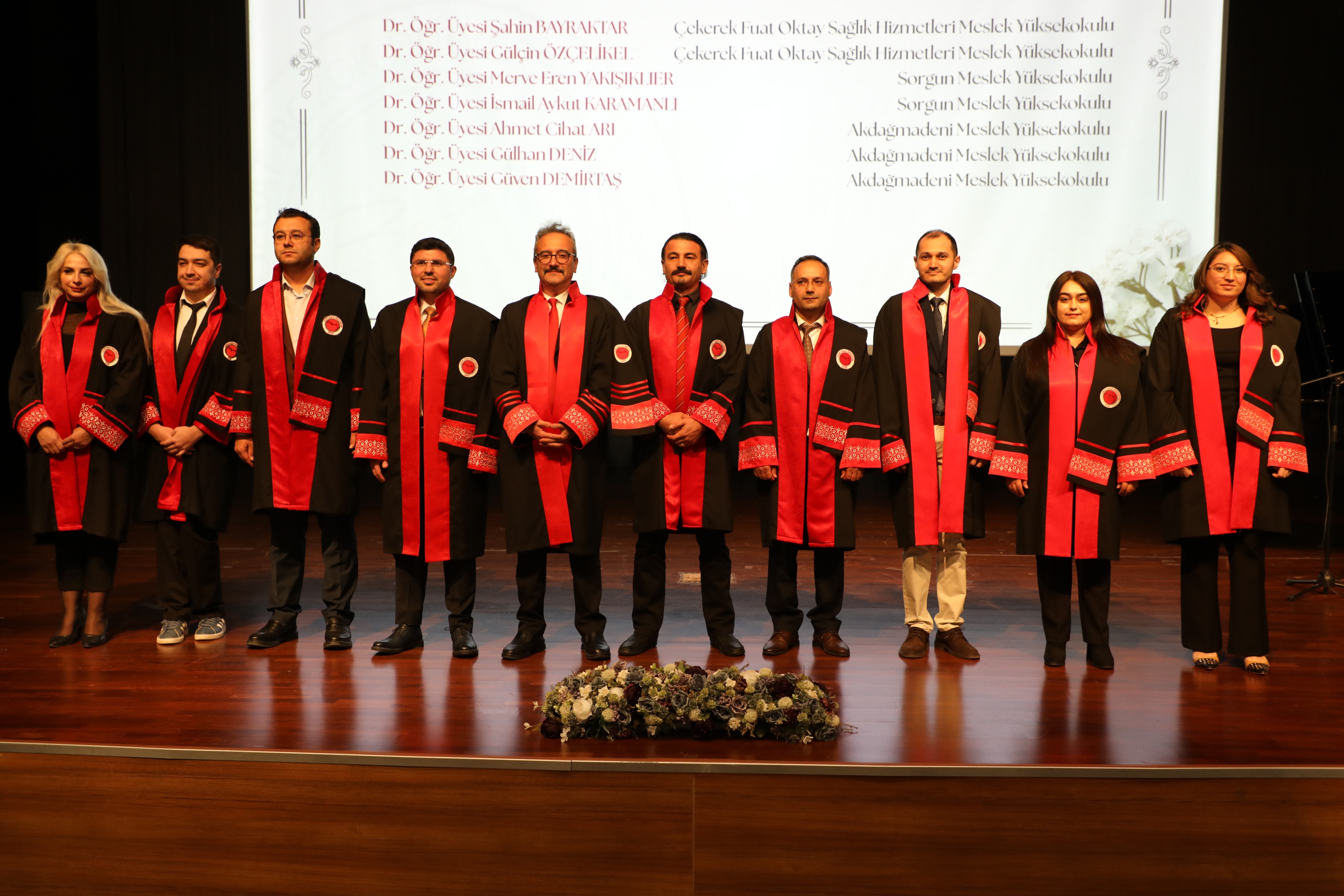 Açılış konuşmalarının ardından Üniversitemiz Rektörü Prof. Dr. Evren Yaşar ve protokol üyeleri tarafından akademik unvanlarında yükselen 27 Profesör, 28 Doçent ve 89 Doktor Öğretim Üyesi’ne cübbeleri giydirilerek belgeleri takdim edildi.