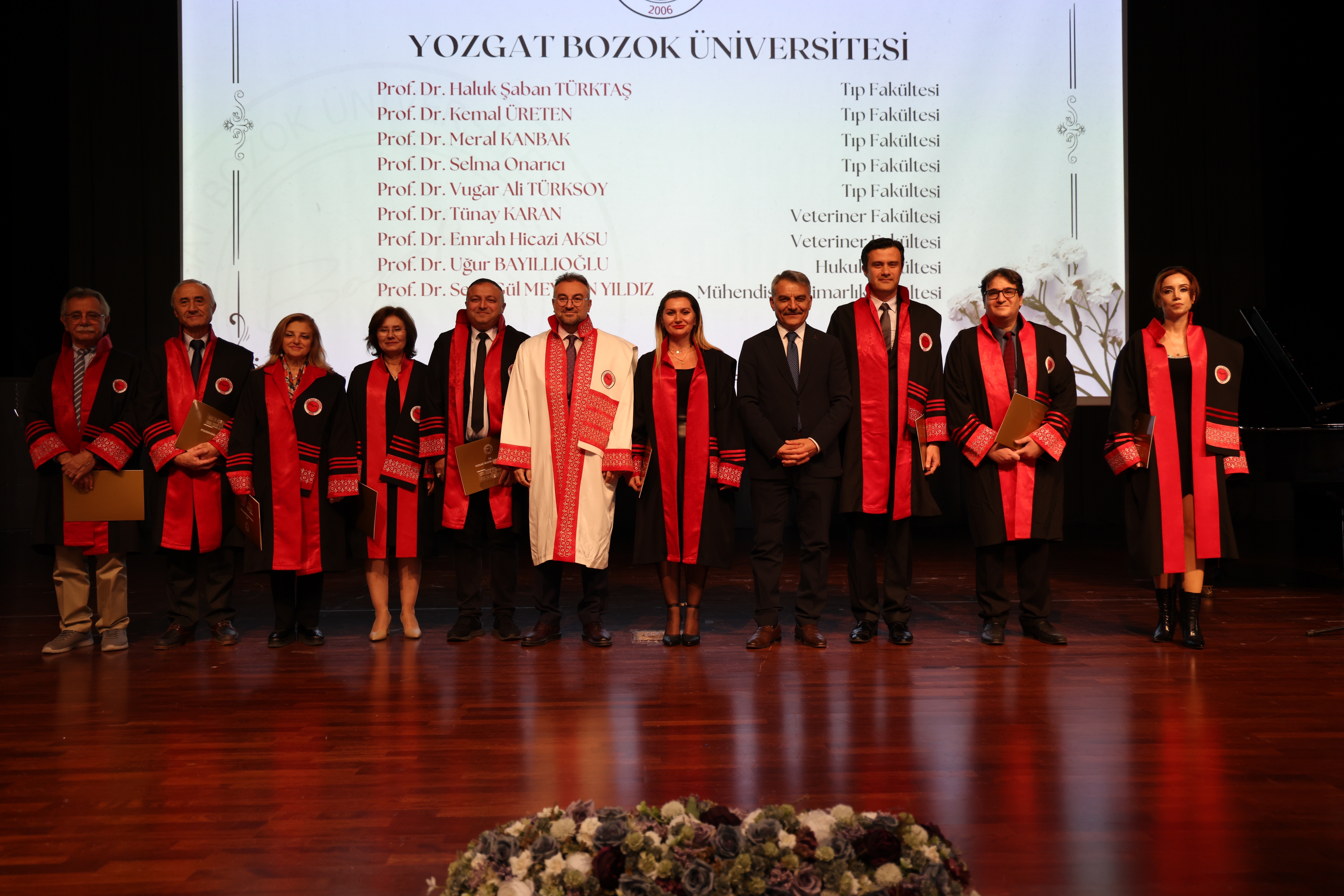 Üniversitemiz Erdoğan Akdağ Kongre ve Kültür Merkezi’nde düzenlenen törene, Yozgat Valisi Mehmet Ali Özkan, Yozgat Milletvekili Süleyman Şahan, Yozgat Belediye Başkanı Dr. Kazım Arslan, Yozgat Cumhuriyet Başsavcısı Enes Serdar Aydoğan,  Üniversitemiz Rektörü Prof. Dr. Evren Yaşar, İl Jandarma Alay Komutanı Cezmi Yalınkılıç, İl Emniyet Müdürü Necmettin Koç, Polis Eğitim Merkezi Müdürü Mustafa Göçer, Üniversitemiz Rektörü Yardımcıları Prof. Dr. Yusuf Hıdır, Prof. Dr. Güngör Yılmaz, Prof. Dr. Tansel Hacıhasanoğlu, Üniversitemiz Genel Sekreteri Doç. Dr. Mustafa Kocakaya, daire müdürleri, siyasi parti ve sivil toplum örgüt temsilcileri ile akademisyenler katıldı.