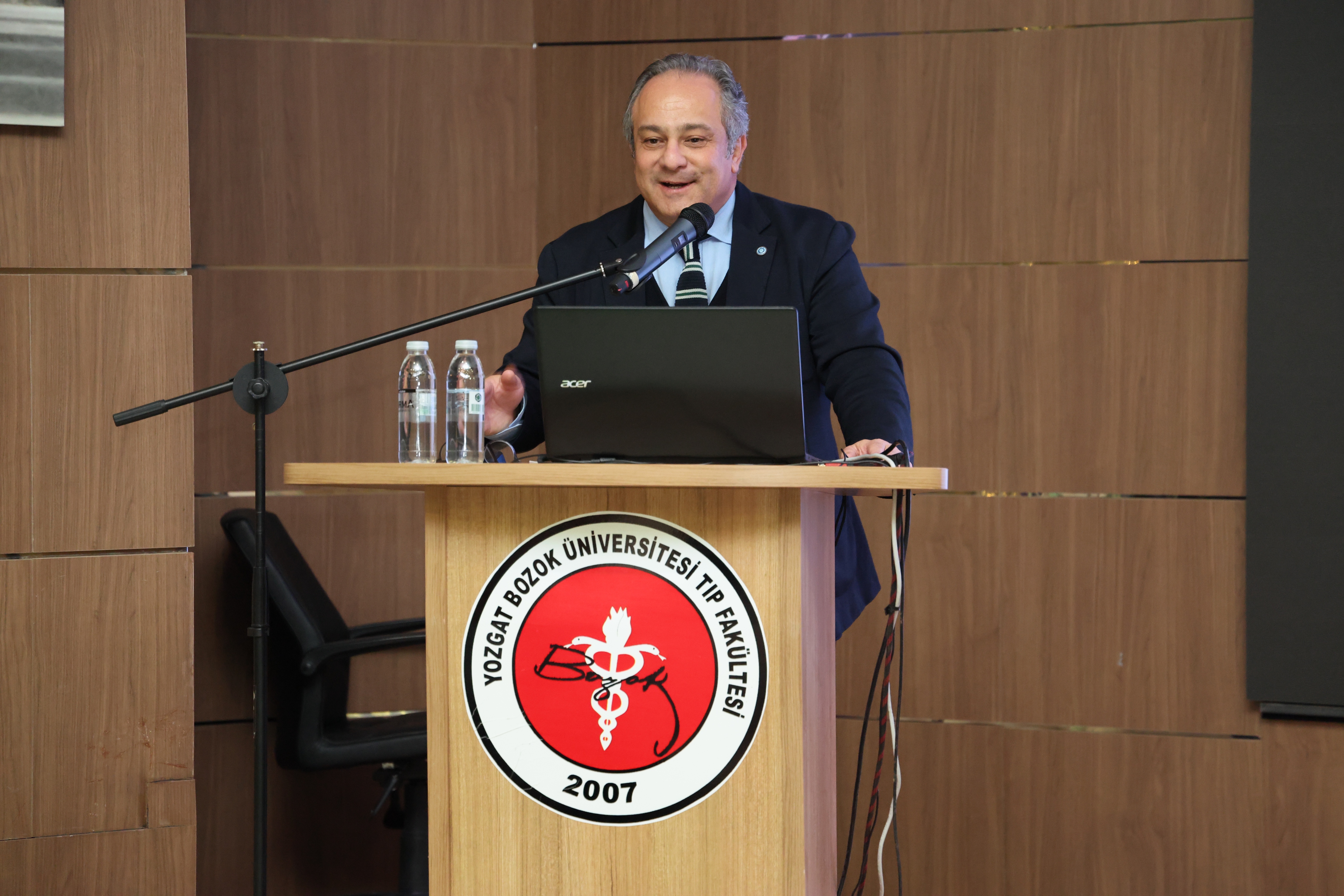 Üniversitemiz Tıp Fakültesi Konferans Salonu’nda gerçekleştirilen programa, Üniversitemiz Rektörü Prof. Dr. Evren Yaşar, Rektör Yardımcısı Prof. Dr. Yusuf Hıdır, Üniversitemiz Tıp Fakültesi Dekanı Prof. Dr. Mustafa Fatih Erkoç, Üniversitemiz Genel Sekreteri Doç. Dr. Mustafa Kocakaya, akademisyenler ve öğrenciler katıldı.