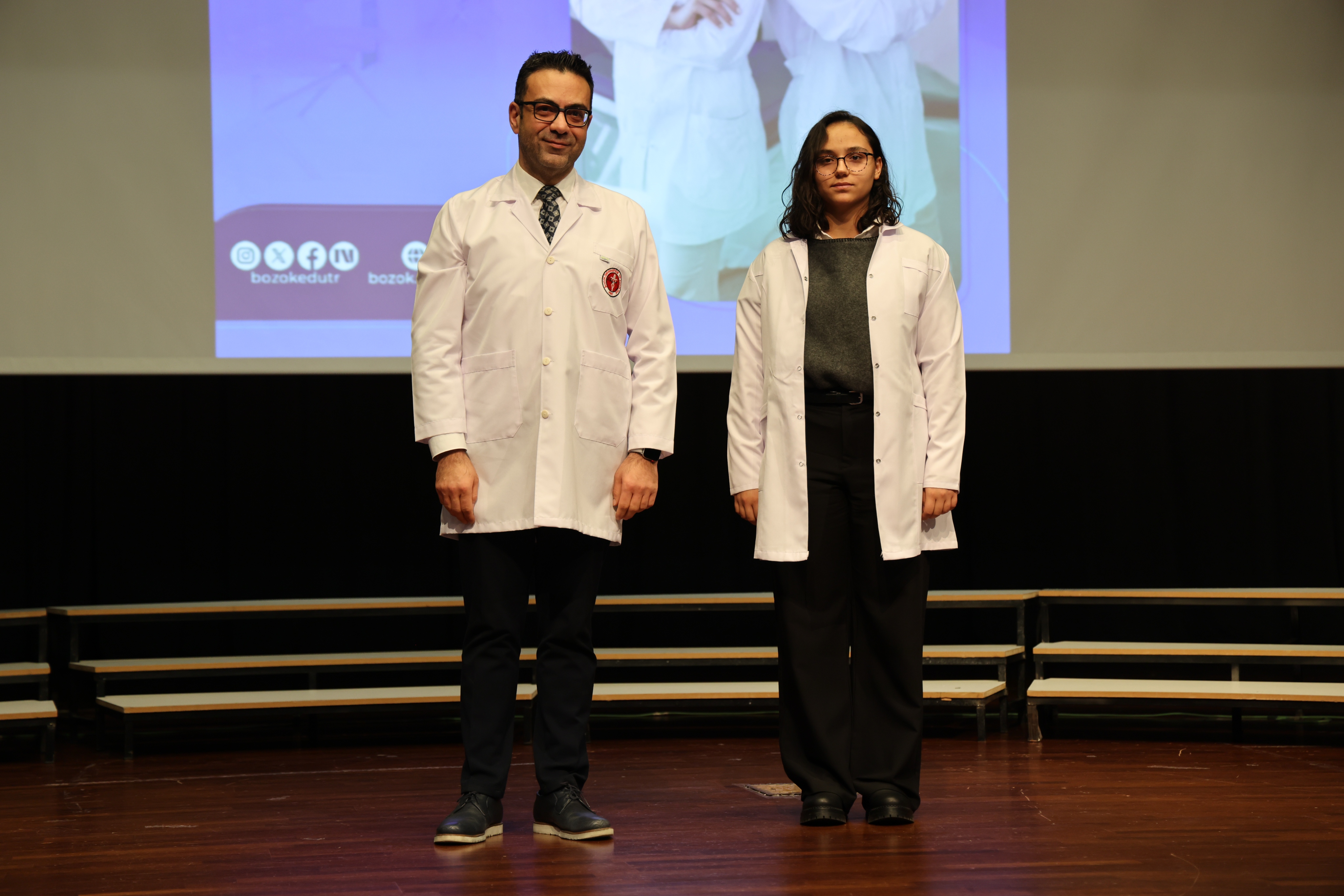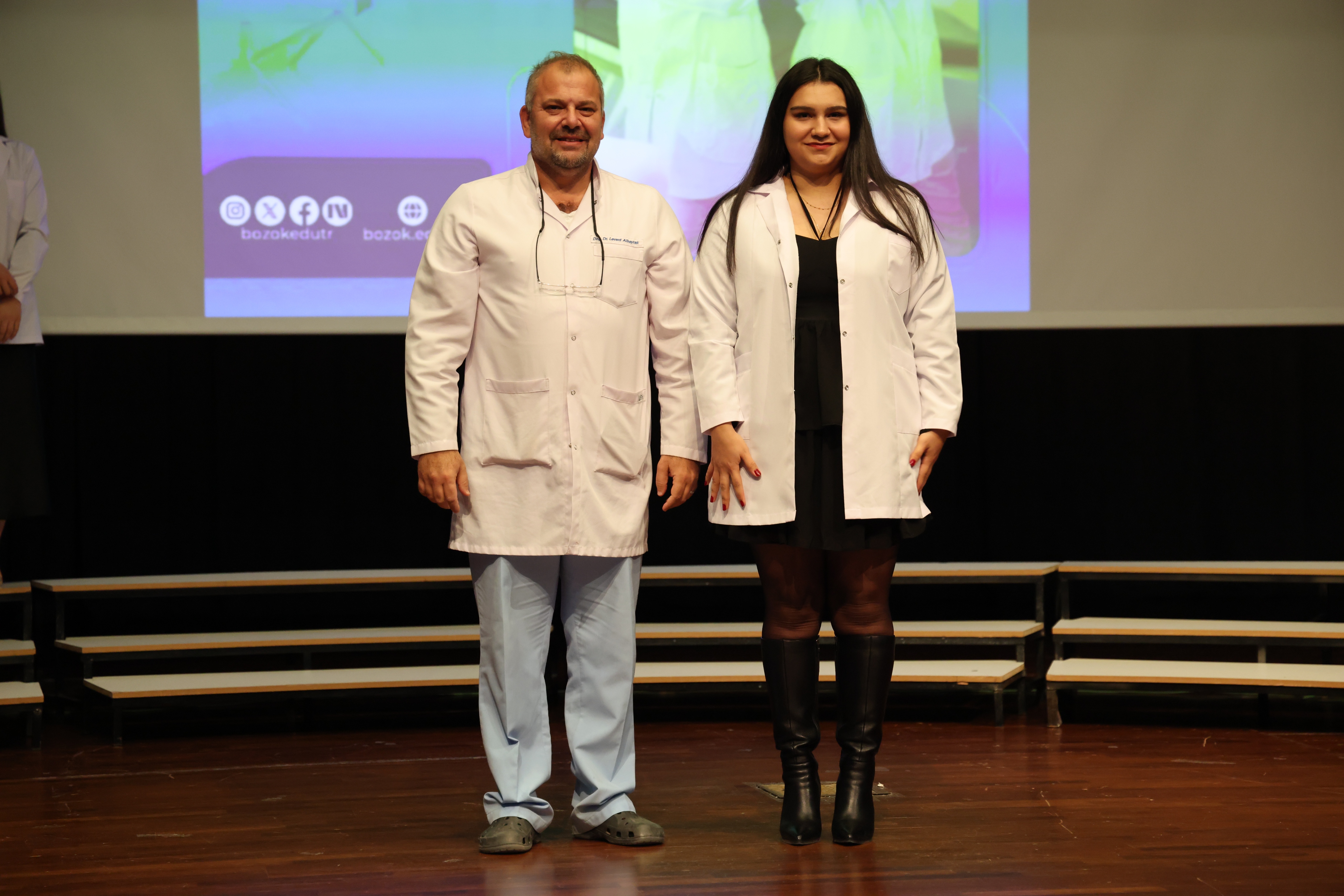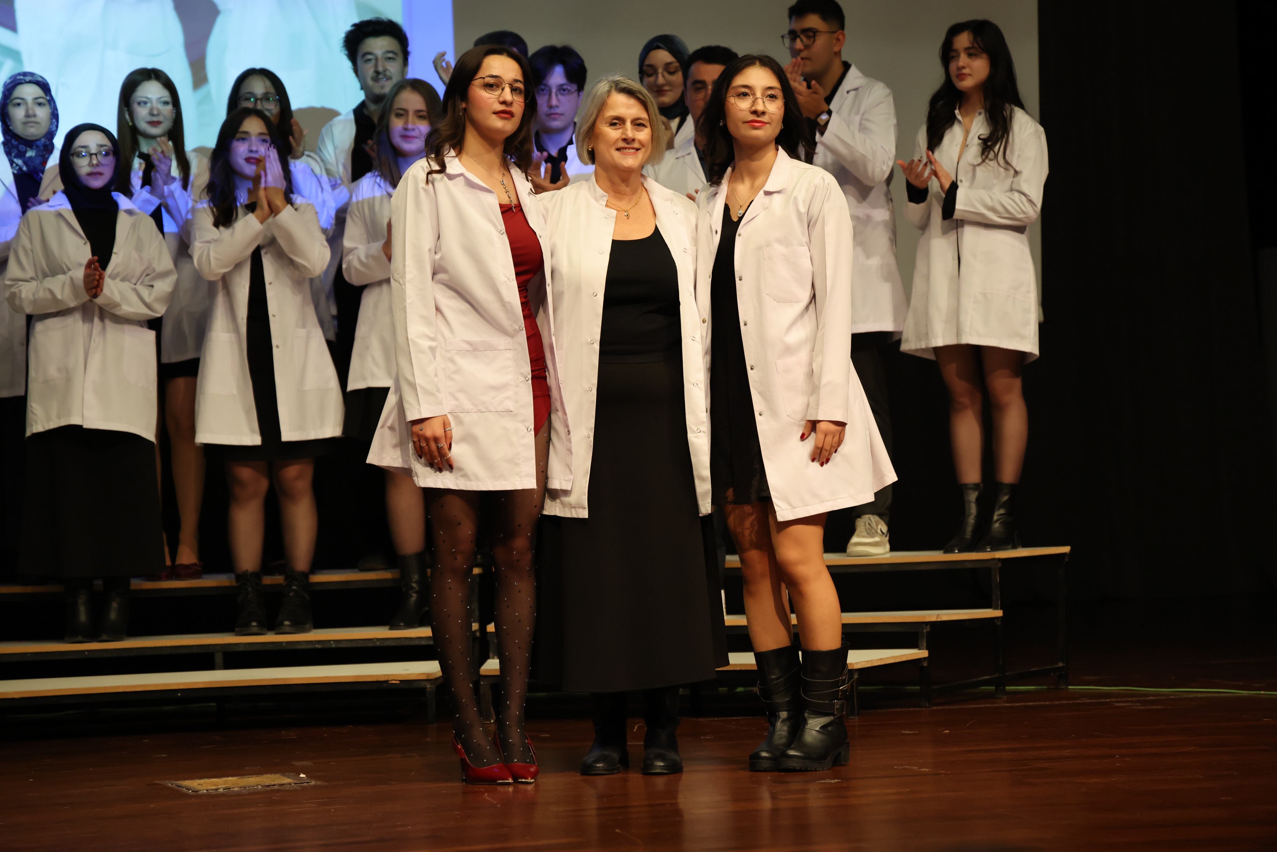 2025-2026 eğitim-öğretim yılında üniversitemiz Diş Hekimliği Fakültesi’ne başlayan 57 hekim adayı için “Beyaz Önlük Giyme Töreni” düzenlendi. Törende, hekimliğe ilk adımlarını atan Diş Hekimliği Fakültesi birinci sınıf öğrencileri, mesleki yaşamlarının simgesi olan beyaz önlüklerini giymenin heyecan ve gururunu yaşadı.