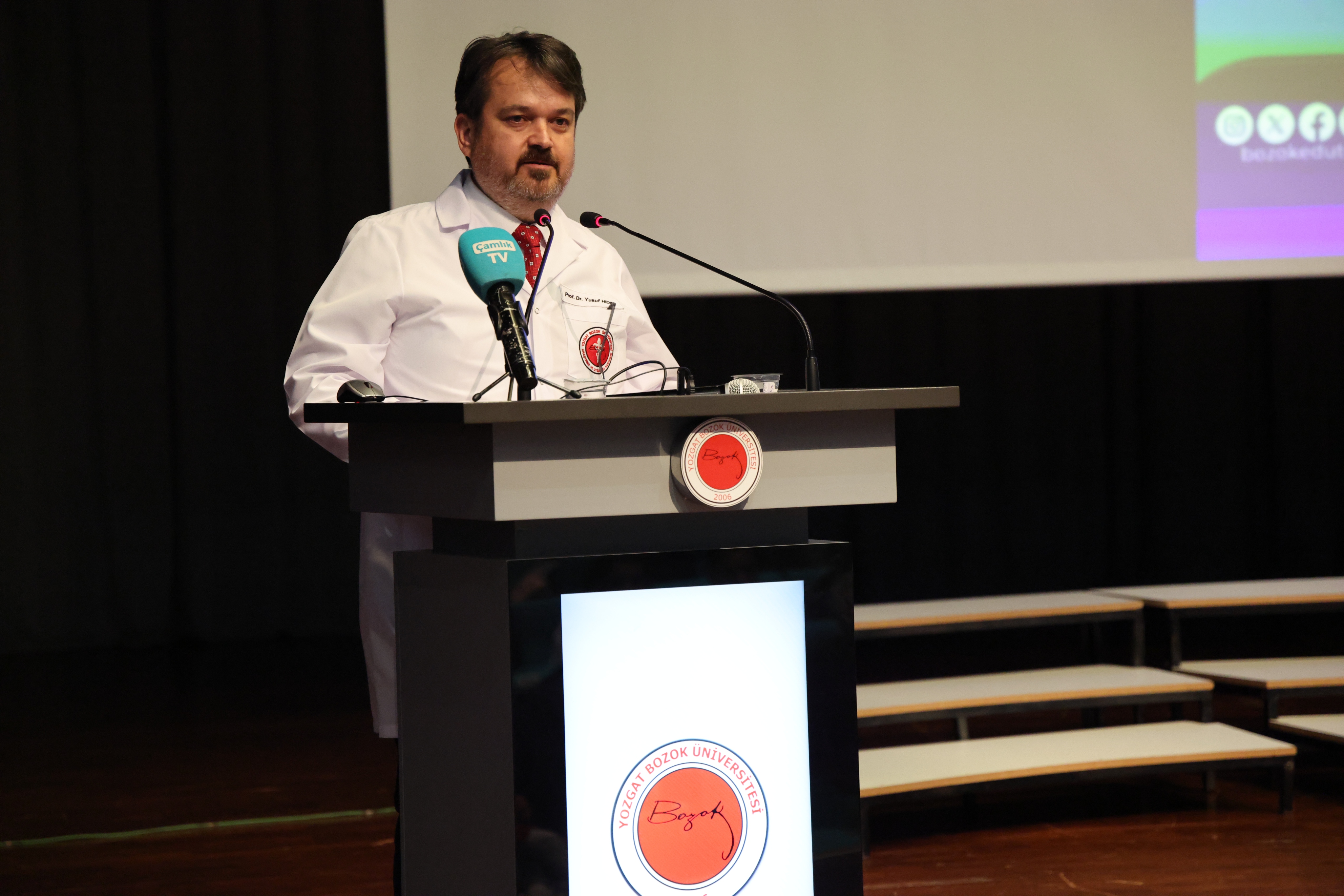 Saygı Duruşu ve İstiklal Marşı’nın okunmasıyla başlayan programın açılış konuşmasını Üniversitemiz Rektör Yardımcısı ve Diş Hekimliği Fakültesi Dekanı Prof. Dr. Yusuf Hıdır yaptı. Diş hekimi adaylarının giydiği beyaz önlüğün saflığı, dürüstlüğü, saygınlığı ve umudu simgelediğini belirten Prof. Dr. Yusuf Hıdır, modern diş hekimliğinin, bilimsel disiplinlerin en hızlı ilerleyen alanlarından biri olduğunu söyledi. Prof. Dr. Yusuf Hıdır konuşmasının devamında: “ Öğrenim ve meslek hayatınız boyunca çok yorulduğunuz, zorlandığınız anlar elbette yaşanacaktır. Dersler yoğun, pratik uygulamalar zorlu olacaktır. Ancak unutmayın ki, bir hastanın size minnetle gülümsediği an, yaşadığınız tüm zorlukları unutturacaktır. En büyük şifa dağıtıcı elinizdeki cihazlar değil, bilginiz, tecrübeniz, vicdanınız ve şefkatiniz olacaktır. Öğrenim yolculuğunuz sırasında, fakültemizdeki değerli öğretim elemanları, bilgi birikimlerini ve deneyimlerini büyük bir öz veriyle sizlere aktaracak, her zaman destekçiniz ve yol göstericiniz olacaktır. Bugün giyeceğiniz beyaz önlük, meslek hayatınızın ilk imzasıdır. Bu imzayı, ömrünüz boyunca bilgiyle, vicdanla ve etik değerlerle koruyacağınıza olan inancımız sonsuzdur.” dedi.