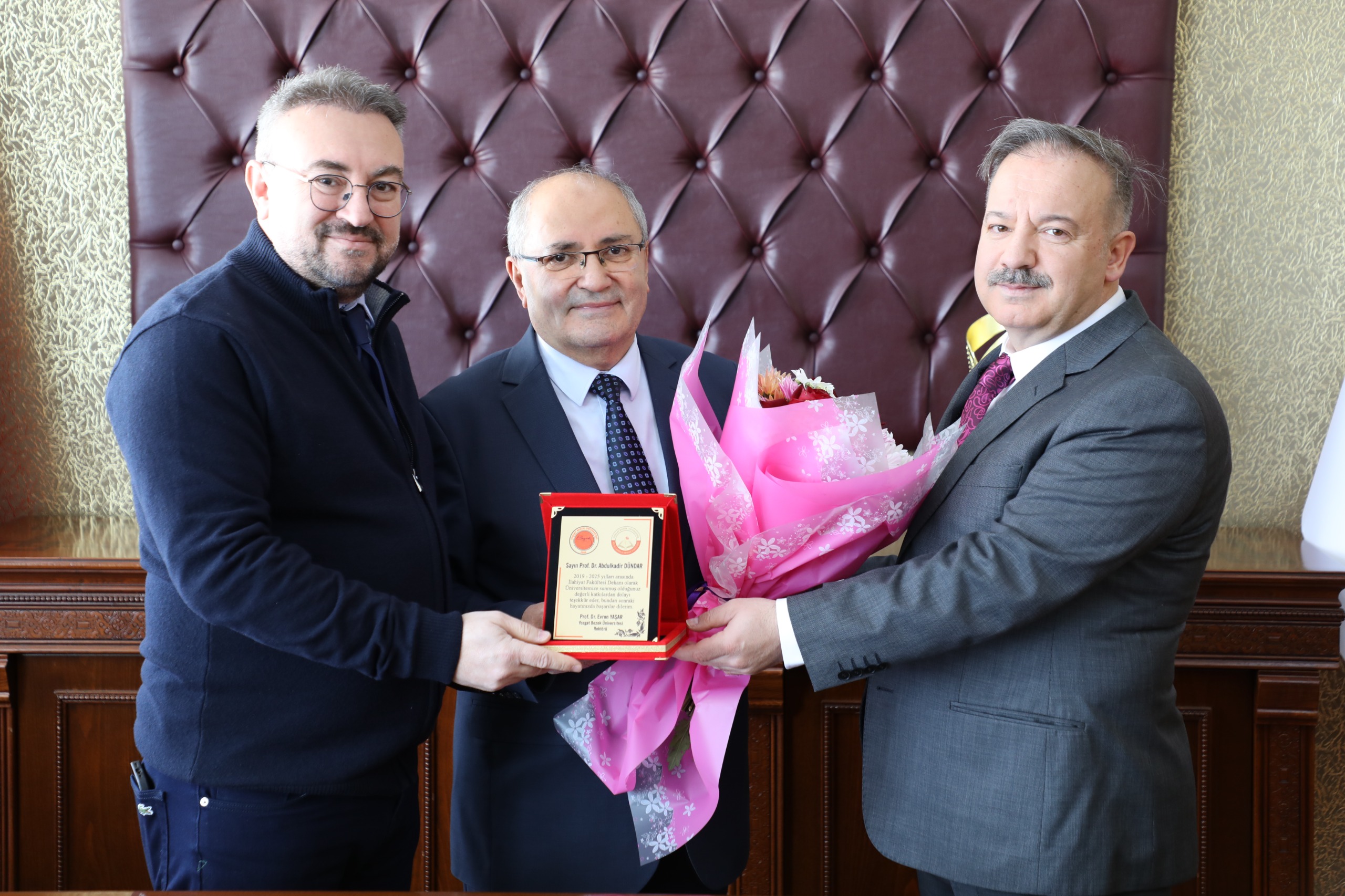 Törende konuşan Üniversitemiz Rektörü Prof. Dr. Evren Yaşar, Prof. Dr. Abdulkadir Dündar’ın görev süresi boyunca fakültenin akademik ve idari gelişimine önemli katkılar sunduğunu ifade ederek, görev süresi boyunca fakültenin kurumsallaşmasına, akademik başarılarının artmasına ve eğitim-öğretim kalitesinin yükselmesine önemli katkılar sağladığını belirtti. Rektörümüz Prof. Dr. Evren Yaşar, Prof. Dr. Dündar’a üniversitemiz adına teşekkürlerini iletti.