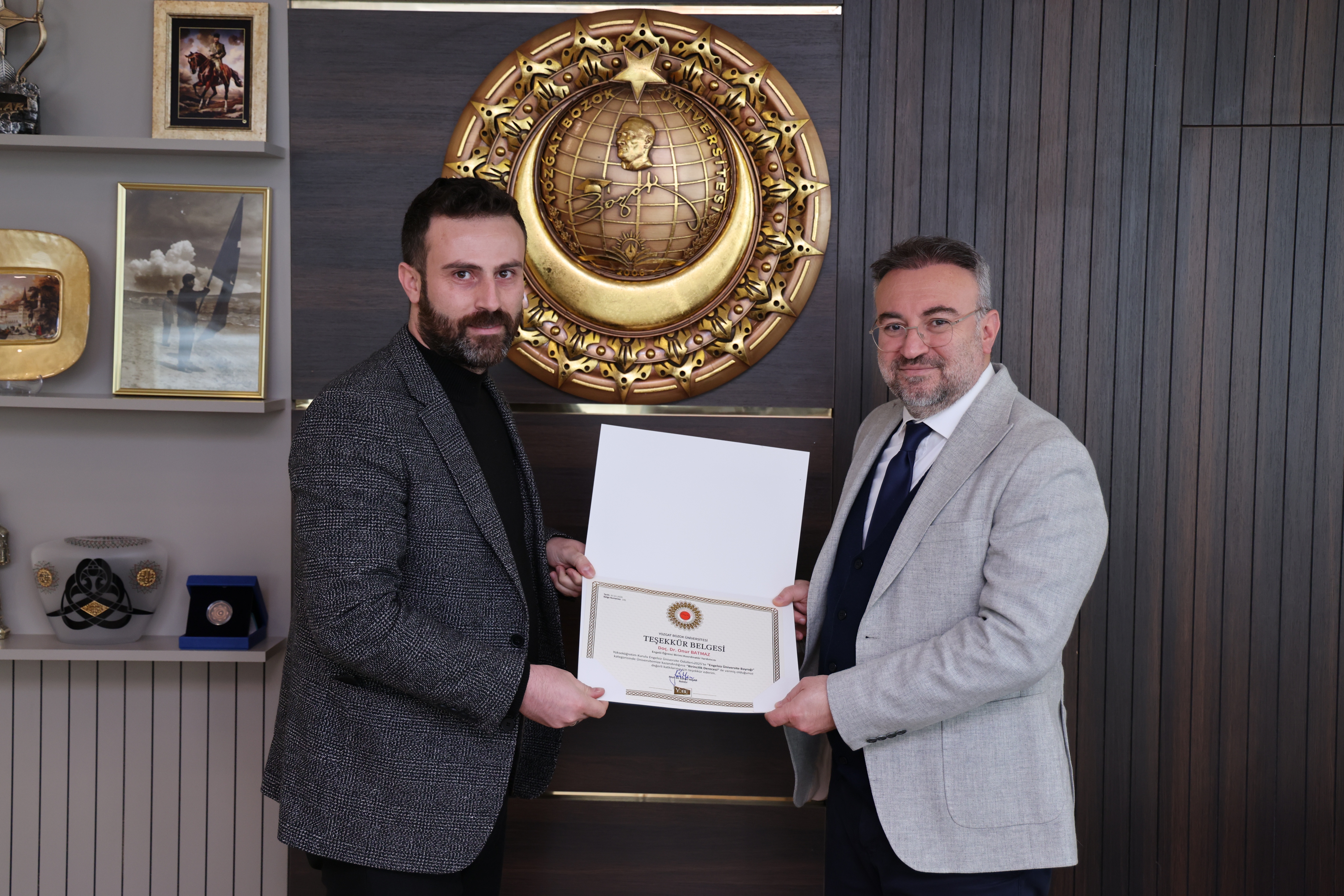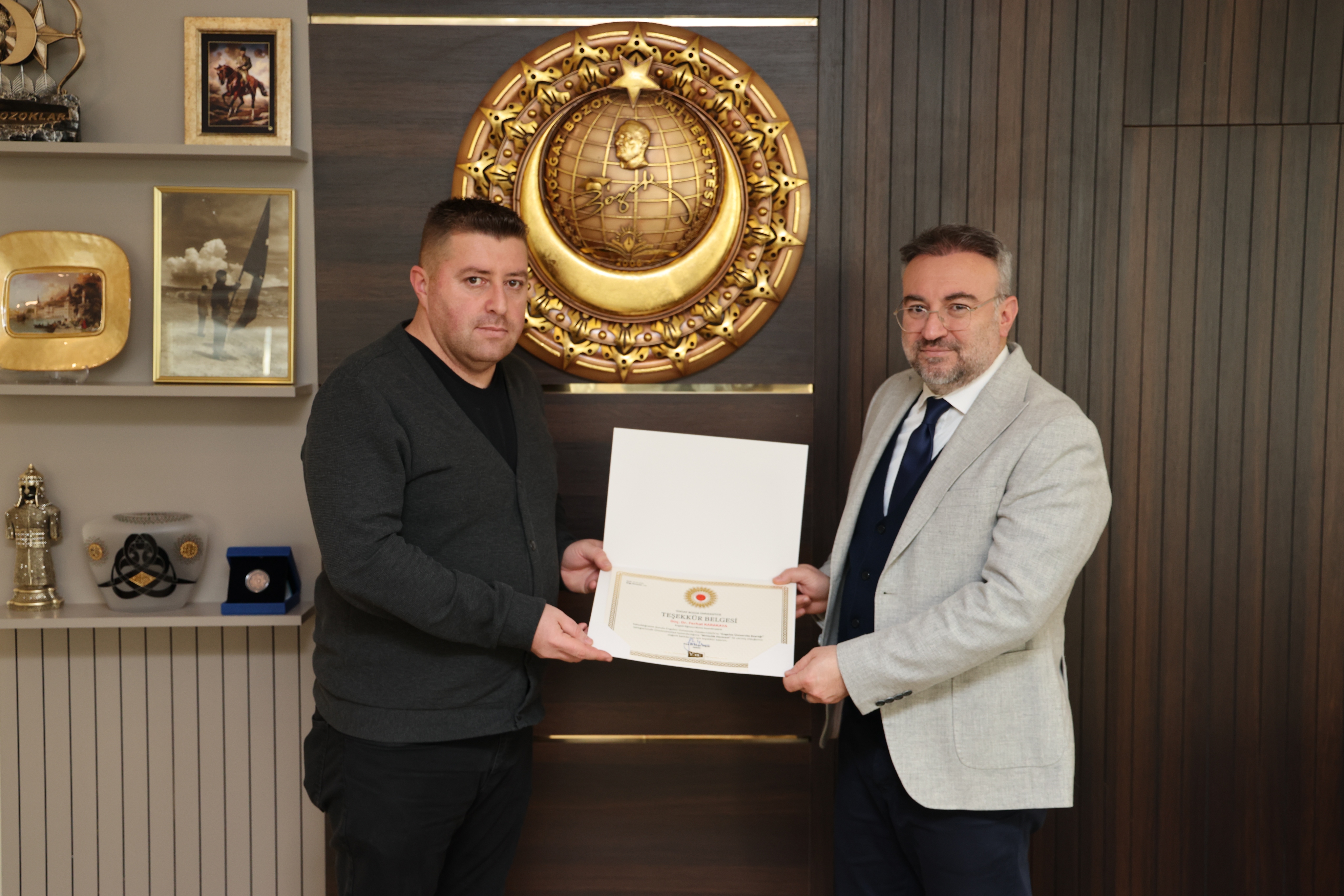 Üniversitemiz Rektörü Prof. Dr. Evren Yaşar, erişilebilirlik alanında yürütülen çalışmalar sonucunda üniversitemizin “Engelsiz Üniversite Bayrağı” kategorisinde Türkiye genelinde toplam 12 bayrak alarak Türkiye birincisi olmasında emeği geçen Engelli Öğrenci Birimi Koordinatörü Doç. Dr. Ferhat Karakaya ile Koordinatör Yardımcıları Prof. Dr. Hatice Baş ve Doç. Dr. Onur Batmaz’a teşekkür belgesi takdim etti.