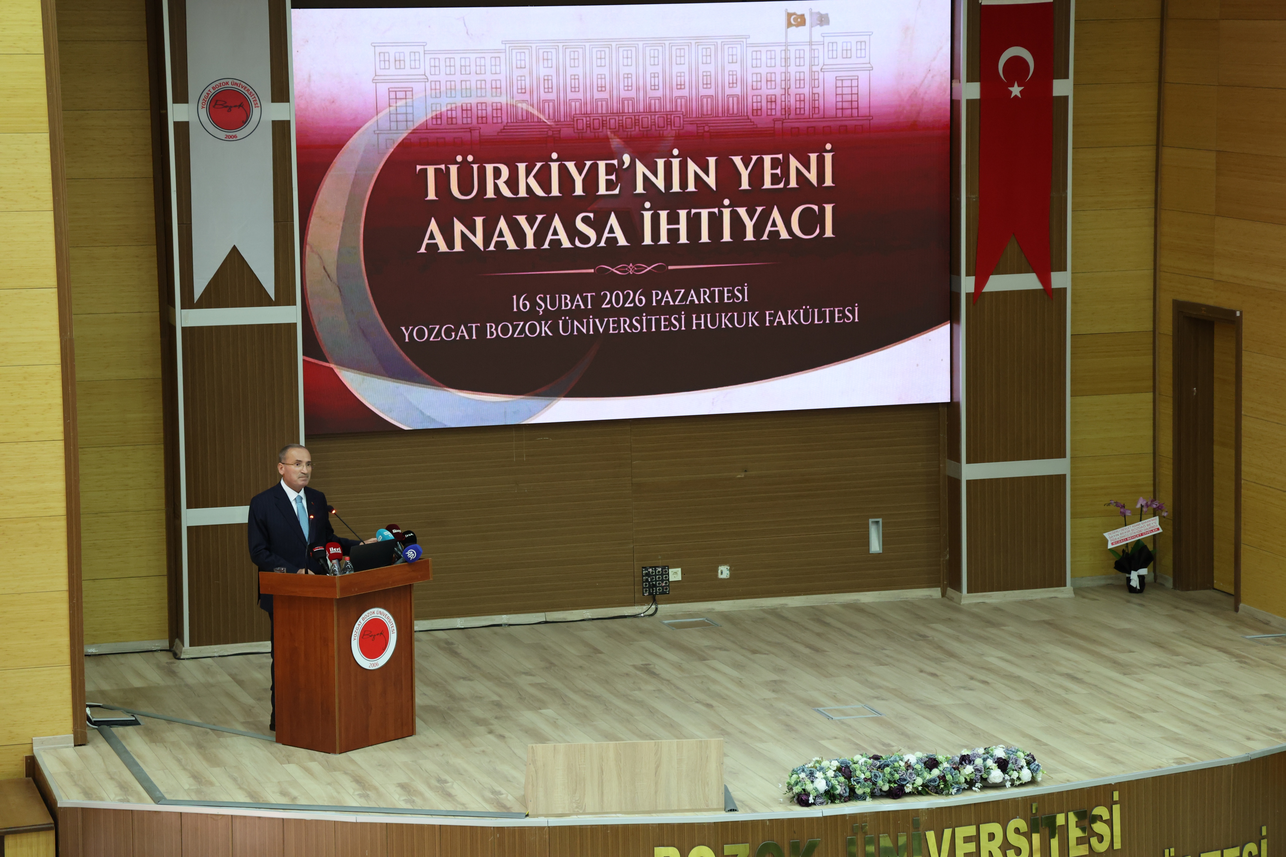 Konferansta konuşan TBMM Başkanvekili Bekir Bozdağ, yeni anayasanın Türkiye’nin değişmez ve değiştirilmesi teklif edilemez ana gündemi olduğunun altını çizerek, Türkiye’de herkesin ve her kesimin yeni anayasa ihtiyacı olduğu konusunda mutabık olduğunu söyledi.