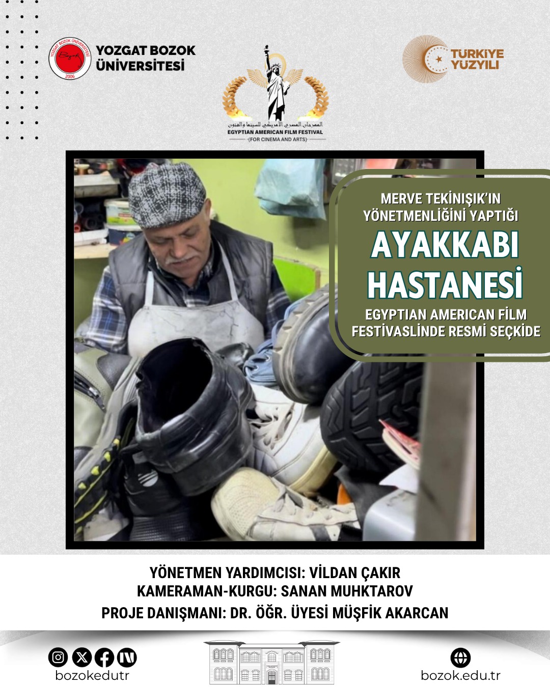 Yönetmenliğini Merve Tekinışık’ın, yönetmen yardımcılığını Vildan Çakır’ın, görüntü yönetmenliğini Sinan Muktarov’un üstlendiği ve proje danışmanlığını Dr. Öğr. Üyesi Müşfik Akarcan’ın yaptığı “Ayakkabı Hastanesi”, kültürel miras, ustalık ve emeği merkezine alan belgesel tarzıyla dikkat çekti. Film, geleneksel zanaatların modern yaşamda kaybolmaya yüz tutan değerini sinematografik bir dille izleyiciye aktarıyor.