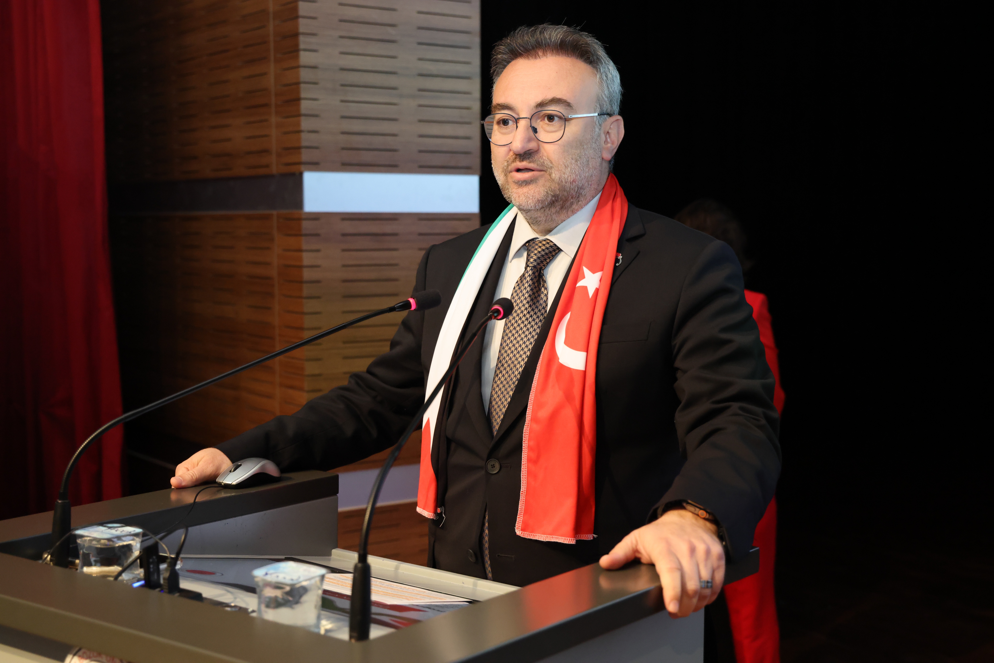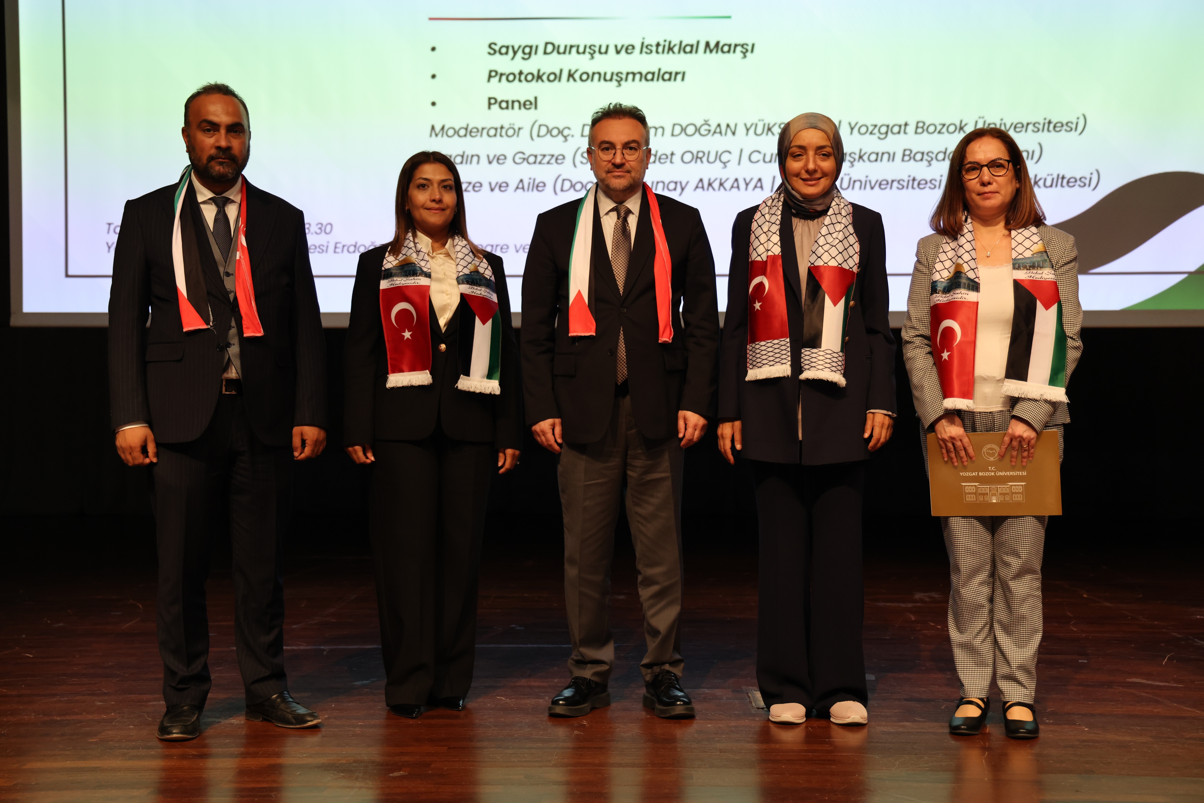 Üniversitemiz Rektörü Prof. Dr. Evren Yaşar da yaptığı konuşmasında üniversitelerin yalnızca bilgi üretmekle değil, aynı zamanda insanlık onurunun savunmakla da yükümlü olduğunu söyledi. Bilimin ancak vicdanla birleştiğinde anlam taşıdığını ifade eden Rektörümüz konuşmasının devamında şunları söyledi: “Bugün burada bilimin, aklın ve vicdanın çatısı altında bir araya gelirken, dünyanın bir köşesinde insanlığın vicdanını derinden yaralayan bir trajedinin tanıklarıyız. Gazze’de, her gün yeniden yazılan bir insanlık dramı yaşanıyor. Gökyüzü, çocuk çığlıklarıyla yankılanıyor; enkaz altında kalan bir oyuncak, bir annenin son dokunuşuyla sönmüş bir umut, insanlığın sessiz tanığına dönüşüyor. Bu çağda, bilgiyle, teknolojiyle, medeniyetle övünen insanlık; çocukların süt bulamadığı, annelerin evlatlarının cansız bedenine sarıldığı bir dünyanın utancını yaşıyor. En temel insani değer olan yaşama hakkı ayaklar altına alınırken, yardım eli uzatmaya çalışan insani kuruluşlar engelleniyor, vicdanın sesi susturulmak isteniyor. Sessiz kalmak, bu zulme ortak olmak demektir. Bugün, Gazze’de her bir yıkık duvar, insanlığın ahlakî çöküşünü yansıtıyor; ama aynı zamanda bir vicdan çağrısı da yapıyor bizlere: “Susma!” O nedenle biz, Yozgat Bozok Üniversitesi ve Bartın Üniversitesi olarak, çocukların öldürülmediği, annelerin ağlamadığı, adaletin ve merhametin yeniden hüküm sürdüğü bir dünya için söz veriyoruz. Bilimin, insanlığın ve vicdanın sesi olarak, mazlumun yanında olmayı sürdüreceğiz. Gazze’de yaşamını yitiren tüm masumları rahmetle, insanlığın kaybolmayan vicdanını ise umutla anıyorum. Unutmayalım: Bir çocuğun gözyaşı, bütün dünyanın susmasını gerektirecek kadar büyük bir hakikattir”.