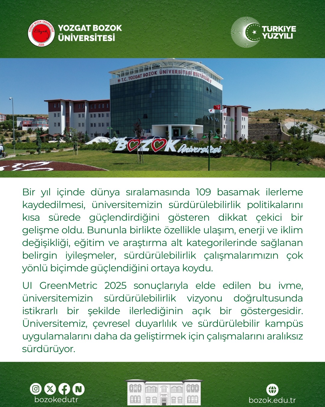 Yozgat Bozok Üniversitesi UI Greenmetric 2025’te Güçlü Bir Yükseliş Yakaladı!