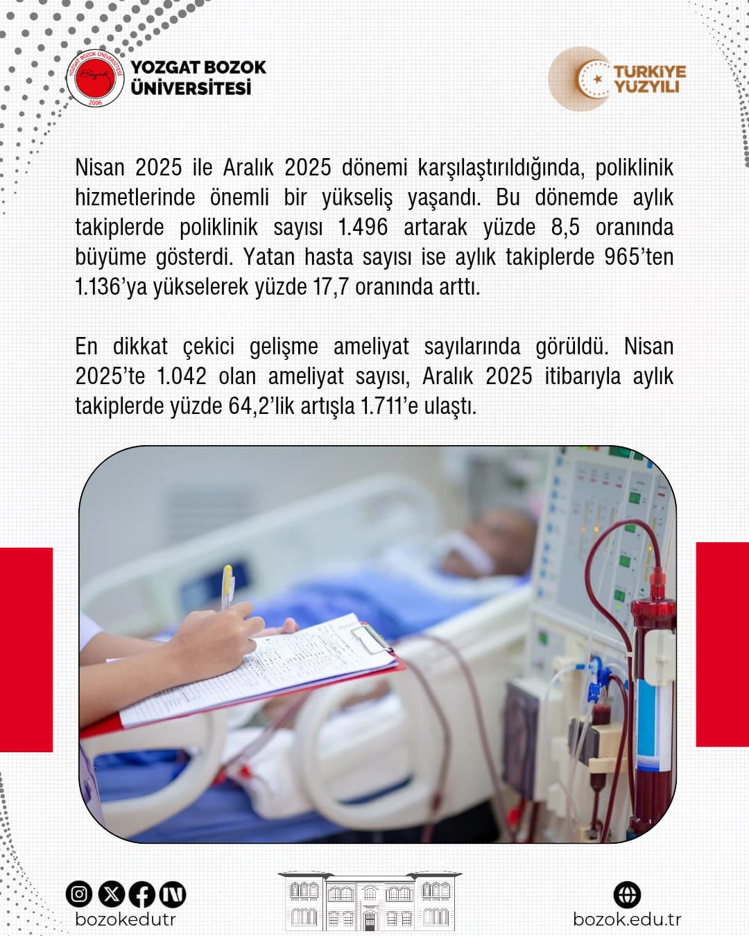 En dikkat çekici gelişme ameliyat sayılarında görüldü. Nisan 2025’te 1.042 olan ameliyat sayısı, Aralık 2025 itibarıyla aylık takiplerde yüzde 64,2’lik artışla 1.711’e ulaştı.