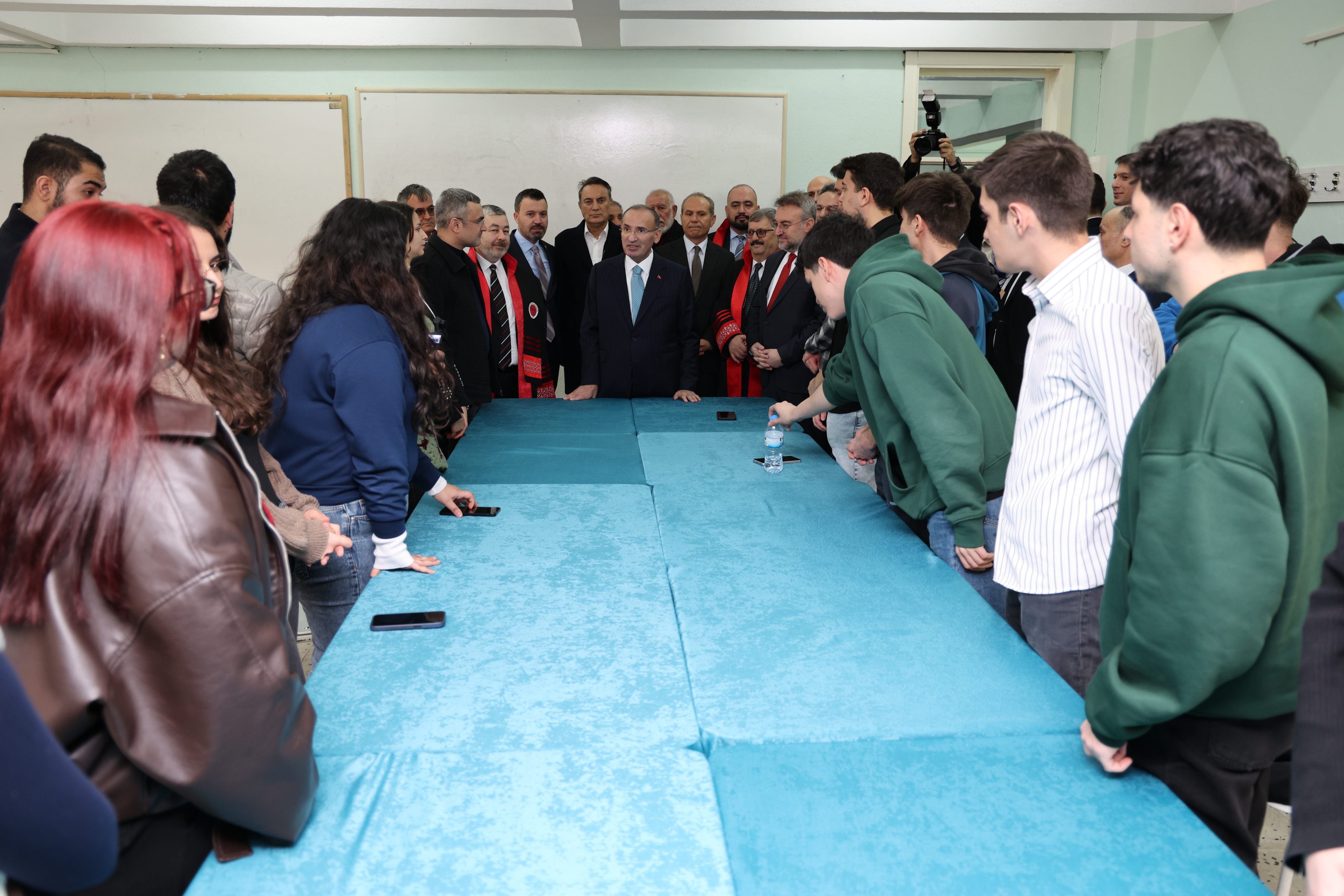 Hukuk Fakültesi Kütüphanesi ile Uygulama Mahkeme Salonu’nda incelemelerde bulunan Türkiye Büyük Millet Meclisi (TBMM) Başkanvekili Bekir Bozdağ, Üniversitemiz Hukuk Fakültesi öğrencileriyle bir araya gelerek sohbet etti. Öğrencilerin sorularını yanıtlayan Bozdağ, mesleki deneyimlerini paylaştı ve genç hukukçulara tavsiyelerde bulundu.
