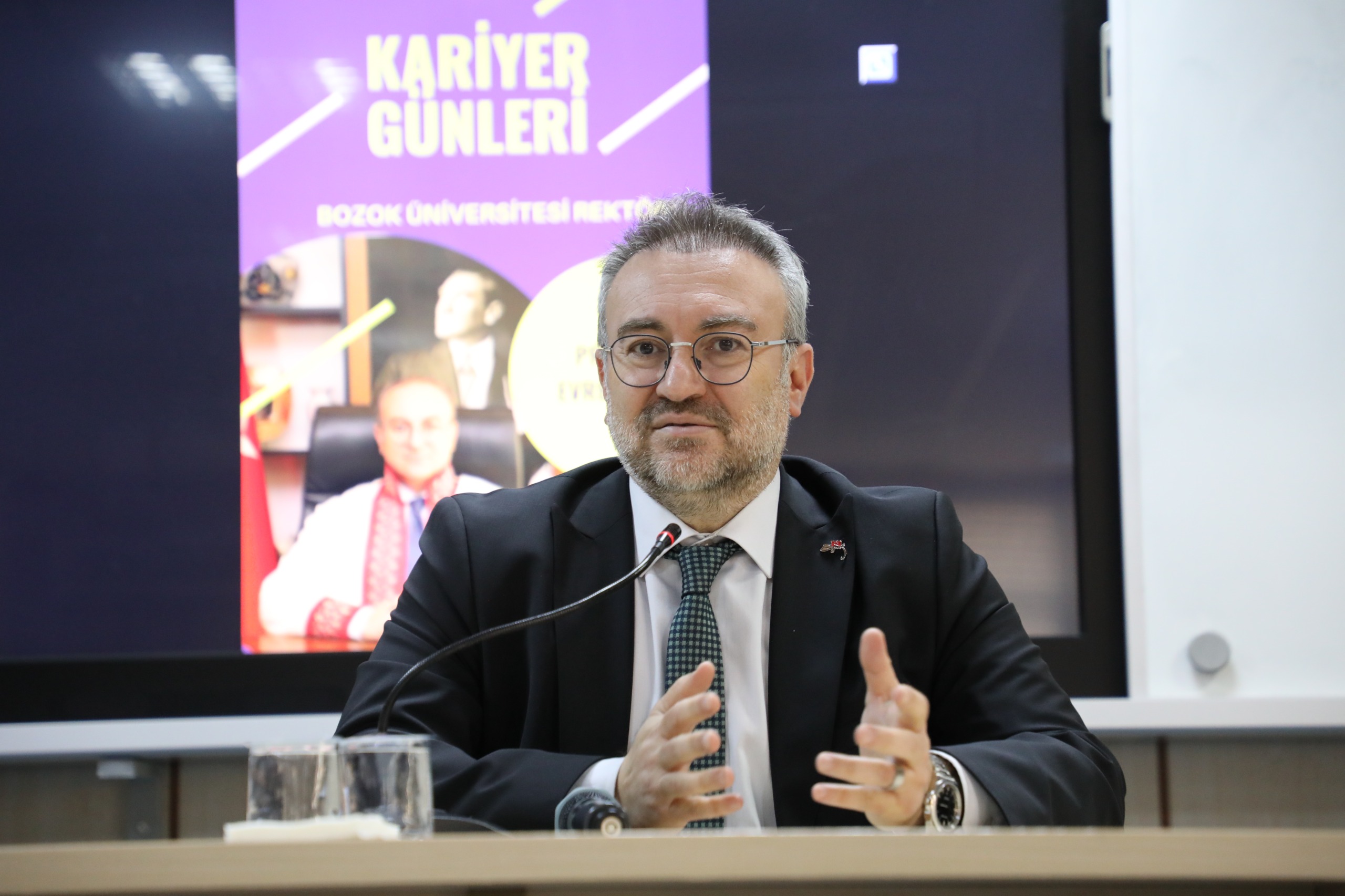 Öğrencilere üniversite seçimi, meslek tercihi, yeteneklerini keşfetme ve kişisel gelişimlerine yatırım yapma konularında tavsiyelerde bulunan Rektörümüz, iletişim becerilerinin ve doğru network kurmanın kariyer gelişimindeki önemine de değindi. Üniversitemiz Rektörü Prof. Dr. Evren Yaşar, günümüz dünyasında akademik bilginin tek başına yeterli olmadığını; iletişim kurabilen, bağlantı geliştirebilen ve kendini doğru ifade eden gençlerin mesleki hayatta daha avantajlı olacağının altını çizdi.