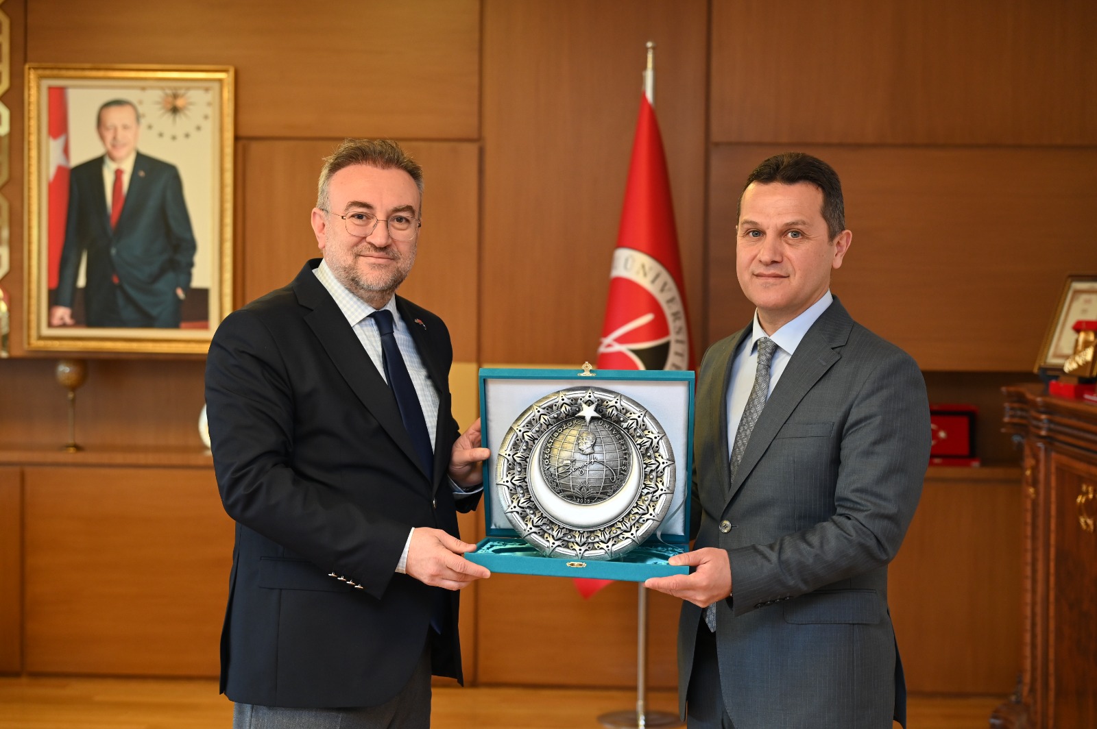 Rektörlük makamında gerçekleşen ziyarette iki üniversite arasında yapılabilecek iş birlikleri görüşüldü.