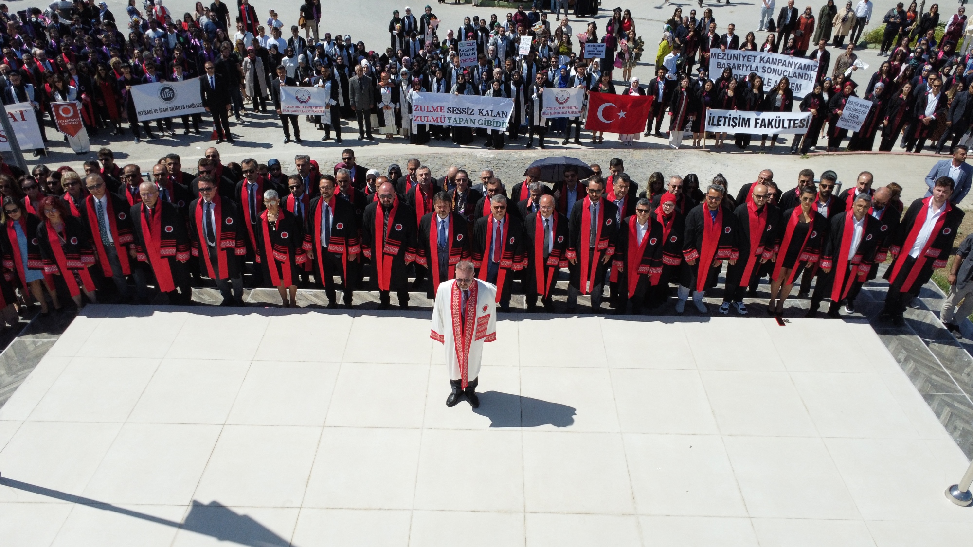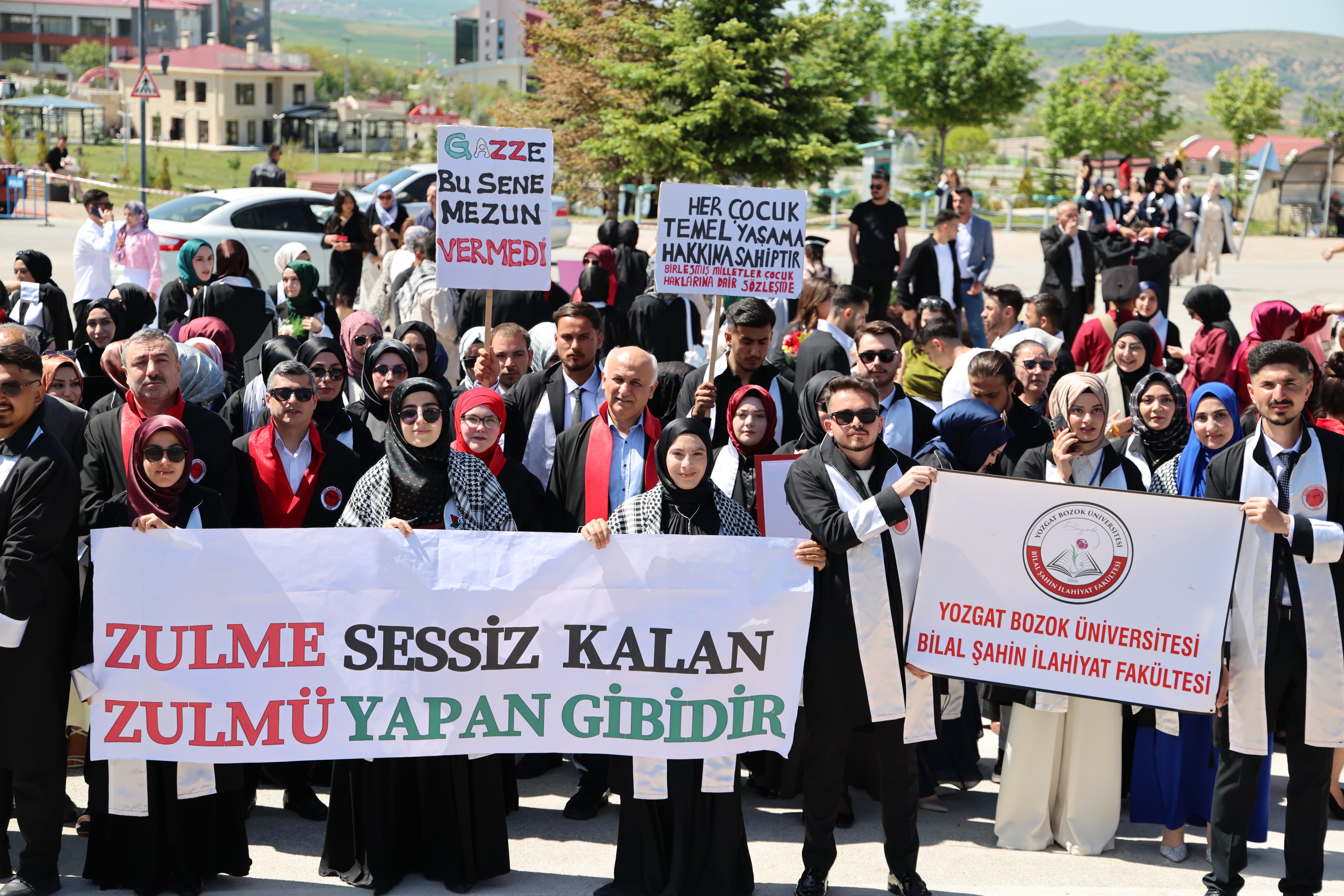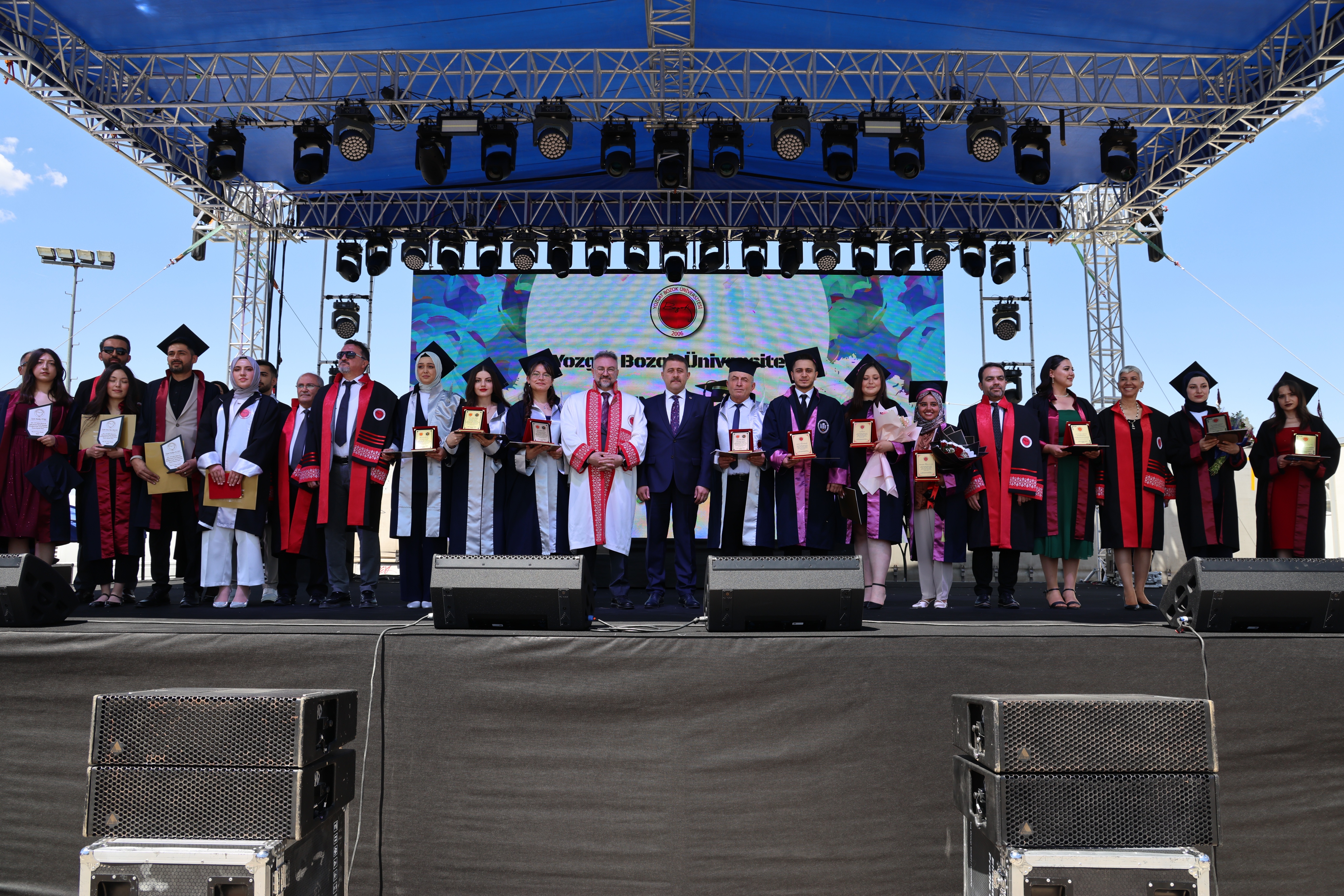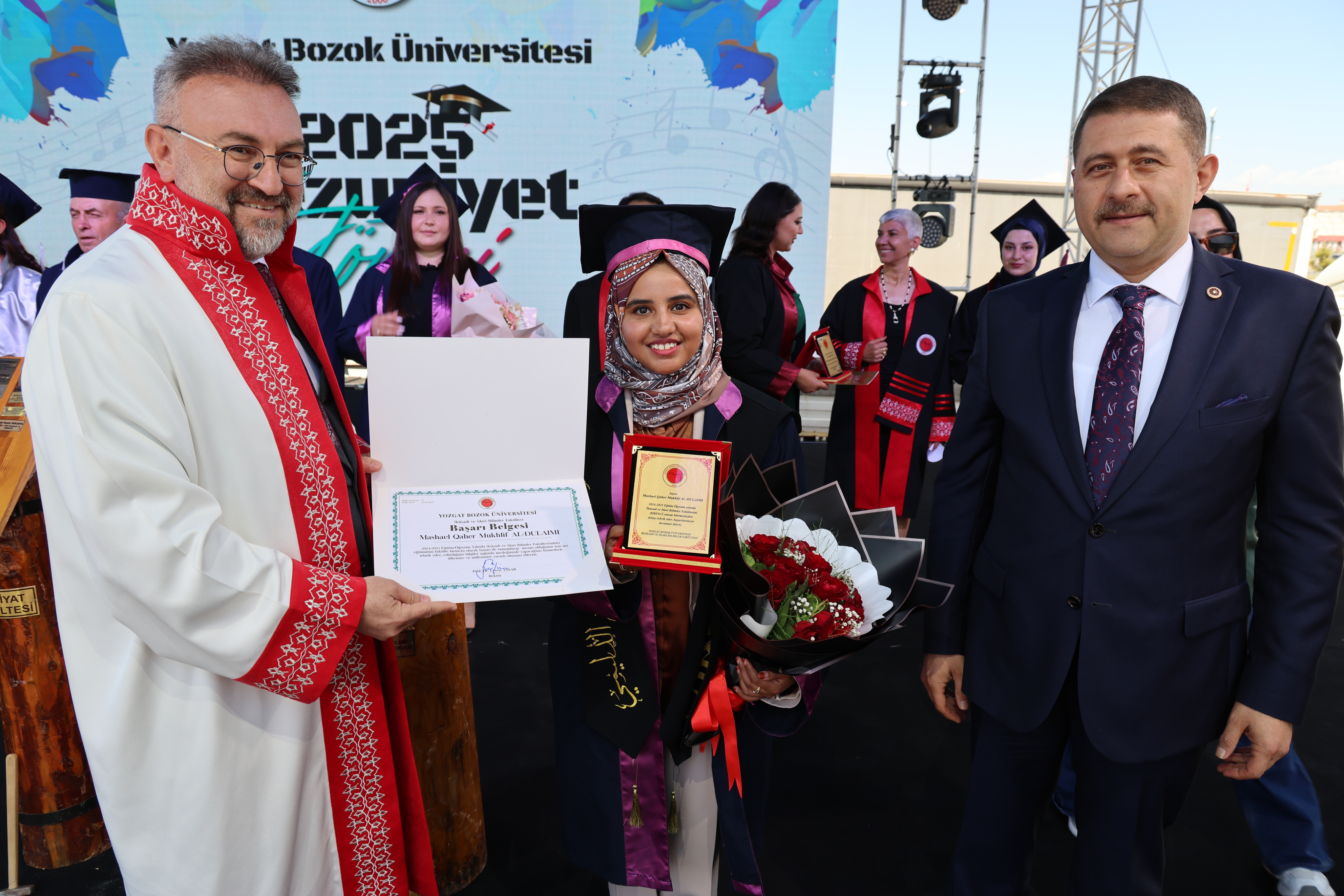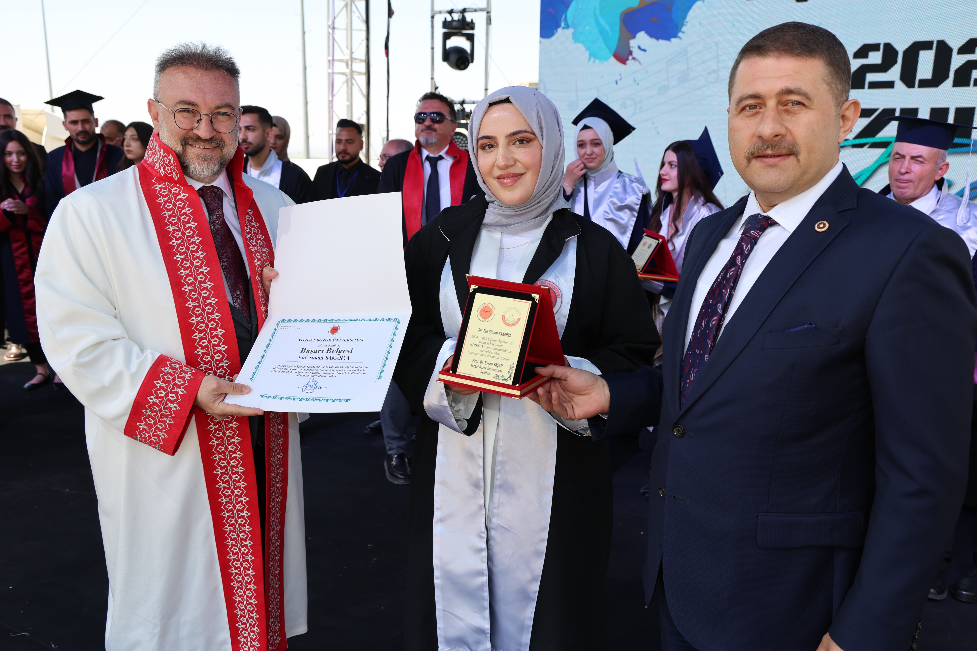 Törende, fakülte birincileri yaş kütüklerine isim plakalarını çaktı. Dereceye giren öğrencilerin mezuniyet diplomaları ve plaketleri Yozgat Milletvekili İbrahim Ethem Sedef ve Üniversitemiz Rektörü Prof. Dr. Evren Yaşar tarafından verildi.