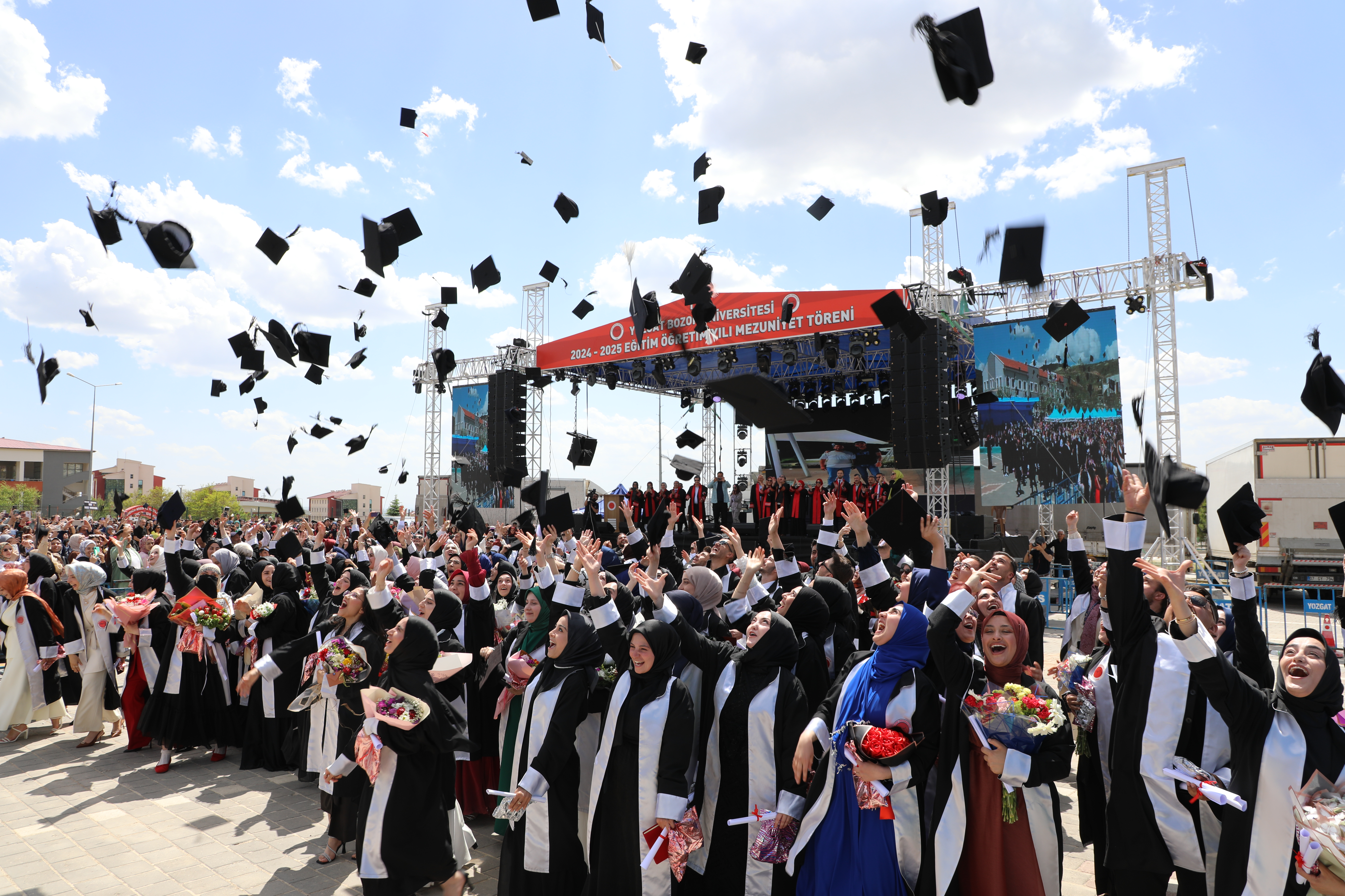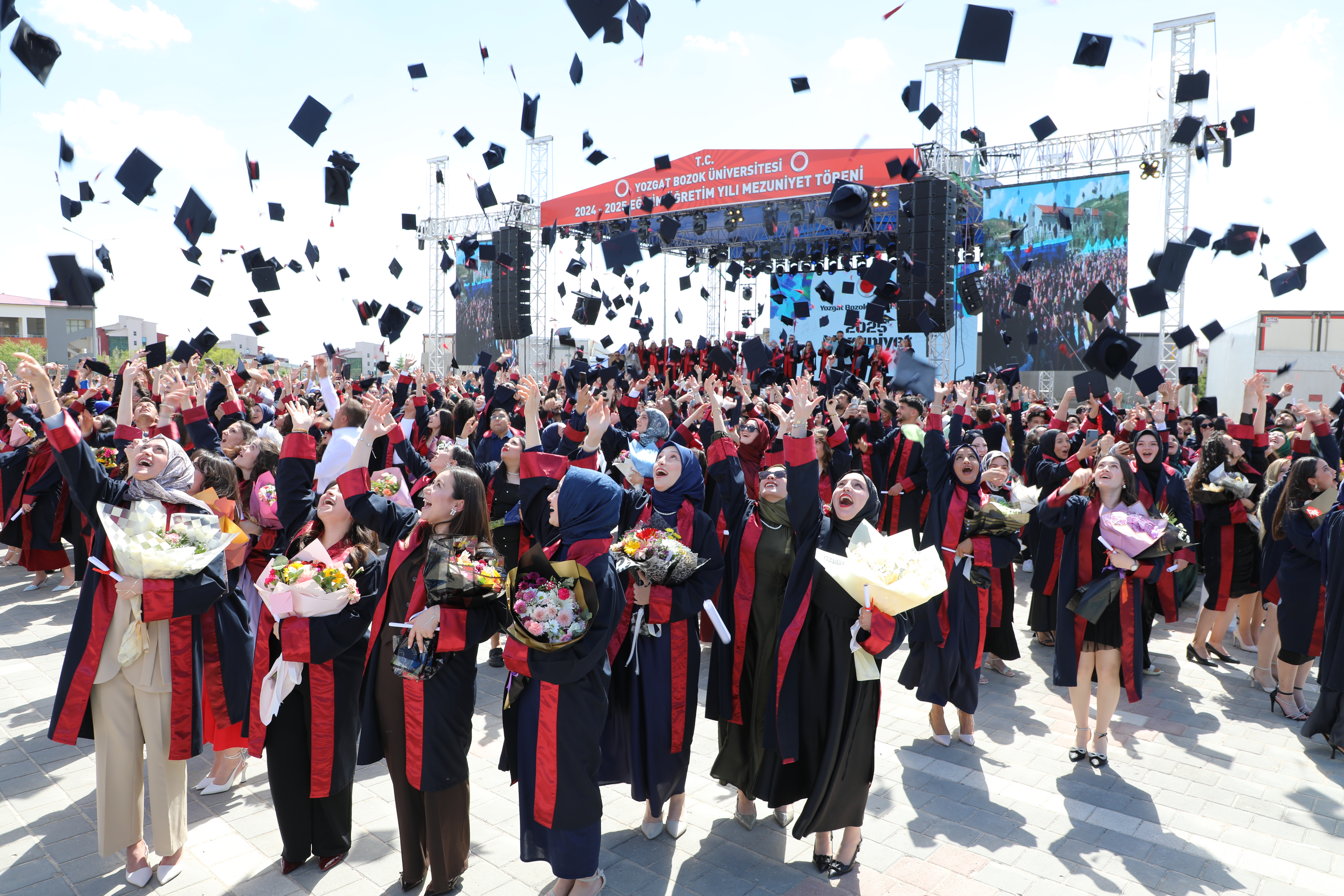 Üniversitemiz 2024-2025 akademik yılı lisans ve ön lisans eğitimini başarıyla tamamlayan Fen Edebiyat Fakültesi, Sağlık Hizmetleri Meslek Yüksekokulu, İlahiyat Fakültesi, İktisadi ve İdari Bilimler Fakültesi ve İletişim Fakültesi öğrencileri düzenlenen törenle mezuniyet coşkusu yaşadı.