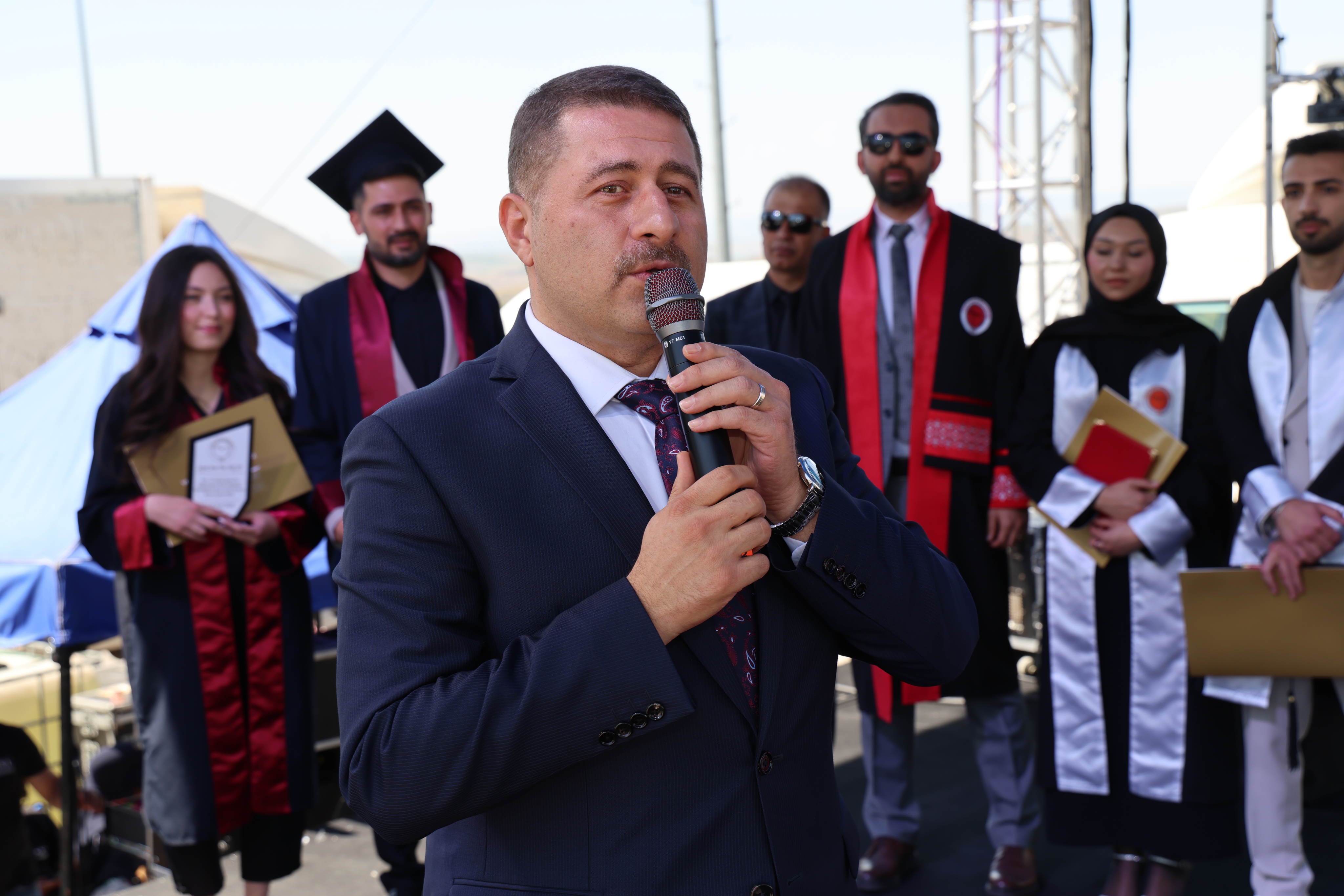 Konuşmasının sonunda öğrencilere seslenen Rektörümüz: “Sevgili gençler, bilimin, inancın, ekonominin, iletişimin ve sağlığın iç içe geçtiği bu çağda, sizlere düşen en önemli görev; farklı disiplinleri anlamaya açık, eleştirel düşünen ve insanlığın ortak yararını önceleyen bireyler olmanızdır. Sizler bu üniversitenin evladı olarak; vicdanlı kararlar verecek kamu yöneticileri, sözüyle toplumu aydınlatacak iletişimciler, etik değerlere bağlı sağlık profesyonelleri, bilimsel düşüncenin izinde ilerleyen araştırmacılar ve maneviyatı bilgiyle buluşturan ilahiyatçılar olacaksınız. Unutmayın; mezuniyetiniz, bir kapının kapanması değil, binlercesinin açılmasıdır. Güzel bir dünyayı inşa etme hayaliniz hiç sönmesin. Yolunuz açık, başarılarınız daim, yüreğiniz her zaman insana dair olsun” dedi.