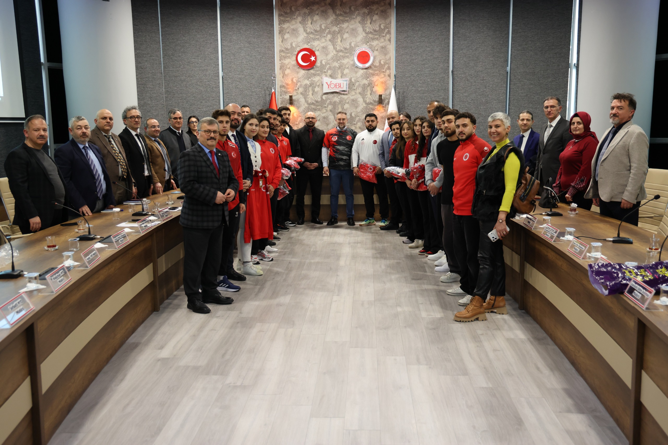 Millî sporcularımız ise kendilerine sağlanan imkân ve desteklerden dolayı teşekkür ederek, katılacakları yeni şampiyonalarda da üniversitemizi ve ülkemizi en iyi şekilde temsil etmeyi hedeflediklerini dile getirdi.