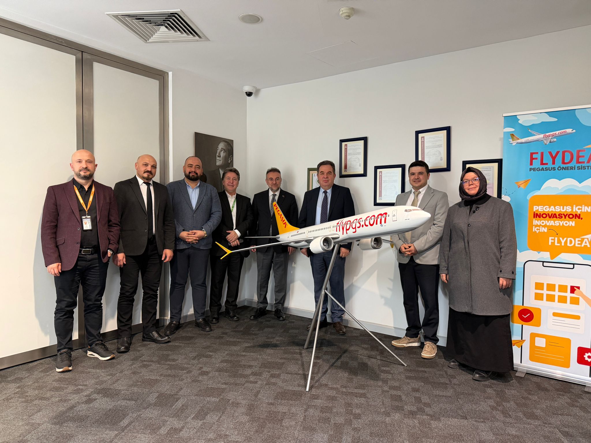 Rektörümüz Prof. Dr. Evren Yaşar, Rektör Yardımcımız Prof. Dr. Fuat Köksal, Genel Sekreterimiz Doç. Dr. Mustafa Kocakaya ve üniversitemiz öğretim üyelerinden oluşan heyet, Pegasus’un İstanbul’daki Genel Müdürlük binası ve Sabiha Gökçen Havalimanı yerleşkesinde yürütülen eğitim, operasyon ve teknik süreçleri yerinde inceleme fırsatı buldu.