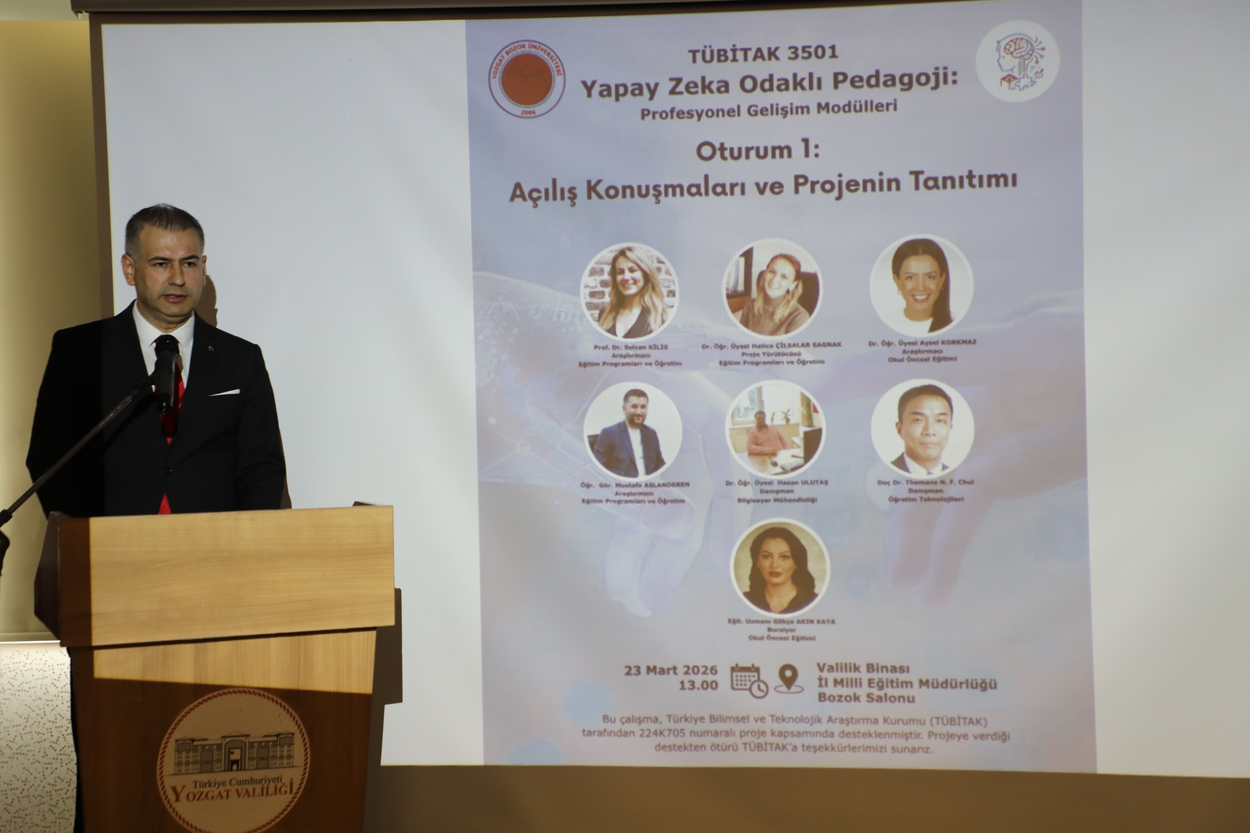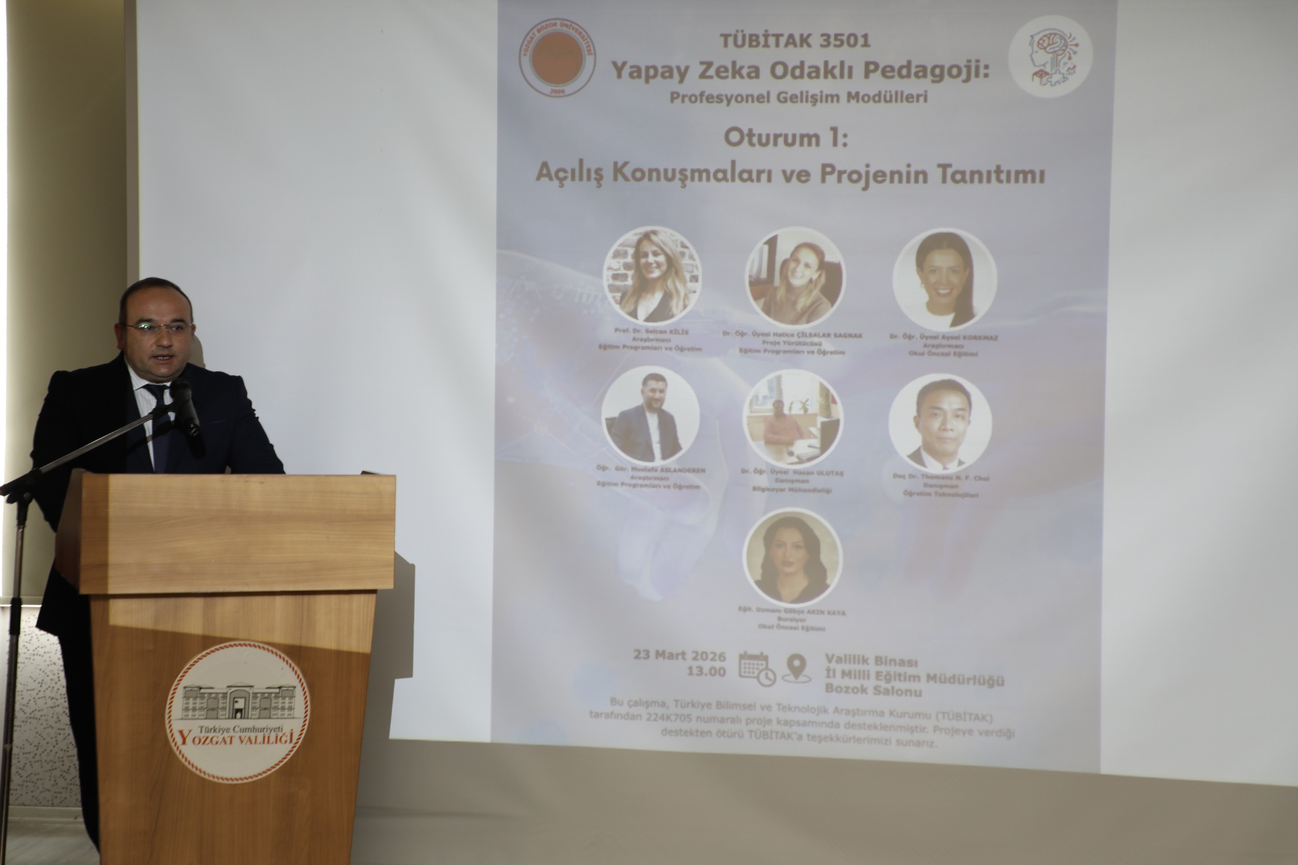 Üniversitemiz ile Yozgat İl Milli Eğitim Müdürlüğü arasında imzalanan “Eğitimde İş Birliği Protokolü” kapsamında hayata geçirilen TÜBİTAK 3501 destekli “Yapay Zekâ Odaklı Pedagoji: Profesyonel Gelişim Modülleri” projesinin ilk etkinliği gerçekleştirildi.