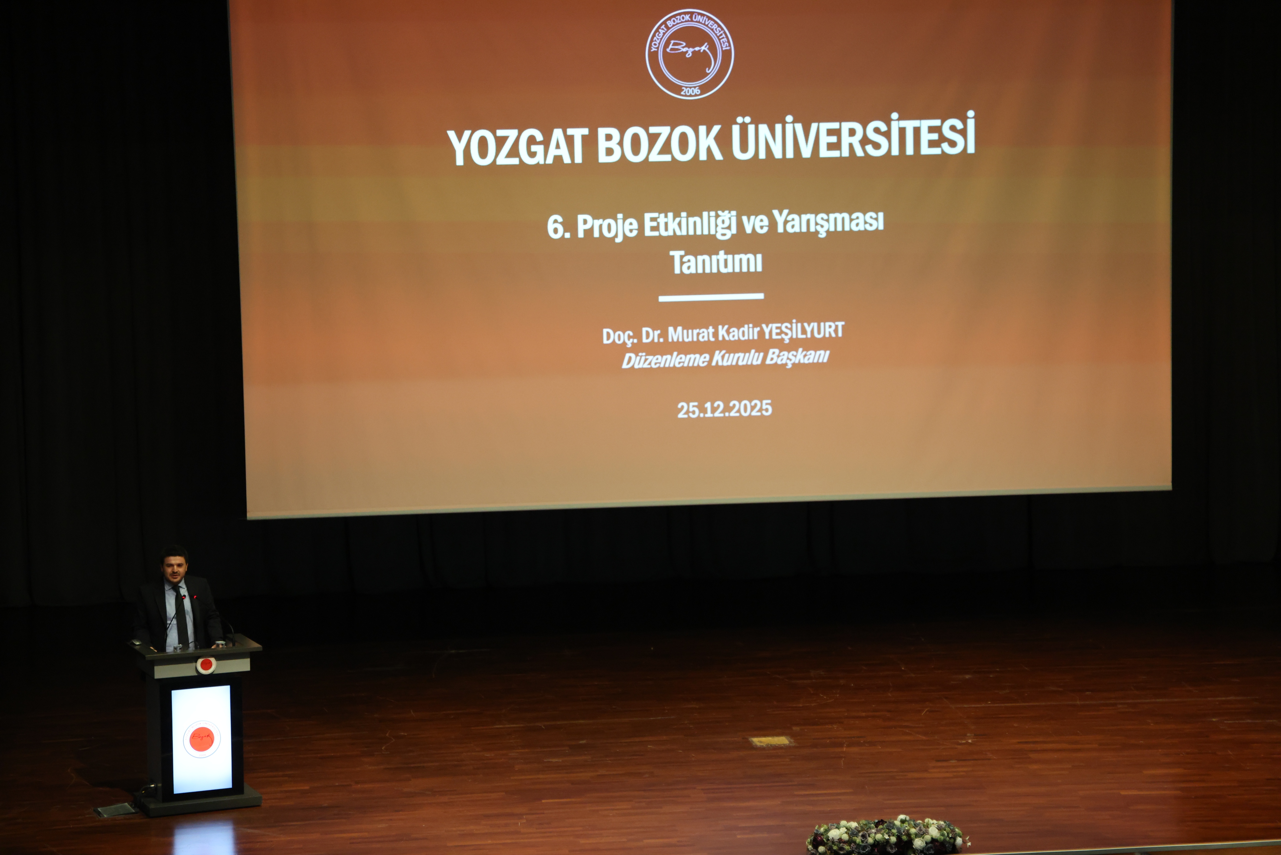 Programın açılış konuşmasını yapan Proje Etkinliği ve Yarışması Düzenleme Kurulu Başkanı Doç. Dr. Kadir Yeşilyurt, 6. Proje Etkinliği ve Yarışması’nın altı kategoride 220 öğrenci tarafından hazırlanan toplamda 151 proje ile gerçekleştirildiği bilgisini verdi. Doç. Dr. Yeşilyurt, 6. Proje Etkinliği ve Yarışması’nda öğrencilerin poster sunumu deneyimi kazanmaları, akademik çalışmalarını geniş kitlelere tanıtmaları ve projelerini Yozgat bölgesindeki dış paydaşlarla buluşturarak olası iş birliği imkânlarının ortaya çıkarılmasını hedeflediklerini söyledi.