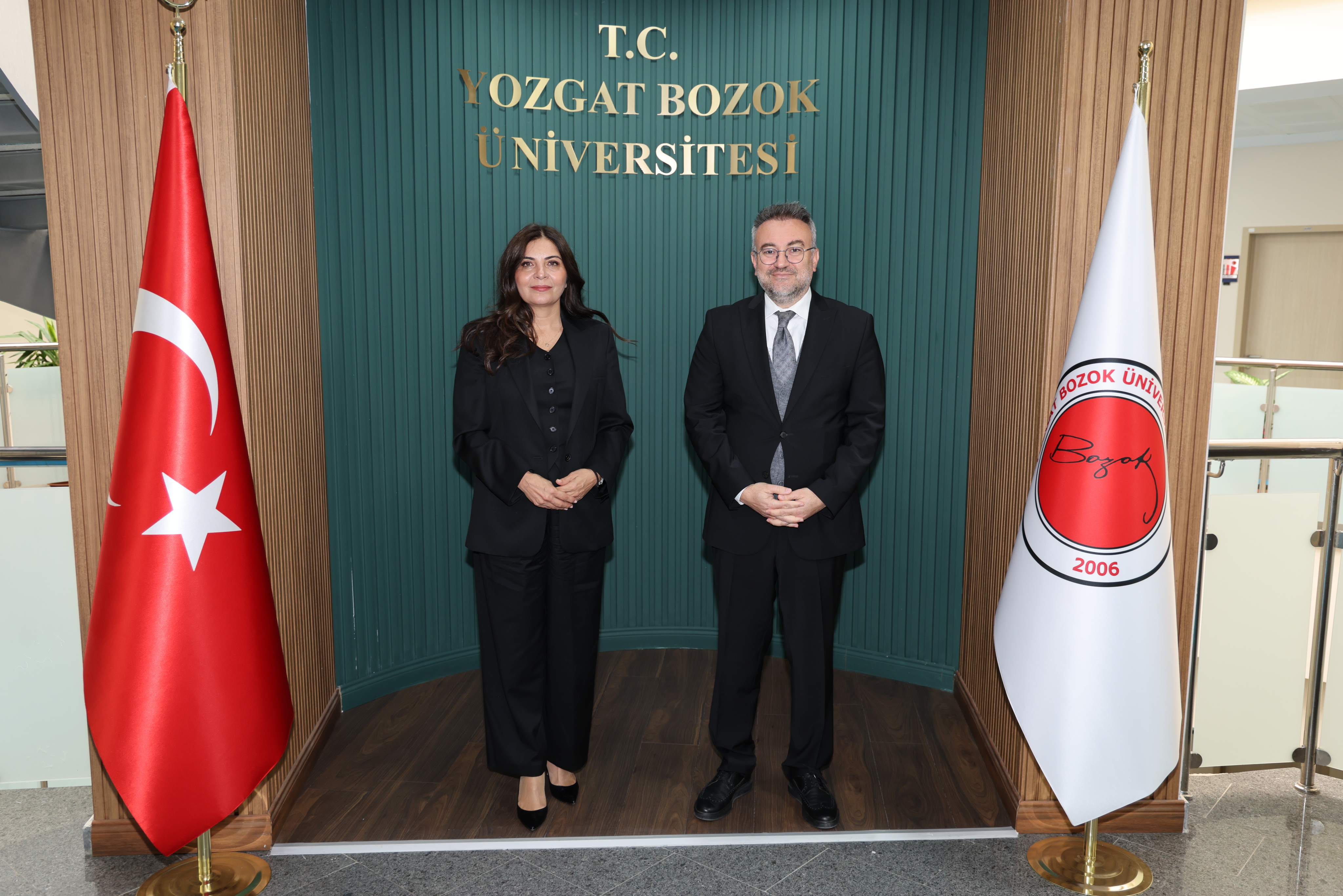 Üniversitemizde düzenlenen “Türk Toplum Yapısının Korunmasında RTÜK’ün Önemi: Doğru Bilinen Yanlışlar” konulu konferansa konuşmacı olarak katılan RTÜK Üyesi Dr. Deniz Güçer, Üniversitemiz Rektörü Prof. Dr. Evren Yaşar’ı makamında ziyaret etti.