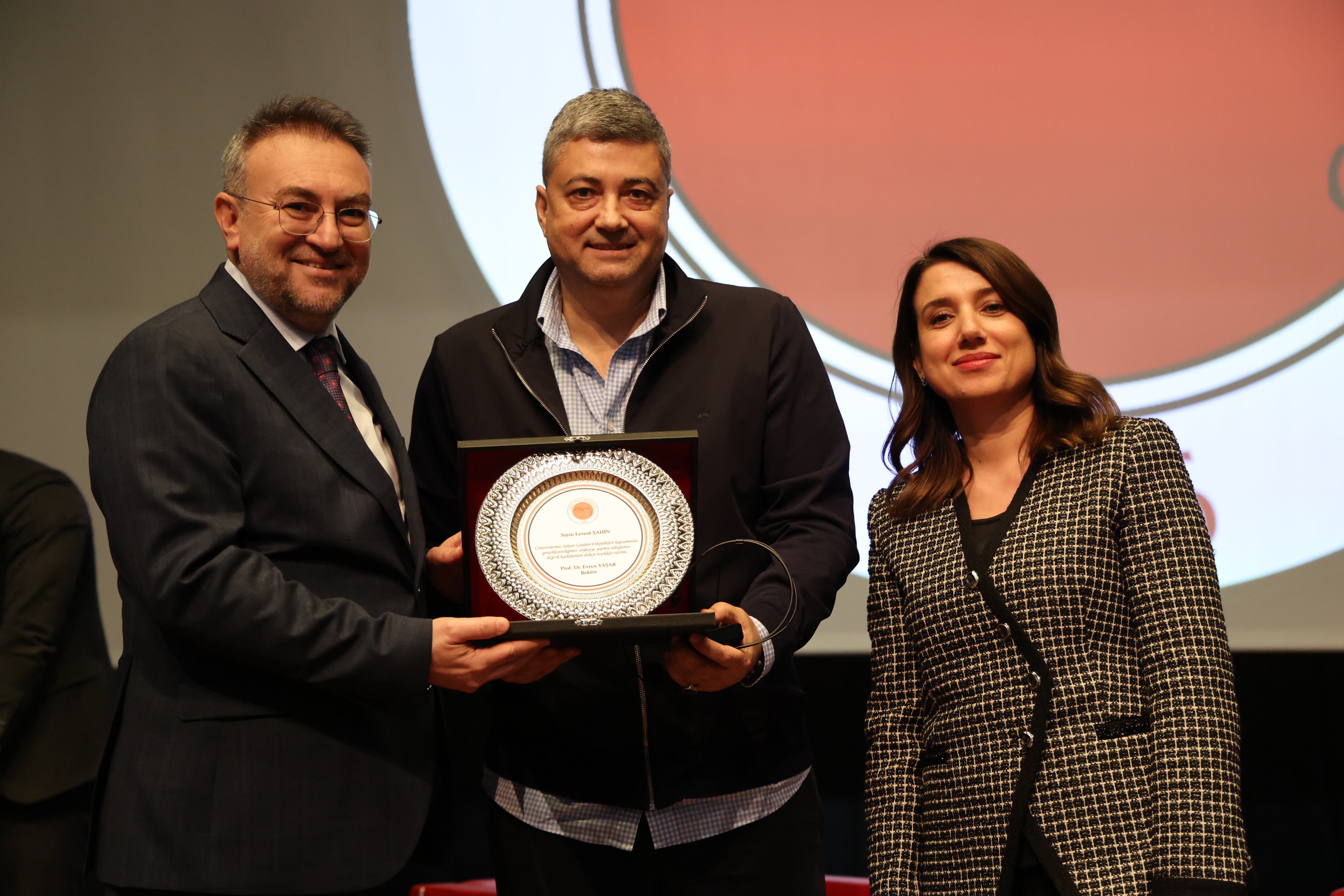 Program sonunda, Yozgat Valisi Mehmet Ali Özkan ile Üniversitemiz Rektörü Prof. Dr. Evren Yaşar tarafından Şahin’e hediye takdim edildi.