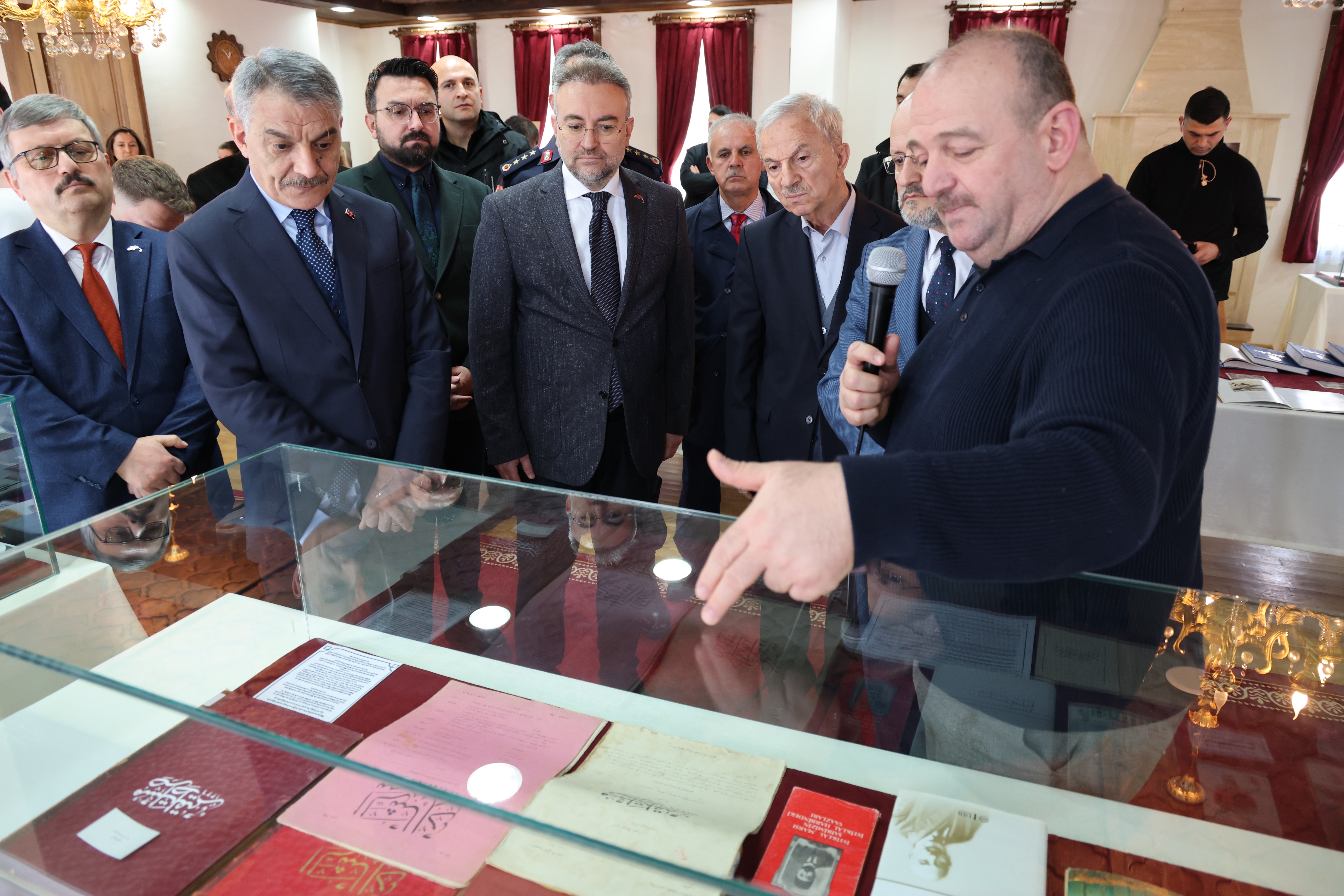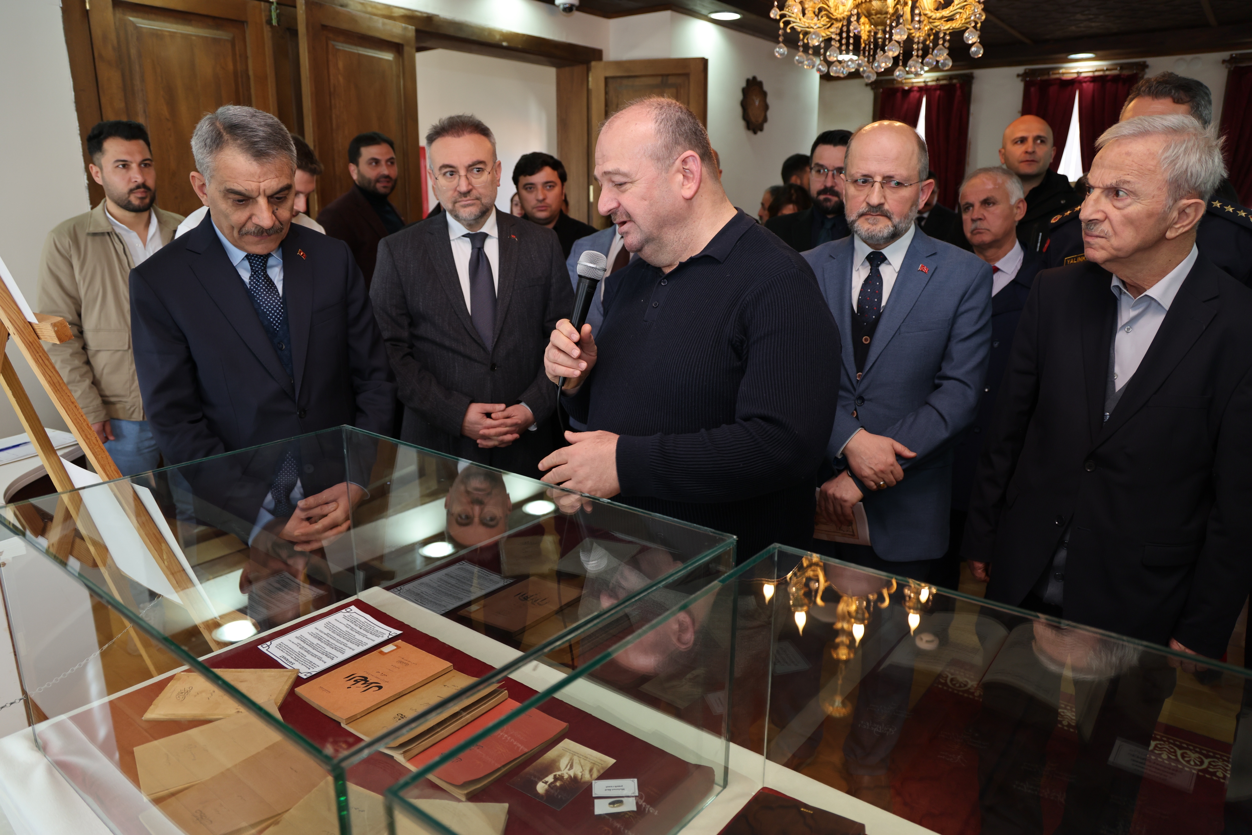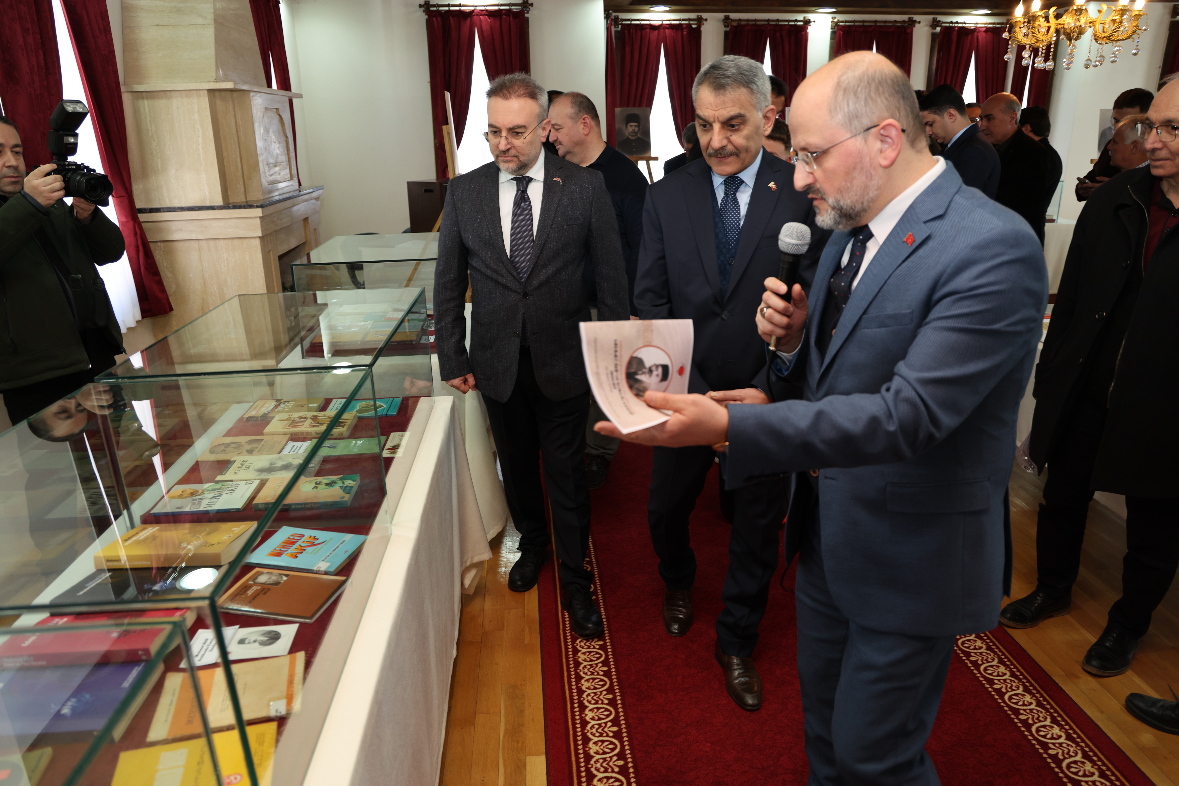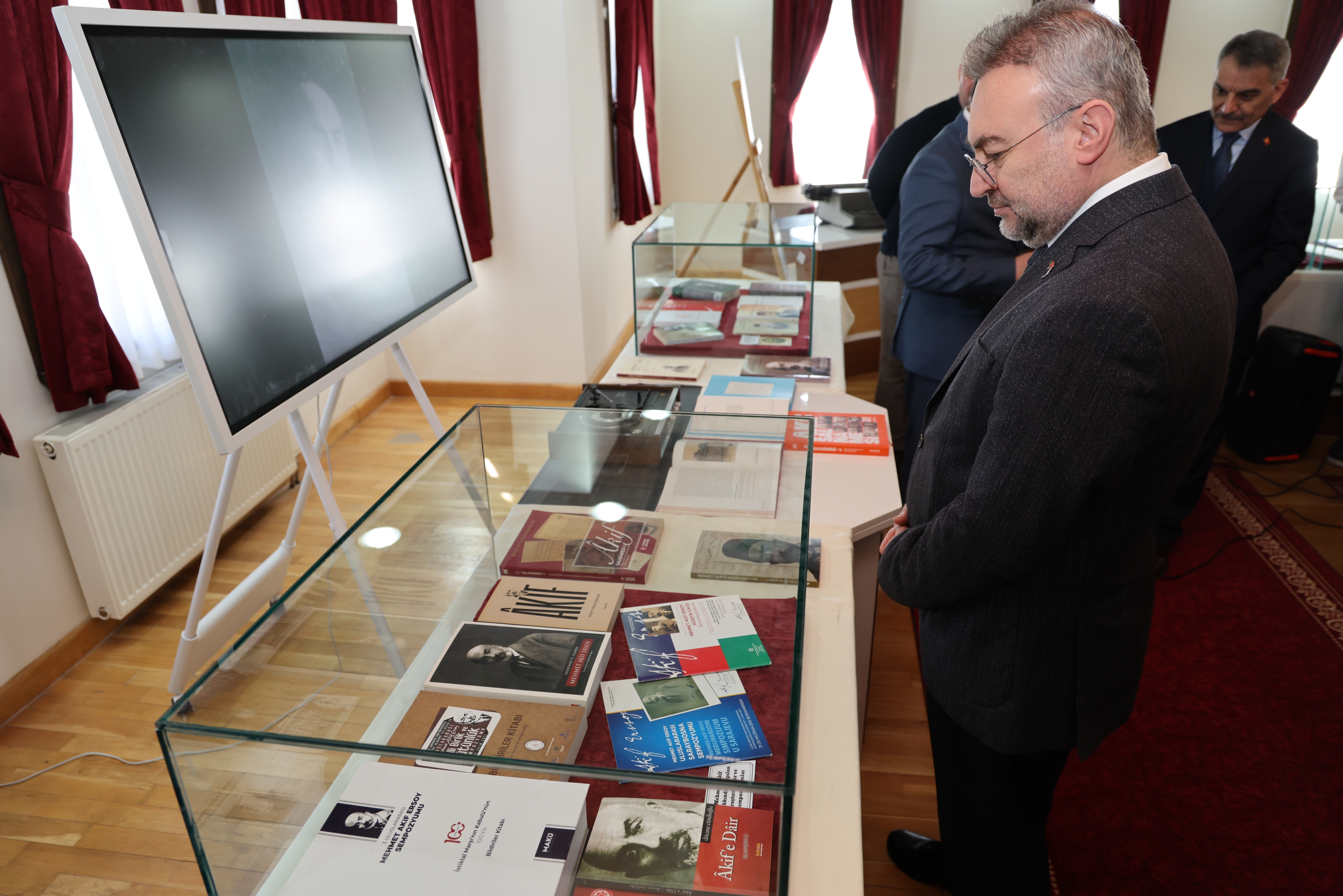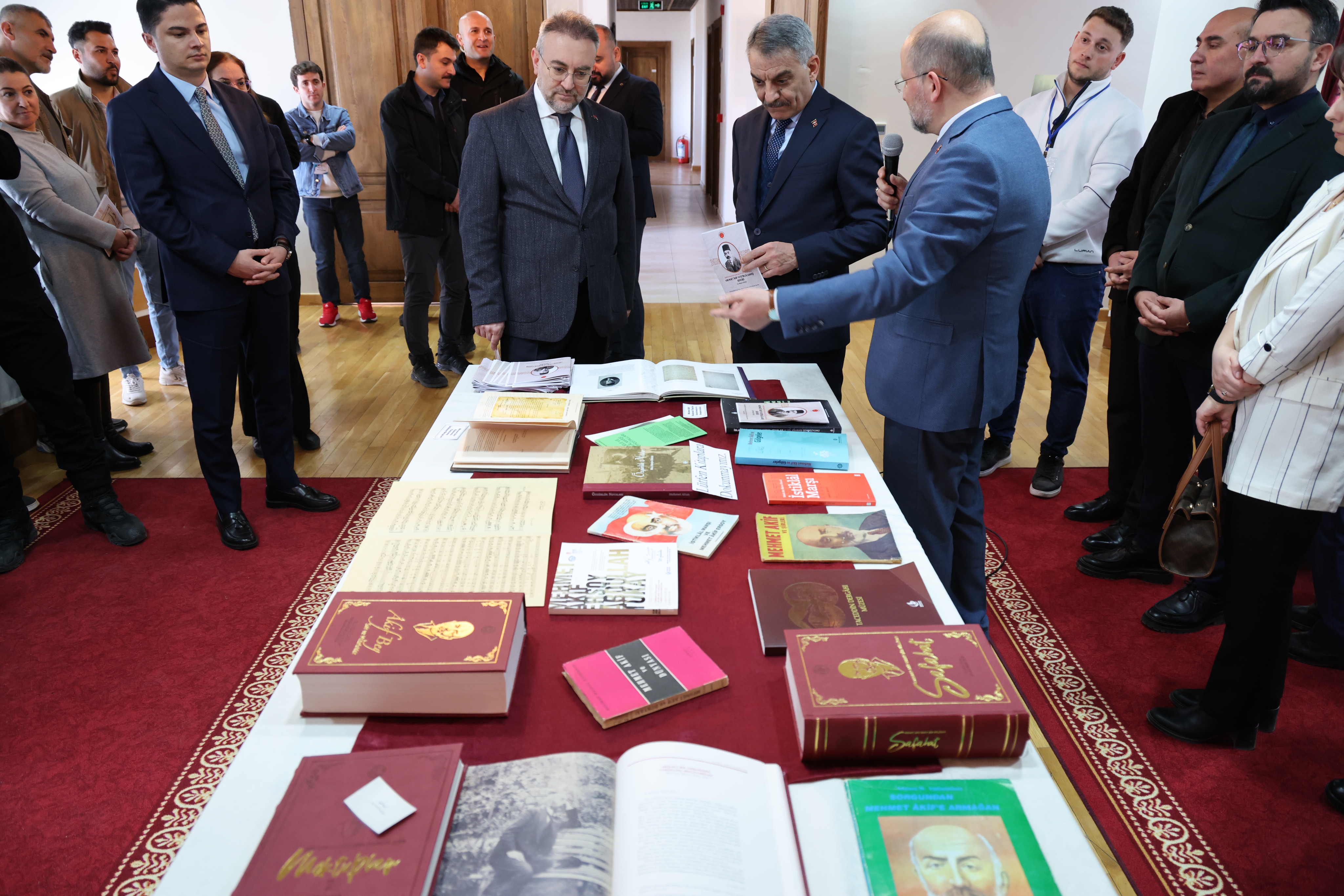 Mehmet Akif Ersoy’un sağlığında yayınladığı “Safahat”’ın yedi kitabının orijinal Osmanlıca baskısı, Mısır’da yayınlanan “Gölgeler” kitabının ilk baskısı ve Yozgatlı İhsan Efendi’ye hediye ettiği Sırat-ı Müstakim ve Sebilürreşad dergisinin sayılarının da yer aldığı sergide davetliler, eserler hakkında bilgi aldı. Ziyaretçiler, sergide yer alan tarihi belgeler ve görseller aracılığıyla İstiklâl Marşı’nın yazılış süreci ile Mehmet Akif Ersoy’un milli mücadele dönemindeki rolüne dair önemli bilgiler edinme fırsatı buldu.