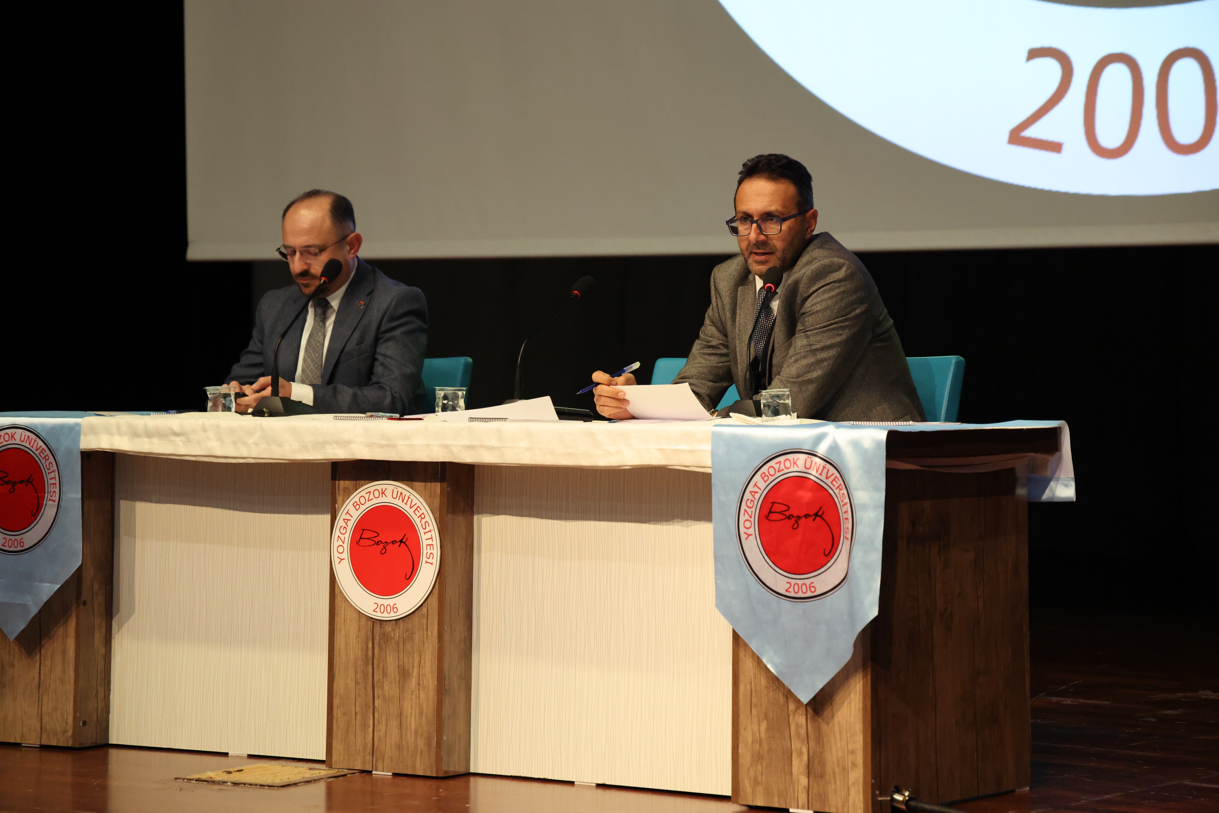 Üniversitemiz Erdoğan Akdağ Kongre ve Kültür Merkezi’nde düzenlenen toplantıya; Rektör Yardımcılarımız Prof. Dr. Güngör Yılmaz, Prof. Dr. Fuat Köksal, Prof. Dr. Tansel Hacıhasanoğlu, Genel Sekreterimiz Doç. Dr. Mustafa Kocakaya, dekanlar, dekan yardımcıları, müdürler ve müdür yardımcıları ile bölüm ve program başkanları katıldı.