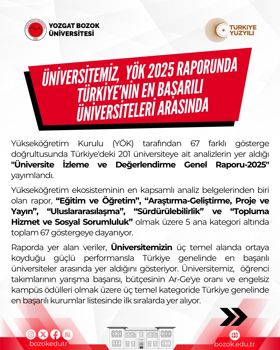Yükseköğretim Kurulu (YÖK) tarafından 67 farklı gösterge doğrultusunda Türkiye'deki 201 üniversiteye ait analizlerin yer aldığı "Üniversite İzleme ve Değerlendirme Genel Raporu-2025" yayımlandı.