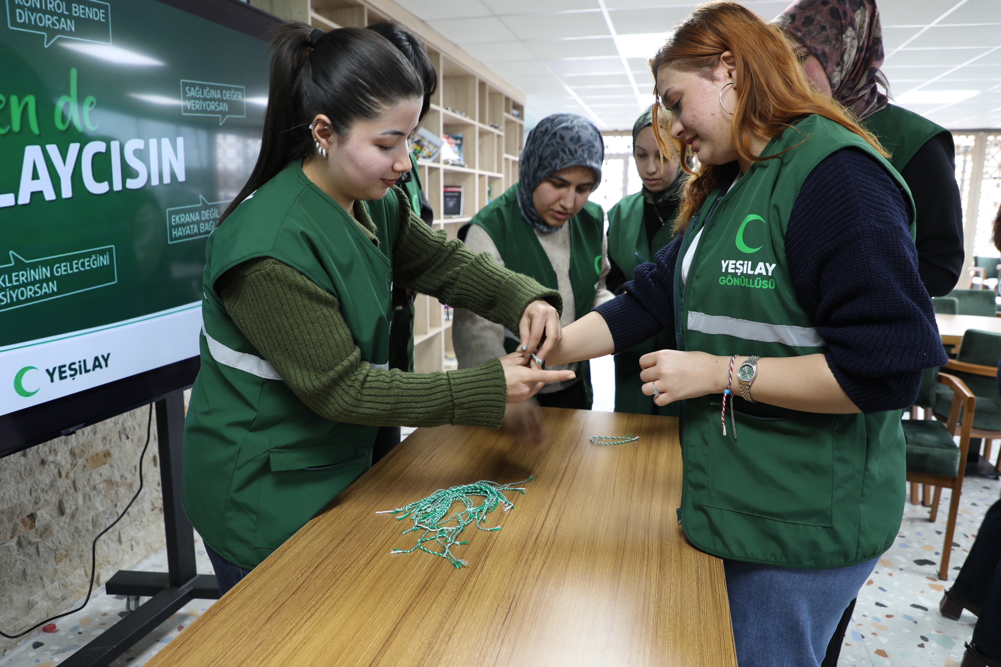 Etkinlik sonunda öğrenciler, bağımlılıkla mücadeleye dikkat çekmek amacıyla Yeşilay bilekliği takarak farkındalık çalışmasına destek verdi.