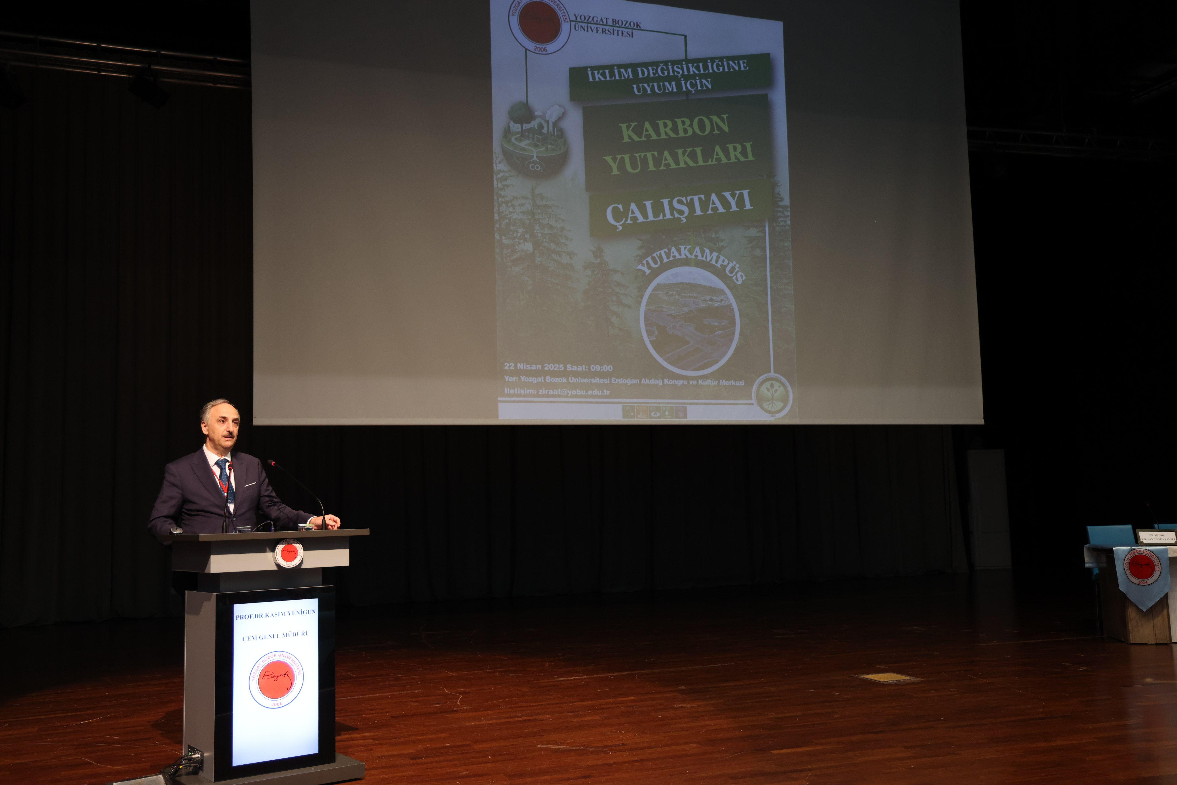 Çalıştayda konuşan Çölleşme ve Erozyonla Mücadele Genel Müdürü Prof. Dr. Kasım Yenigün, karbon yutak alanlarının korunması ve artırılmasının, iklim değişikliğiyle mücadelede en etkili doğa temelli çözümlerden biri olduğunu söyledi. Prof. Dr. Yenigün konuşmasının devamında: “Küresel ölçekte yaşadığımız iklim değişikliği; sadece çevresel değil, aynı zamanda sosyal, ekonomik ve politik yönleriyle de insanlığın karşı karşıya kaldığı en büyük tehditlerden biri haline geldi. Bu bağlamda; ormanlar, sulak alanlar, çayırlar, tarım arazileri ve sürdürülebilir peyzaj alanları gibi doğal sistemler, atmosferdeki karbon döngüsünün dengelenmesinde yaşamsal rol oynuyor. Yozgat Bozok Üniversitesi'nin bu çalıştay aracılığıyla ortaya koyduğu vizyon, bu anlamda son derece önem taşıyor. Kampüs ölçeğinde karbon yutak alanlarının planlanmasına yönelik önerilerin, üniversitenin sürdürülebilirlik politikalarına katkı sağlayarak diğer üniversitelerimize de örnek teşkil edeceğine inanıyorum. Bu tür çok paydaşlı ve disiplinler arası etkinlikler, iklim değişikliği ile mücadelenin yerelden başlayarak ulusal politikalara entegre edilmesinde önemli rol oynuyor” ifadelerini kullandı.