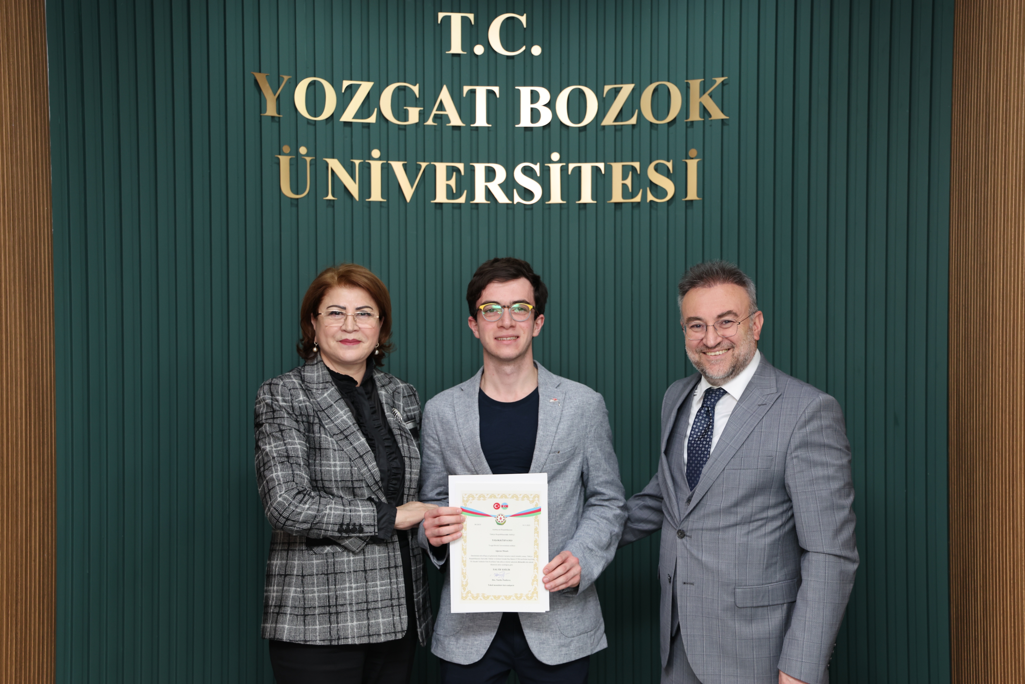 Ayrıca ziyaret kapsamında T.C. Kültür ve Turizm Bakanlığı Yurtdışı Türkler ve Akraba Topluluklar Başkanlığı (YTB) tarafından düzenlenen 9. Uluslararası Öğrenci Bilimler Kongresinde Sağlık Bilimleri alanında birinci olan Üniversitemiz Tıp Fakültesi 2. sınıf öğrencisi Aghajan Musalı’ya teşekkür belgesi takdim edildi.
